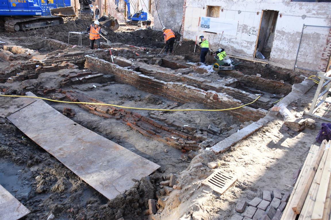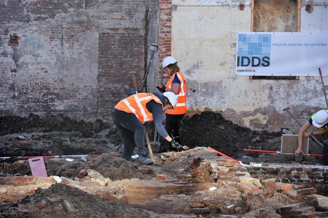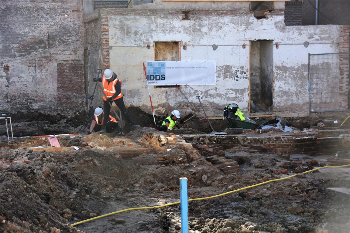 In deze eerste fase wordt het muurwerk tot op ongeveer één meter onder het maaiveld onderzocht. Hierna maken de archeologen tijdelijk plaats voor de aannemer. Deze zal damwanden plaatsen voor de diepe bouwkuip die hier zal komen. In fase twee vindt de opgraving plaats tussen deze damwanden. Dit onderzoek vindt plaats tot op vier meter onder het maaiveld. Dat is dieper dan gebruikelijk, maar de Zara vestiging die op de locatie komt, krijgt een kelderverdieping, waardoor alle resten ook echt verwijderd moeten worden.