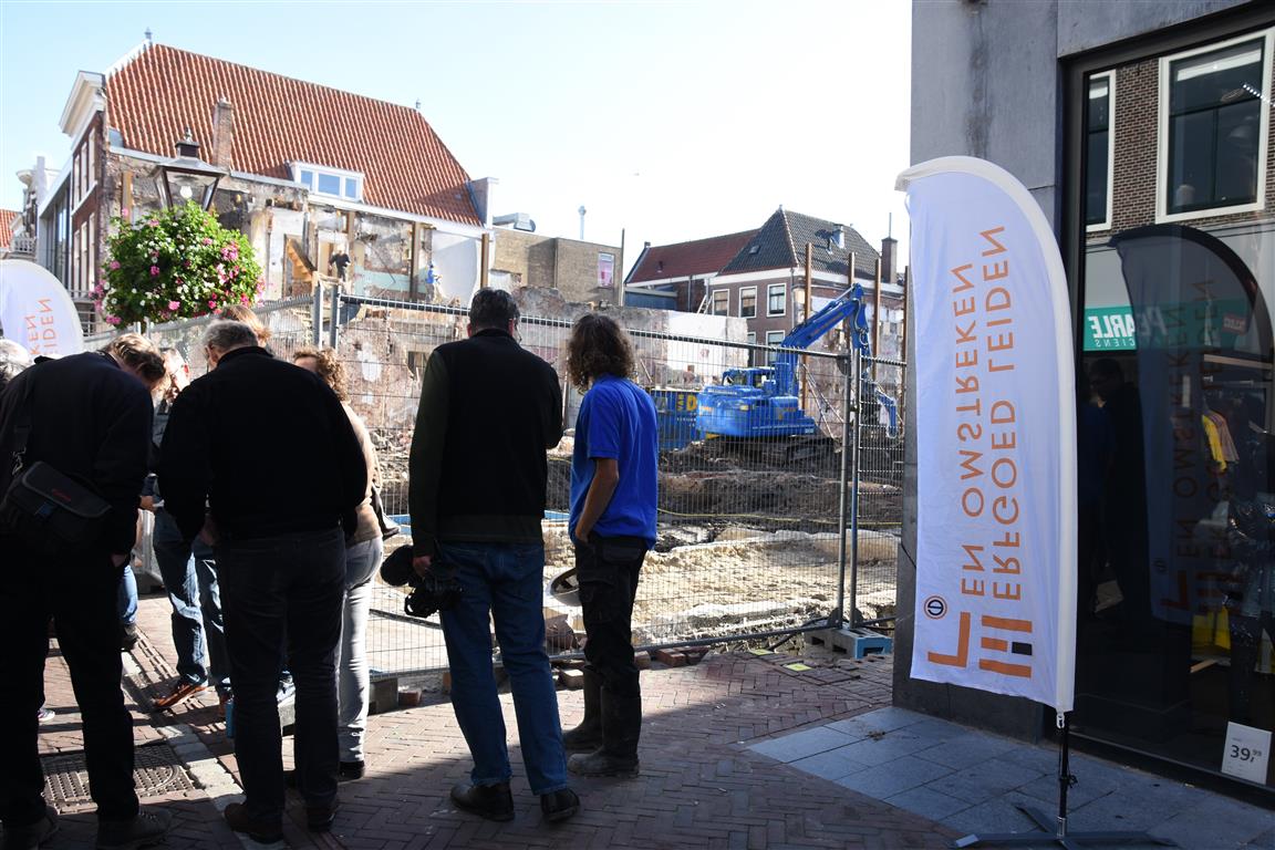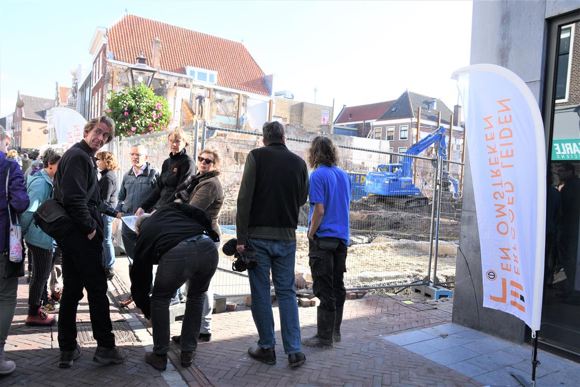 Vanmiddag gaven medewerkers van Erfgoed Leiden e.o. een toelichting op de opgravingen die ook de komende tijd nog doorgaan. Chris de Waard sprak met bouwhistoricus Michel van Dam en met archeoloog Marianne Rietkerk van ELO.