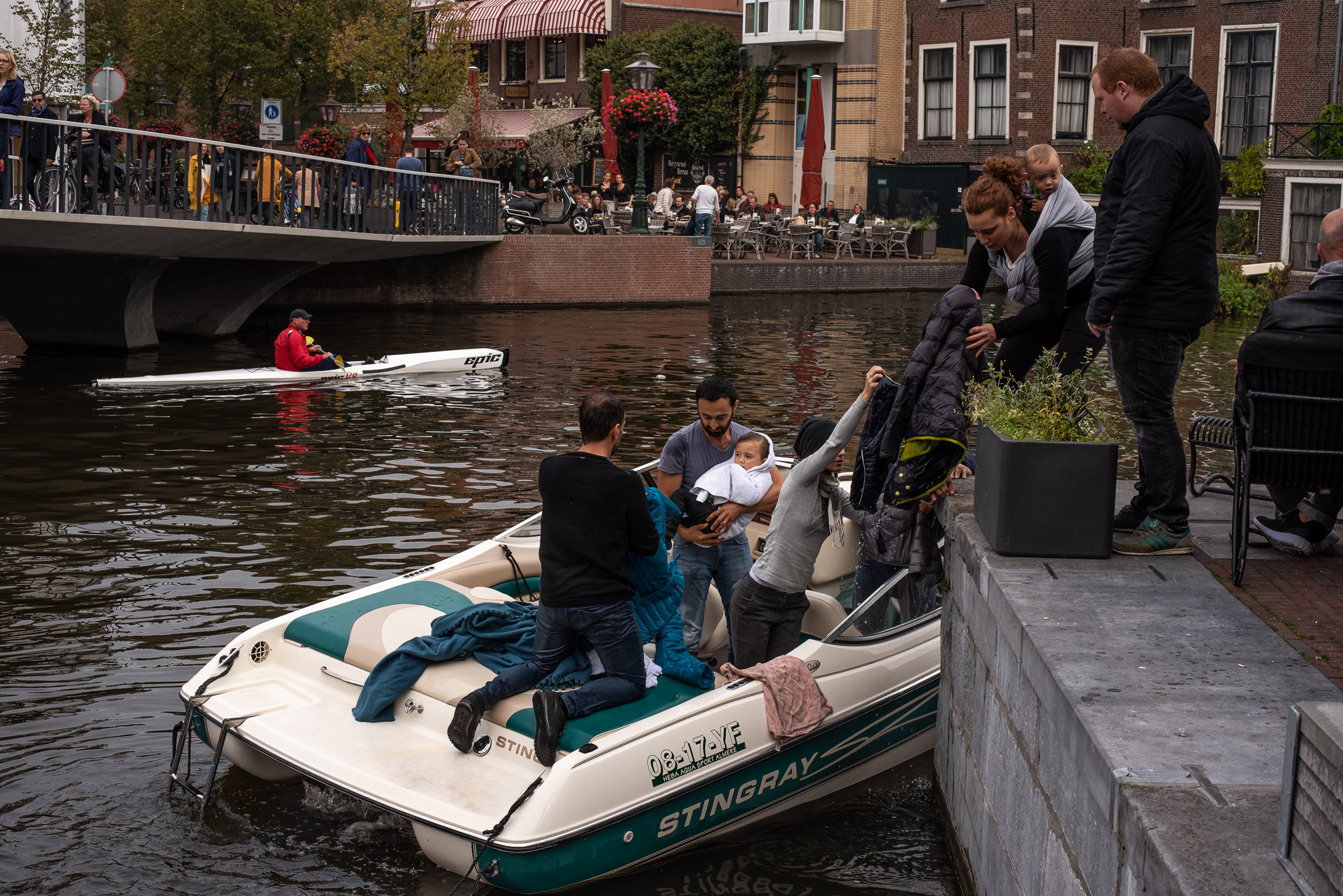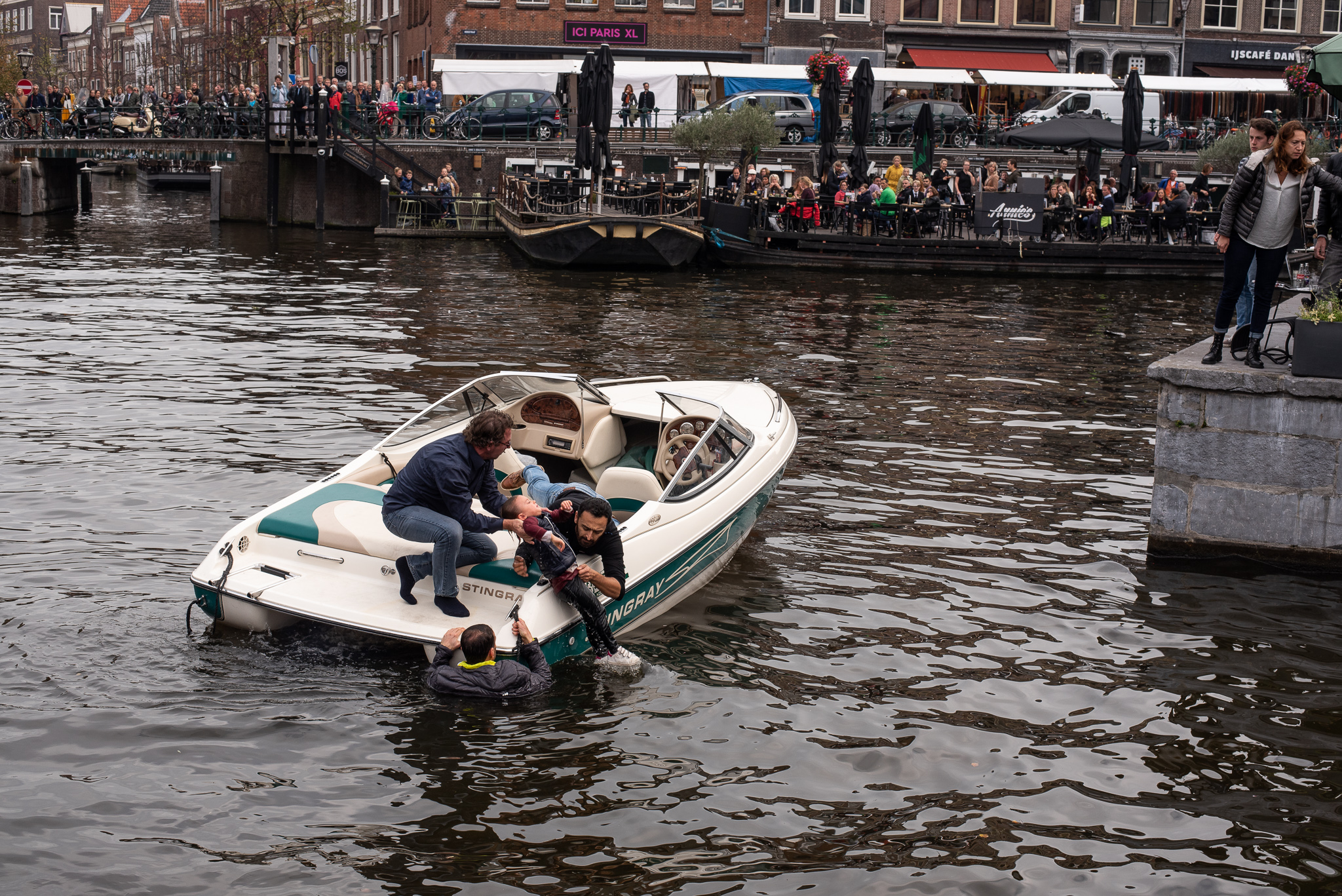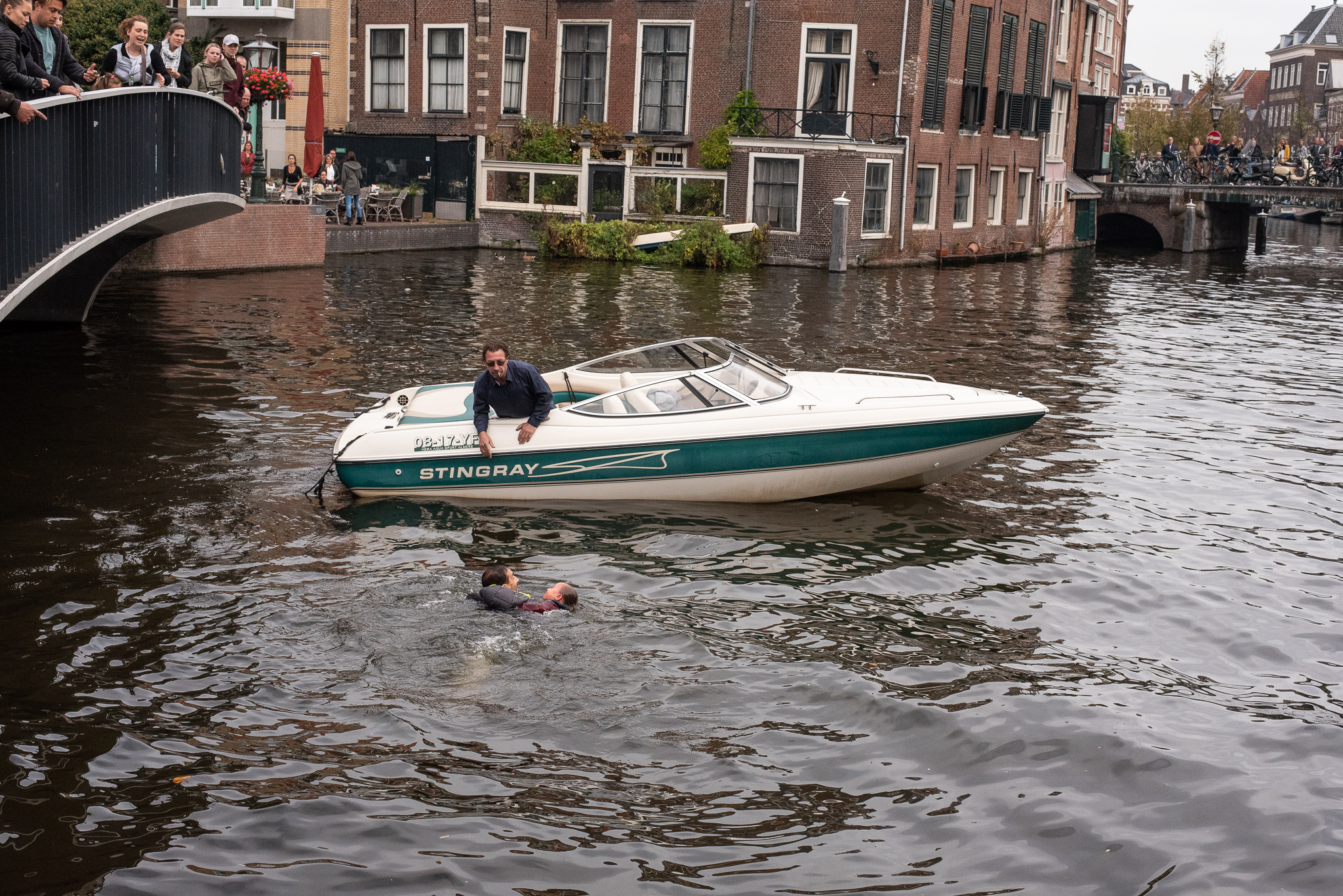 Een meisje is zondagmiddag tussen de spijlen van de nieuwe Catharinabrug gekropen en in het water gevallen. Het kind is gered door een vriend van de ouders, een Italiaans stel, sprong meteen in het water en zwom met het meisje naar een passerende motorboot. Een tweede man sprong van de brug op de boot om de drenkelingen uit het water te helpen.