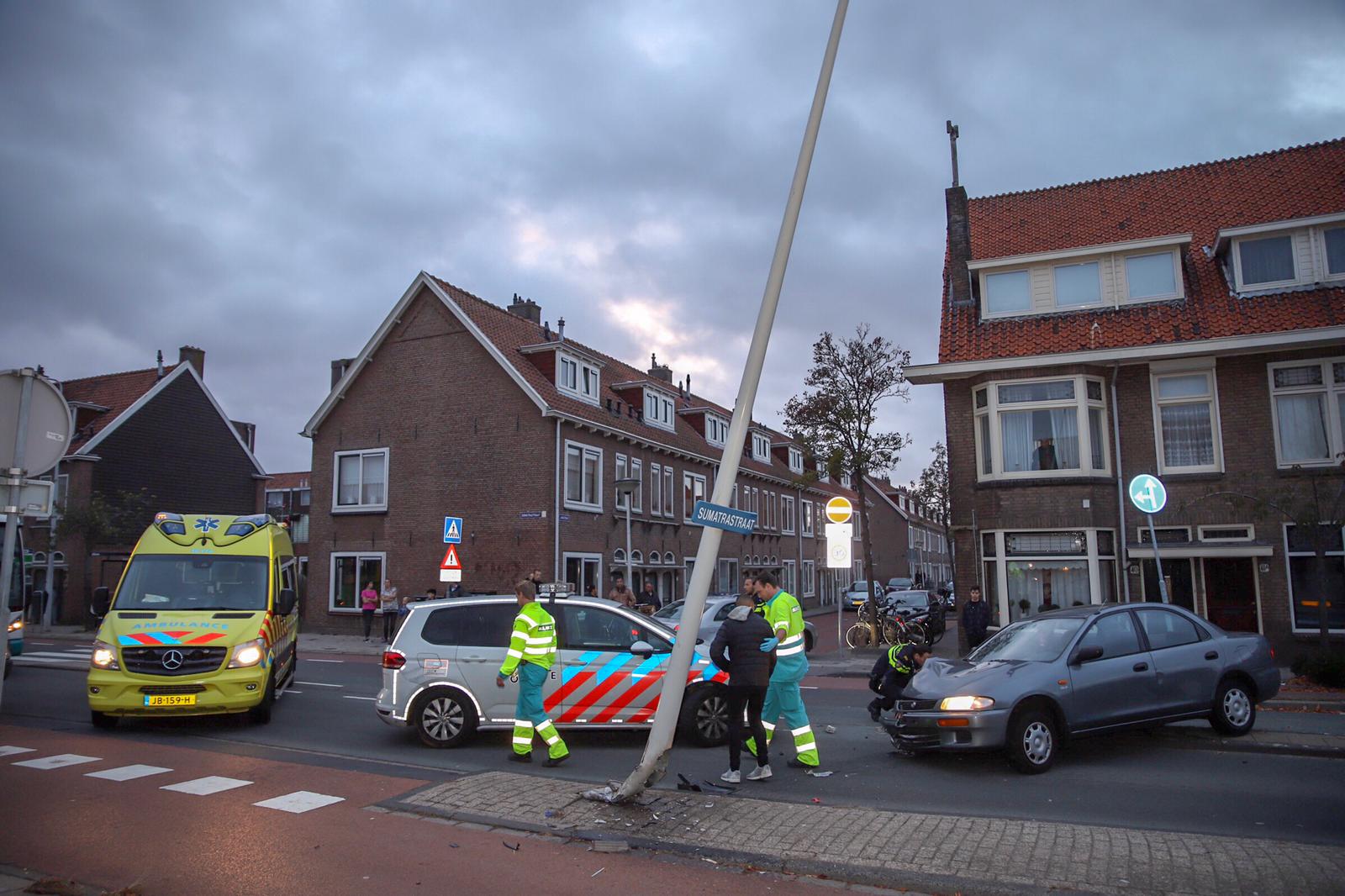 Een automobilist is gisteren op de Sumatrastraat tegen een lichtmast gebotst. Daarop schoot de auto door en ramde ook nog een paal op de middenberm. De bestuurder is ter plekke nagekeken, maar bleek ongedeerd te zijn gebleven. Het voortuig en de geraakte palen zijn zwaar beschadigd.