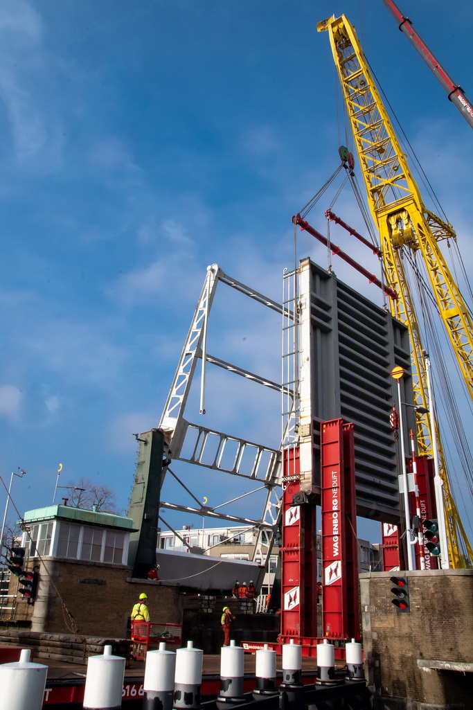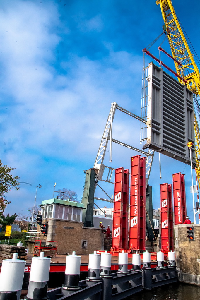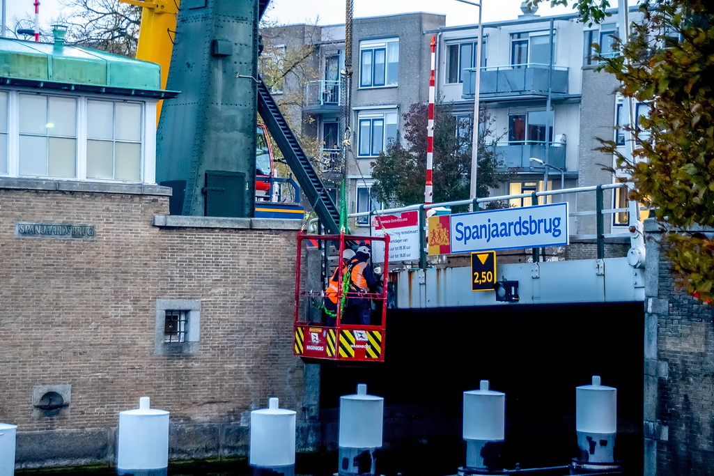 De provincie Zuid-Holland is begonnen met de werkzaamheden aan de Spanjaardsbrug. Tot en met 16 december 2018 vindt groot onderhoud en renovatie van de brug plaats. In deze periode is geen verkeer over de brug mogelijk. Voor fietsers en voetgangers is een tijdelijke pontonbrug geplaatst. Vandaag is het beweegbare deel van de brug uit gehesen om op een externe locatie gerenoveerd tw roden. Volgend jaar wordt een nieuwe technische ruimte naast het brugwachtershuisje gebouwd.