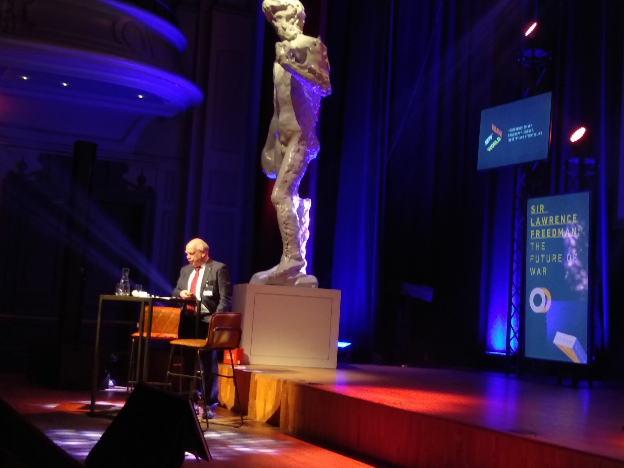 Meteen de eerste spreker zette de toon. Sir Lawrence Freedman bracht direct de vraag naar voren waarom oorlogen en conflicten worden uitgevochten. Hij verwacht geen ‘Terminator-scenario‘ waarin kunstmatige intelligentie (AI) bepalend is. Niet eens zozeer vanwege de techniek als wel vanwege heel andere overwegingen. Zo, beschreef hij, is het meeste geweld tegenwoordig niet eens staat tegen staat geweld (oorlog), maar veel vaker intern politiek geweld (rebellie, terrorisme). En die conflicten worden uitgevochten in steeds langduriger twisten, waarbij de meeste (burger)slachtoffers vallen door indirecte effecten, als hongersnood en armoede, van zo’n twist. Zulke twisten worden tegenwoordig vooral gevoerd met propaganda en (des)informatie. Hoe bizar ook, dat vereist begrip voor de wereld van de vijand. Alleen dan kunnen trollenlegers aanhaken bij gevoelens die al leven en die beïnvloed worden met valse informatie.