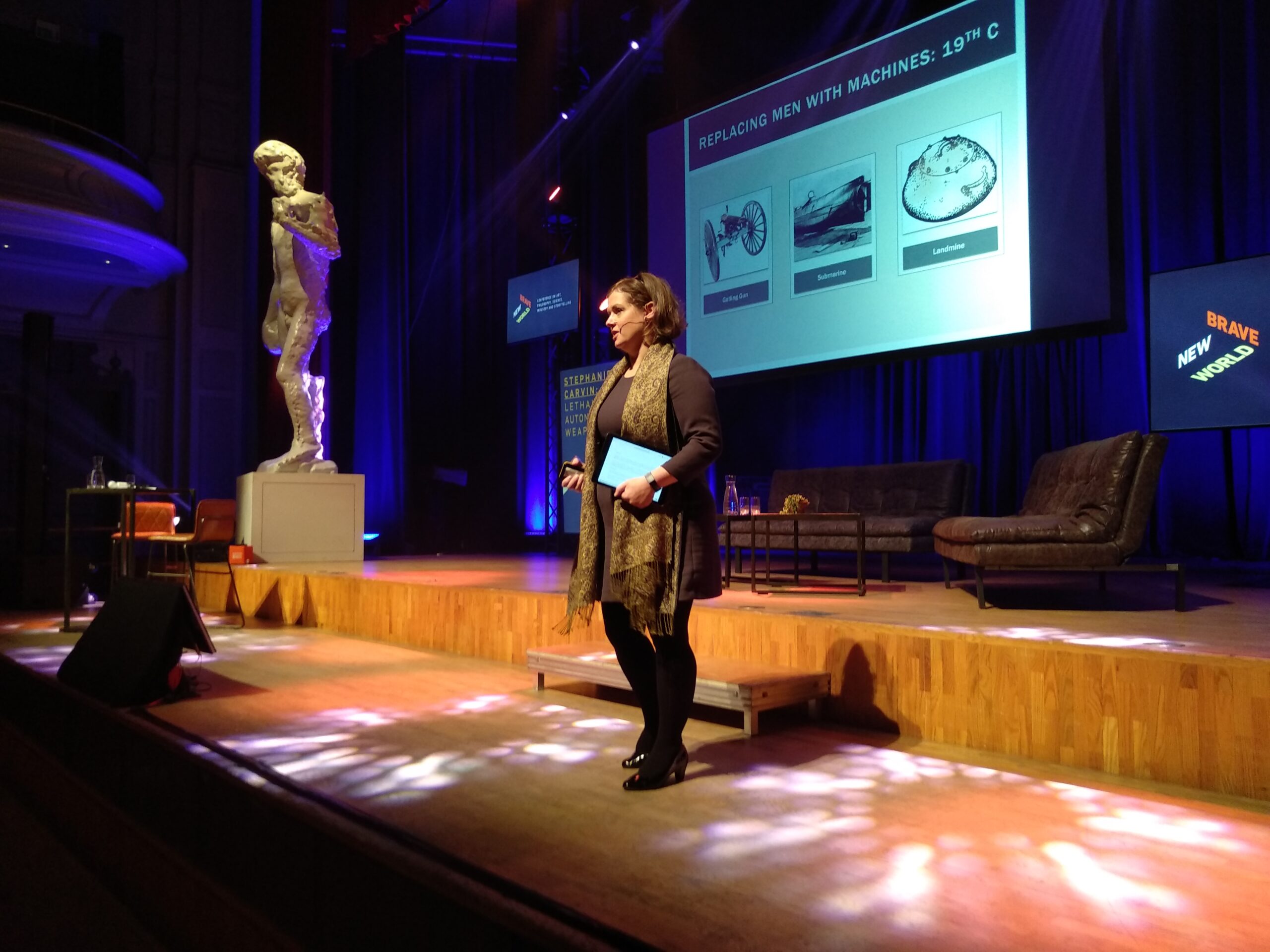 Een mooie herfstdag beginnen met een aantal presentaties over ‘de toekomst van oorlog’; de tweedaagse conferentie Brave New World trapt meteen af met serieuze zaken. In de Leidse Stadsgehoorzaal is donderdag en vrijdag een aantal (gerenommeerde internationale) sprekers te vinden over thema’s die te maken hebben met de vraag hoe technologie ons leven zal, kán beïnvloeden. Boeiende vragen. Eerlijk gezegd, is het ook wel weer een Leids licht onder de korenmaat. De Stadsgehoorzaal had stampvol moeten zitten met deze sprekerslijst. De interessante (technologie)kennis haal je echt niet alleen in Amsterdam, Eindhoven of Rotterdam op.