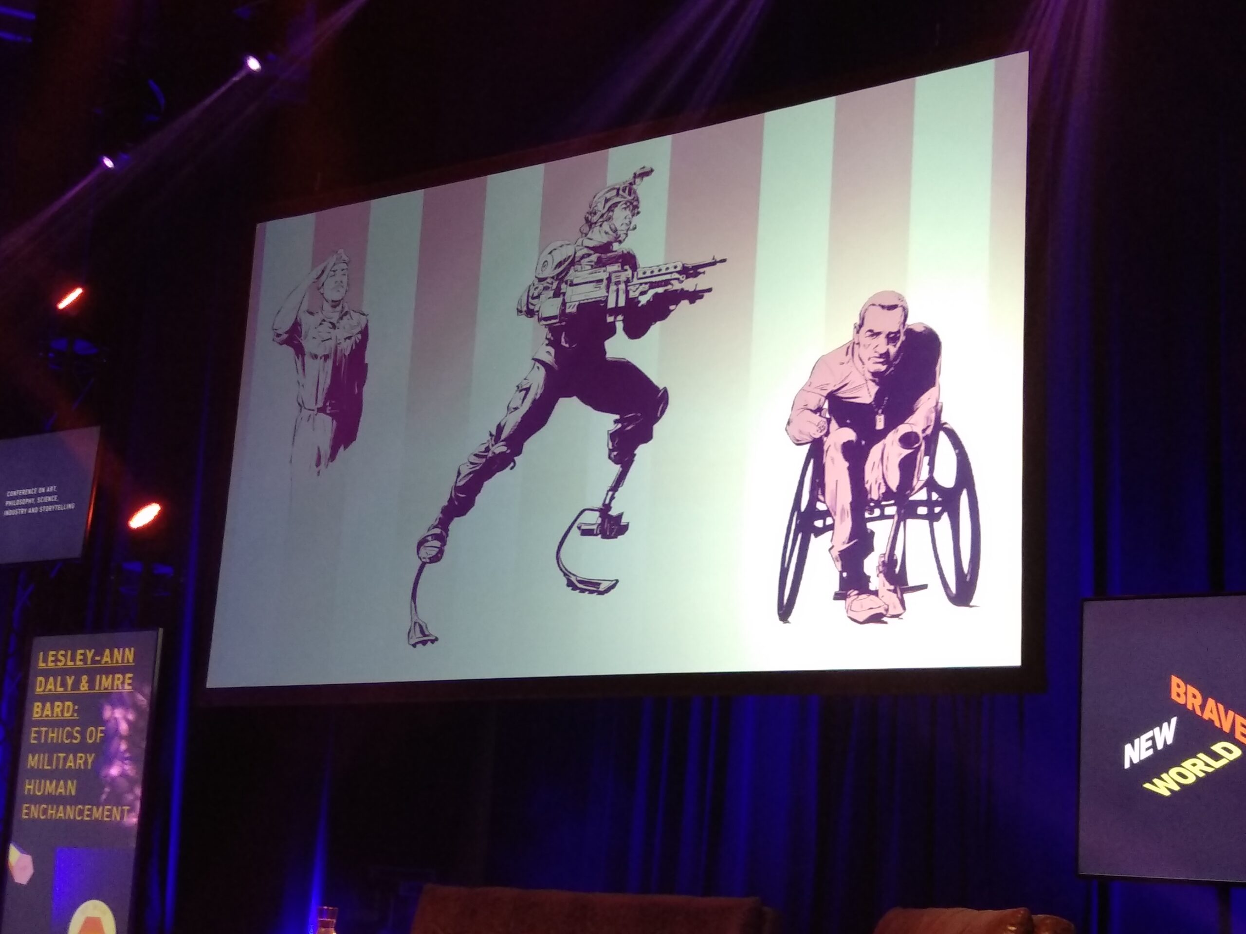 Het was goed om geregeld er op te worden gewezen dat veel van wat we nu zien gebeuren, feitelijk niet echt heel anders is. Soldaten die worden omgebouwd tot halve robots zijn een volgend stadium in een ontwikkeling die begon met peppillen voor frontsoldaten. Dat is waar Imre Bard en Lesley-Ann Daly zich mee bezig houden. Hack the Senses houdt zich bezig met de vraag hoe, en welke, aanpassingen zinvol zijn. Daartoe hanteren zij een methodiek met de naam critical design. Daarin spelen scenario’s, maar vooral het zichtbaar maken van keuzes, een belangrijke rol. En, dus, ook vragen als: hoe verstérk je de gevechtssoldaat, zonder hem te vervangen? Dat gebeurt ook in de zorg, maar daar speelt een individueel (zorg)belang terwijl in het geval van defensie een teambelang voorop staat.