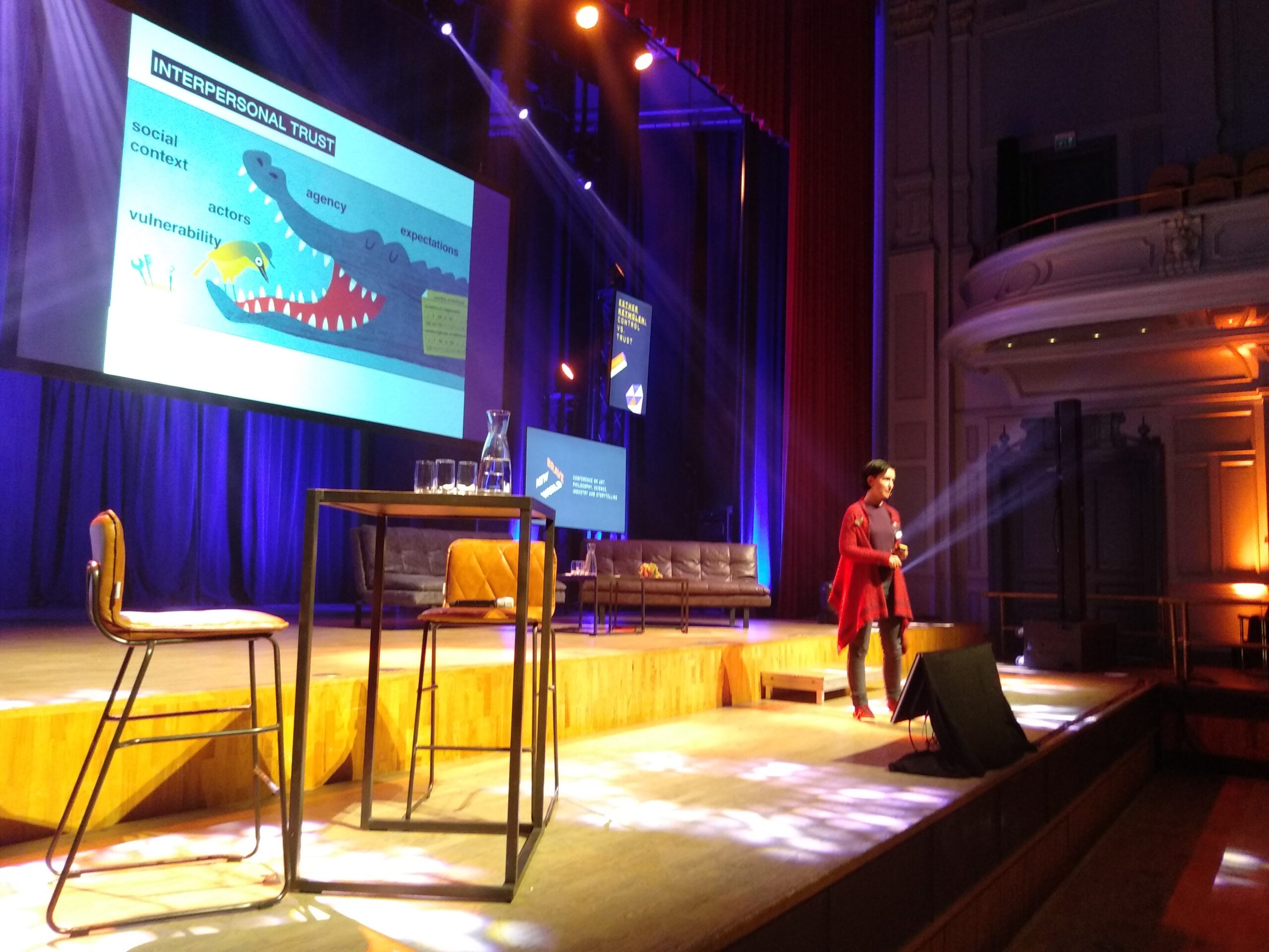 Maar wat en wie kun je dan nog vertrouwen, bleef als laatste vraag achter. Vertrouwen is immers één van de belangrijkste menselijke strategieën om om te gaan met onzekerheid en complexiteit (het dagelijks leven bij voorbeeld, maar ook vliegreizen). Esther Keymolen wees op het dilemma wat is ontstaan: we snappen niet alles en staan data af, maar diezelfde data zijn, verwerkt, ook weer risicovol. Zij noemt dat interpersoonlijk systeemvertrouwen, waarbij dat ‘systeem’ de crux vormt zonder die indruk te wekken. Mogelijk dat de Rotterdamse aanpak van Etienne Augé iets kan betekenen in deze. Zij hanteren een soort van scenariodenken science fiction prototyping, met “een refocussing on humanity/humanities” en “inventing futures is controlling our fears”.