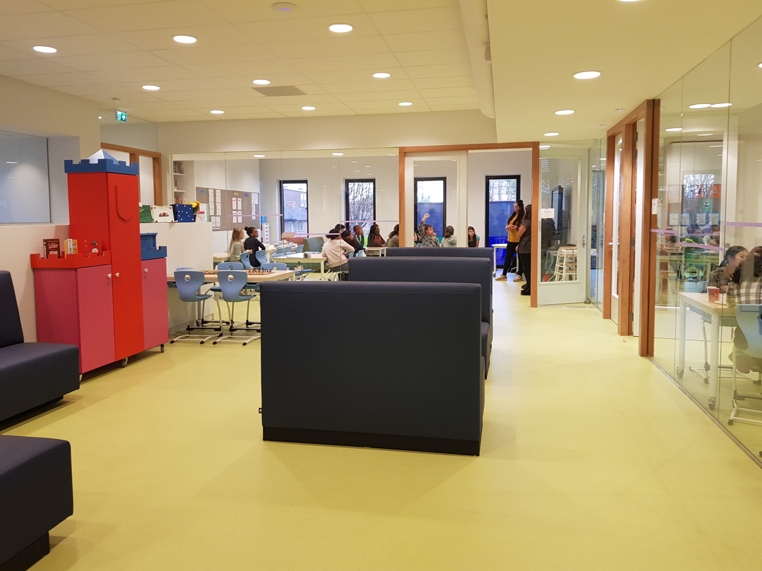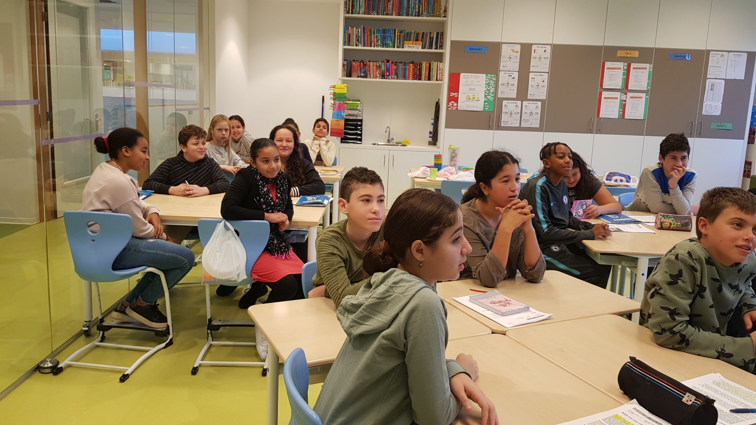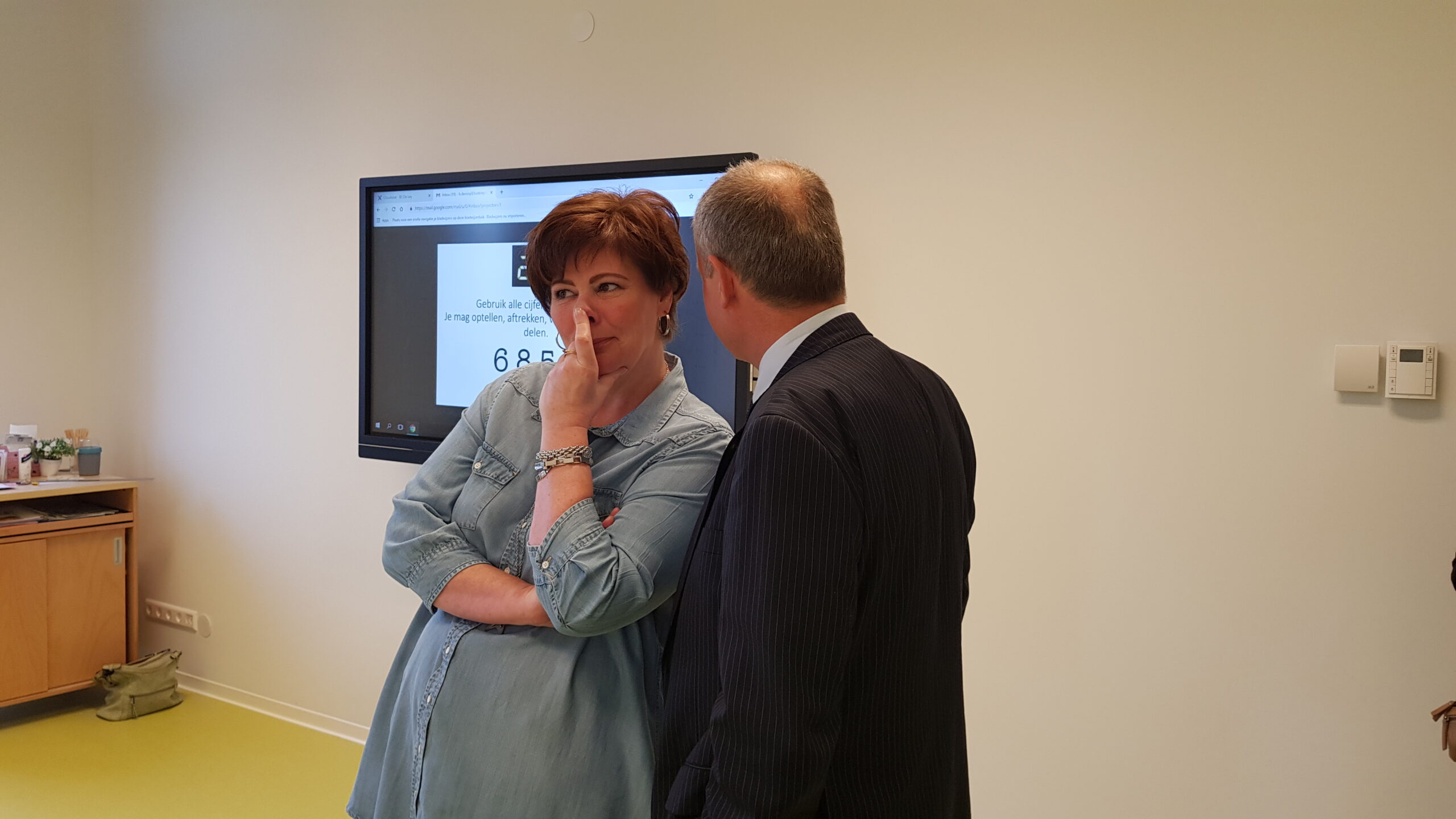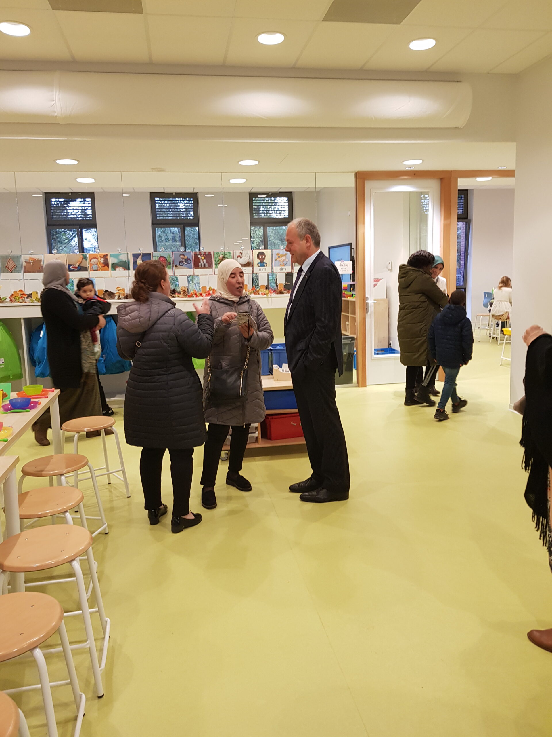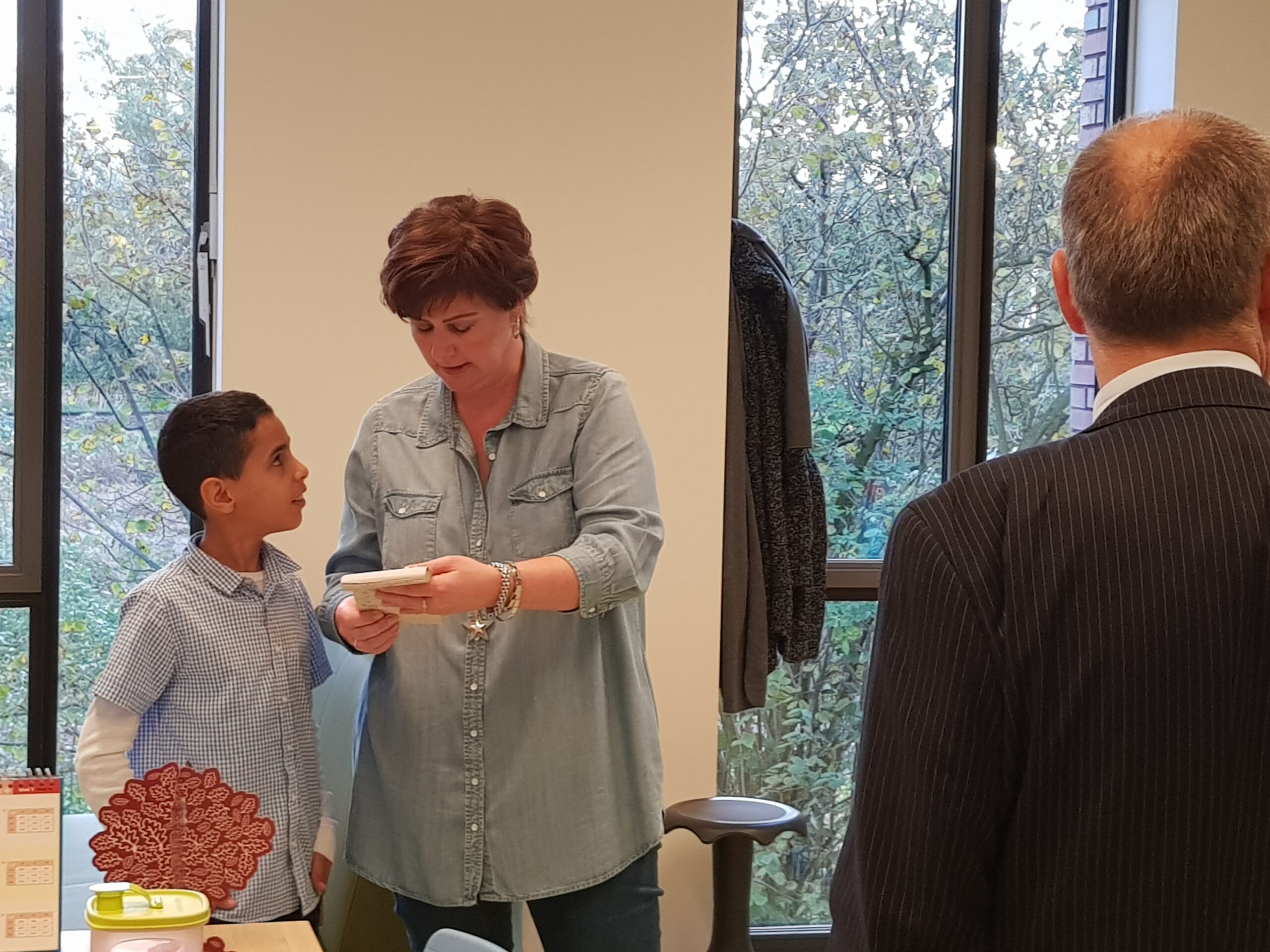 Chris de Waard ging naar het Nationaal Schoolontbijt op De Ley en sprak met directeur Anja van Schagen, met burgemeester Lenferink, met een aantal leerlingen en met directeur Babette van Leeuwen van basisschool Leimundo .