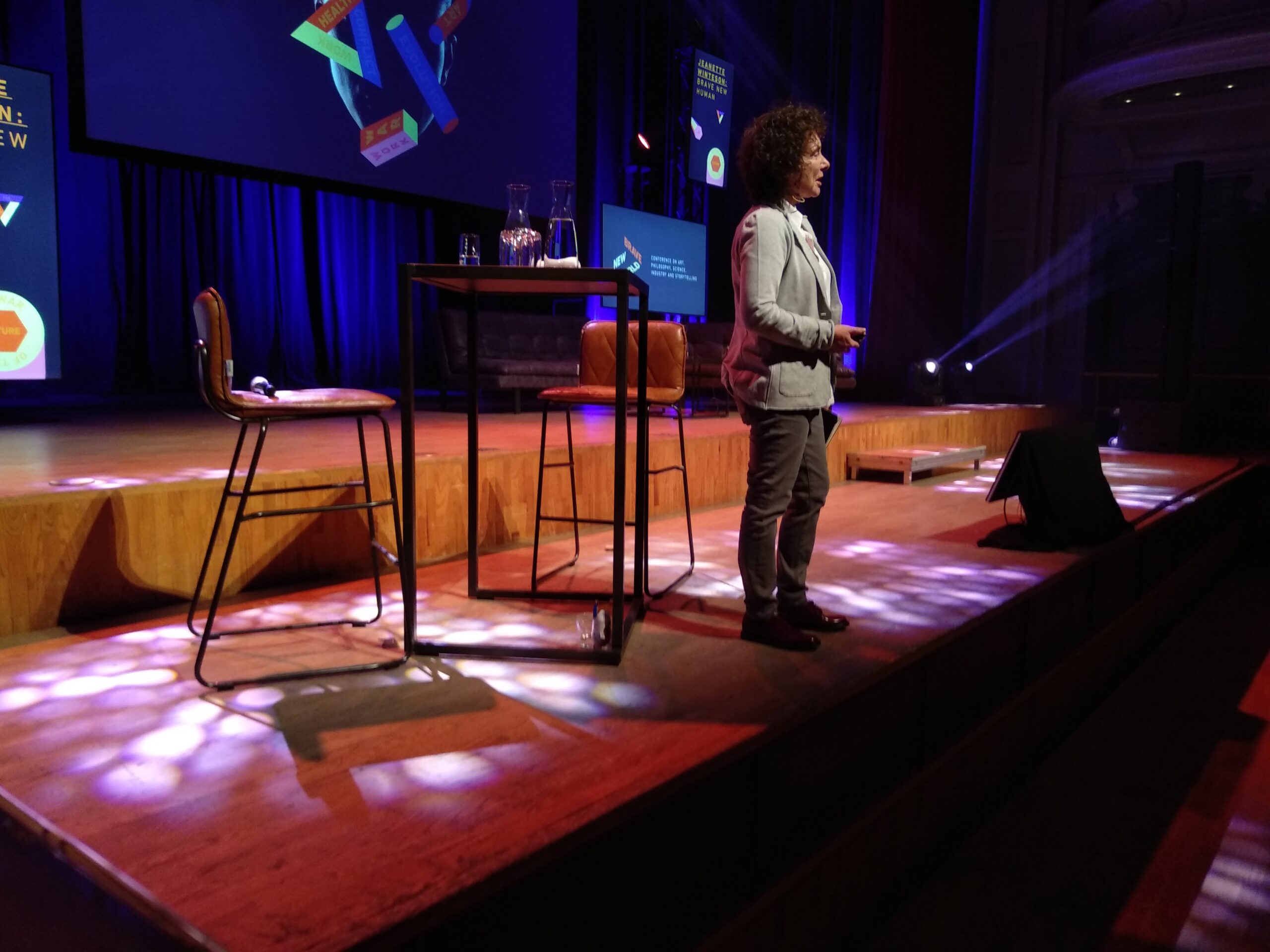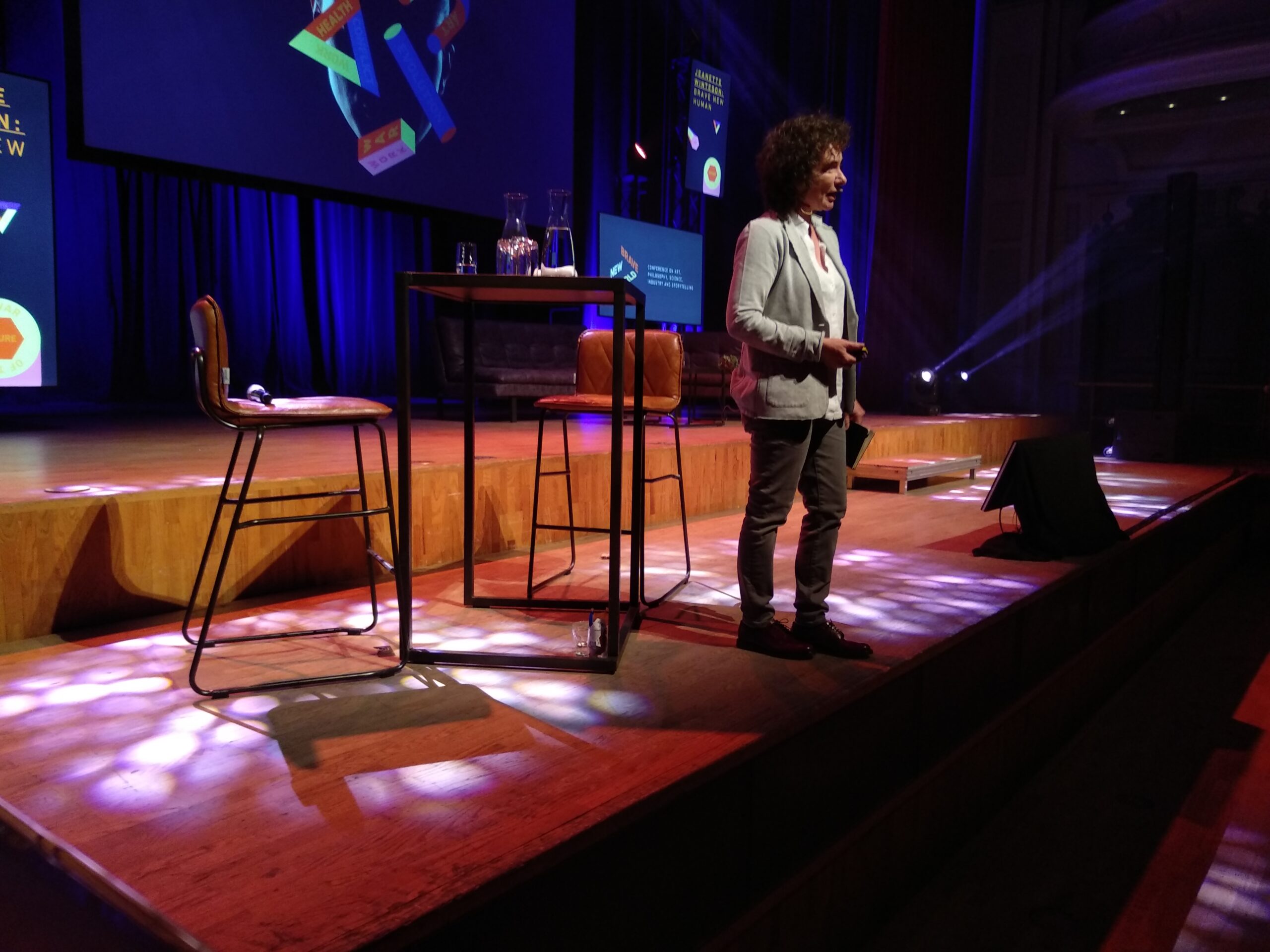 Jeanette Winterson bleek een gepassioneerde vrouw, die de huidige stand van zaken voor een voldongen feit accepteert maar tegelijk oproept daar heel kritisch naar te kijken en op te reageren. Een mening die ook Andrew Keen zal blijken te hebben. Haar kritiek richt zich onder meer op valse verwachtingen. Robot Sophia, hierboven, ís helemaal geen AI. Maar ook op het gegeven dat er geen vastliggende toekomst is. Die is beïnvloedbaar. Dat gebeurt ook in de productie van robots. Van sexrobots is verreweg het grootste deel vrouwelijk, en mismaakt (een clitoris hebben ze niet nodig). In China, waar de meeste producenten zitten, hebben ze vanwege het mannenoverschot daaraan behoefte. Winterson mist vrouwen in de ontwikkeling van AI en robots. En dat terwijl, in haar opinie, “vrouwen de vraag ‘wat is een mens’ beantwoordden” (Mary Shelleys Frankenstein bv).