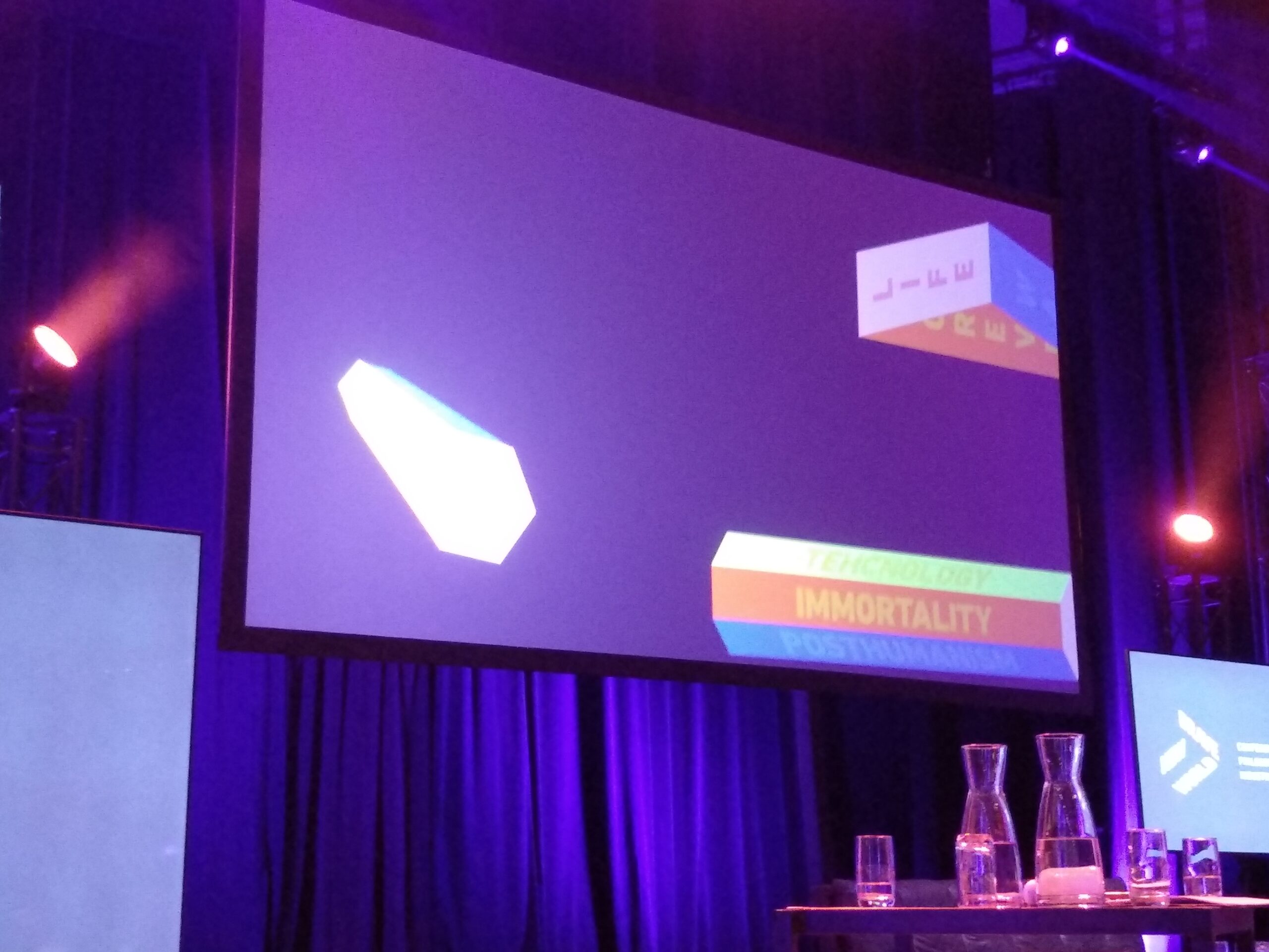 Zoals één van de sprekers opmerkte “deze conferentie heeft ook oog voor detail”. In de foyers waren installaties te zien van het Next Nature Network en van het Institute of Human Obsolescence, in de gangen hingen foto’s van Murray Ballards Prospects of Immortality, en op het podium stond Blockhead van Rudolf Romero en Shaun Fraser (een metershoog beeld 3d geprint beeld op basis van honderd foto’s van Michelangelo’s David, waardoor sommige delen beter dan andere tevoorschijn komen).