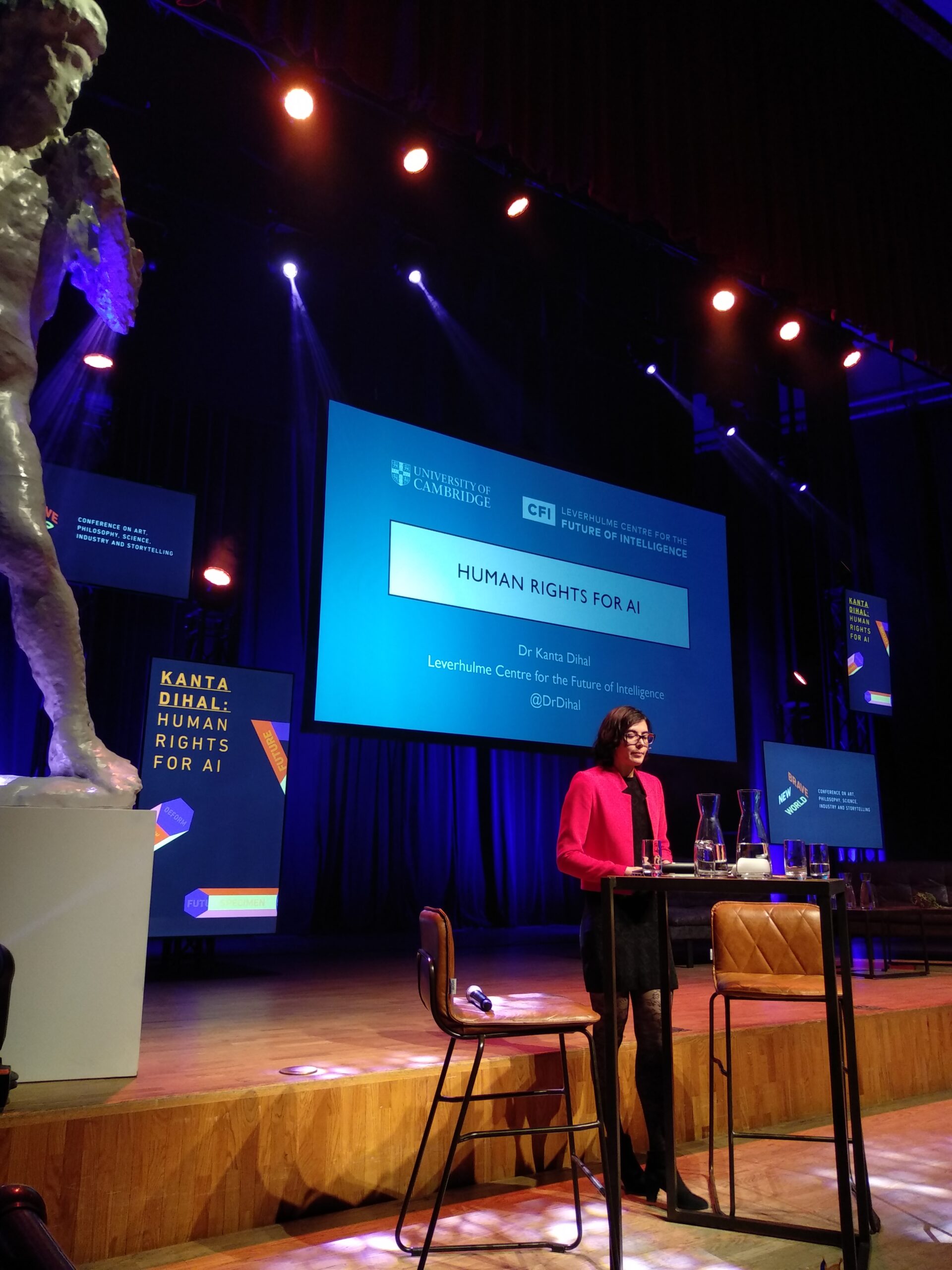 De vraag die zij opriep was wie deze technologie zal bezitten, zal controleren? Het is de vraag die ook andere sprekers bezig blijkt te houden. Keen zal pleiten voor meer regelgeving en vooral voor meer “politiek” en meer “agency” (handelen). Ook Kanta Dihal maakt zich daarover zorgen “als robots meer rechten hebben dan mensen in een land” (Saoedi Arabië, waar robot Sophia staatsburger werd en sommige gastarbeiders nooit). Of waarin de regimentsgeit wordt geëerd, maar vrouwen niet dienst kunnen nemen. Het zijn die ogenschijnlijk frivole uitstapjes die zorgen baren. Er zijn trekjes in te vinden van denkrichtingen waarin ménsen over andere mensen denken als zijnde ‘nutteloos’. Overigens benoemt Dihal nog een aspect. Zo lang het bij die eenmalige acties blijft, is er weinig aan de hand. Die tasten de status quo niet aan. Dat die gastarbeiders en vrouwen hun recht niet kregen, heeft te maken met aantallen en met het gevaar dat ze dan rechten opeisen. Ofwel: als robots meer op mensen gaan lijken en dreigen in de richting te gaan van ‘rechten opeisen’ zal de weerstand toenemen om die ook te geven.