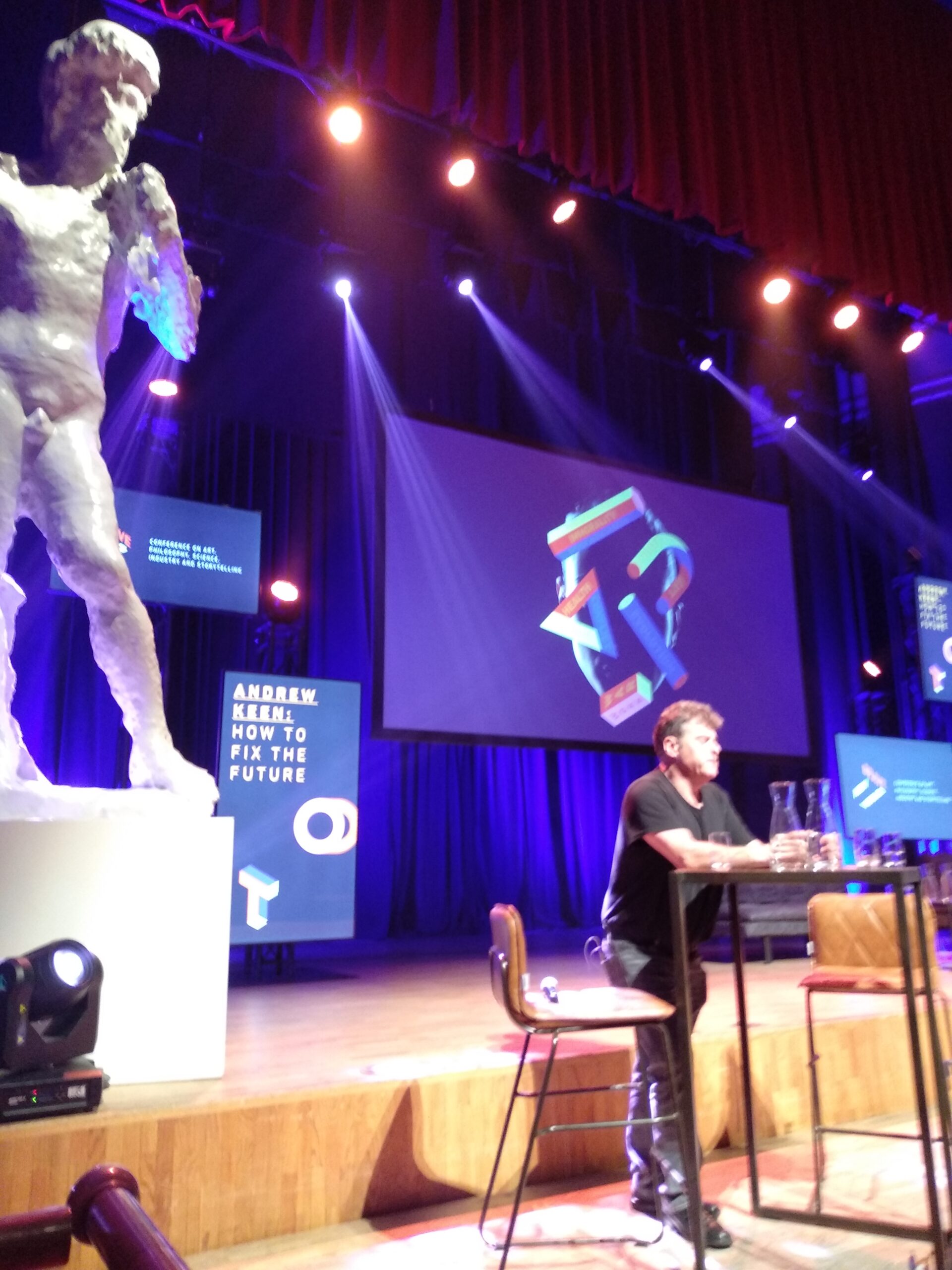 Andrew Keen zal vast zijn bedoeld als headliner of keynote speaker, maar zijn verhaal sprong er niet echt uit. Hij bracht ons, vanwege zijn eigen boek, terug naar More en diens Utopia. Keen haalde daar vooral uit het afwezig zijn van politiek. In zijn optiek is dat een enorm gemis. Hij kan zich (nog steeds) opwinden over een gebrek aan historisch besef, waardoor eerdere ervaringen niet worden herkend. En hij laat niet na op te merken dat de discussie in More’s tijd grondiger, dieper en rijker was dan die wij nu voeren. Een hoge dunk van de mensheid heeft hij niet “we always fuck up”. Maar in de eeuwen er op volgend herstellen we dat weer.