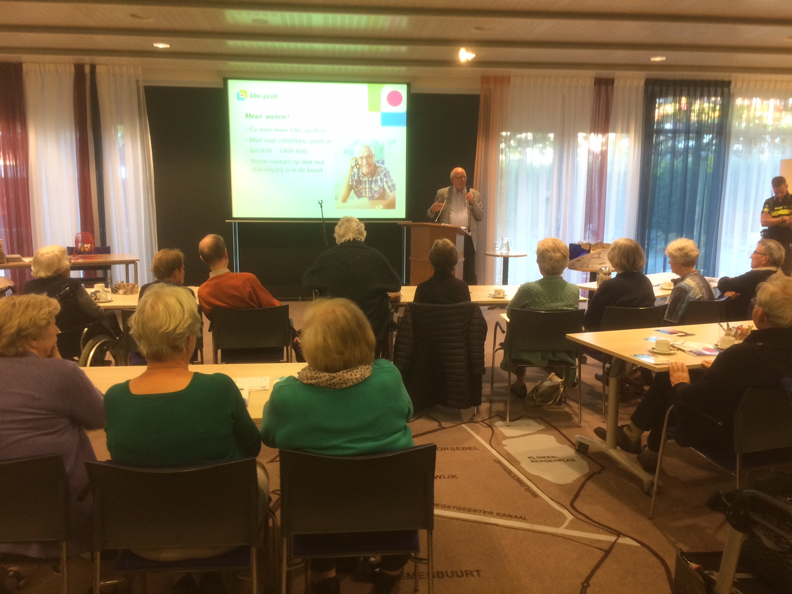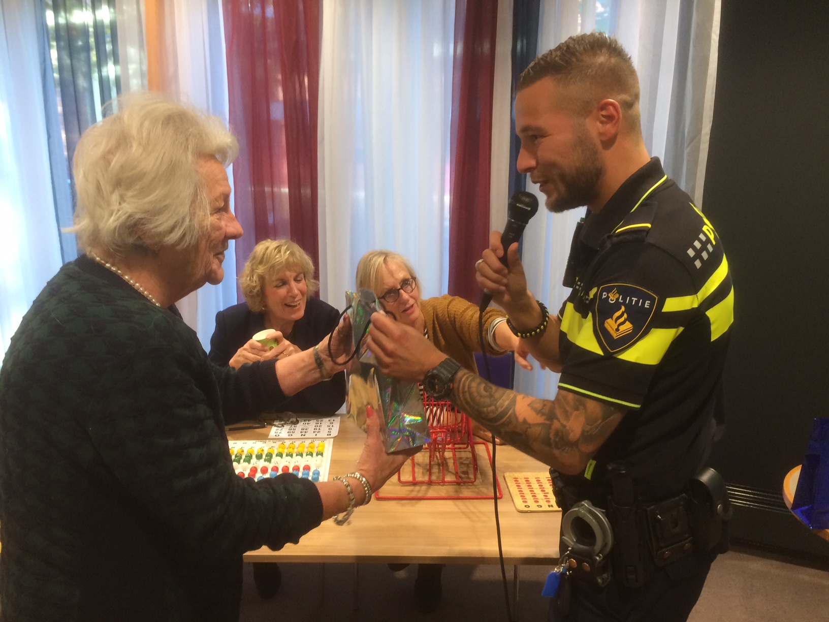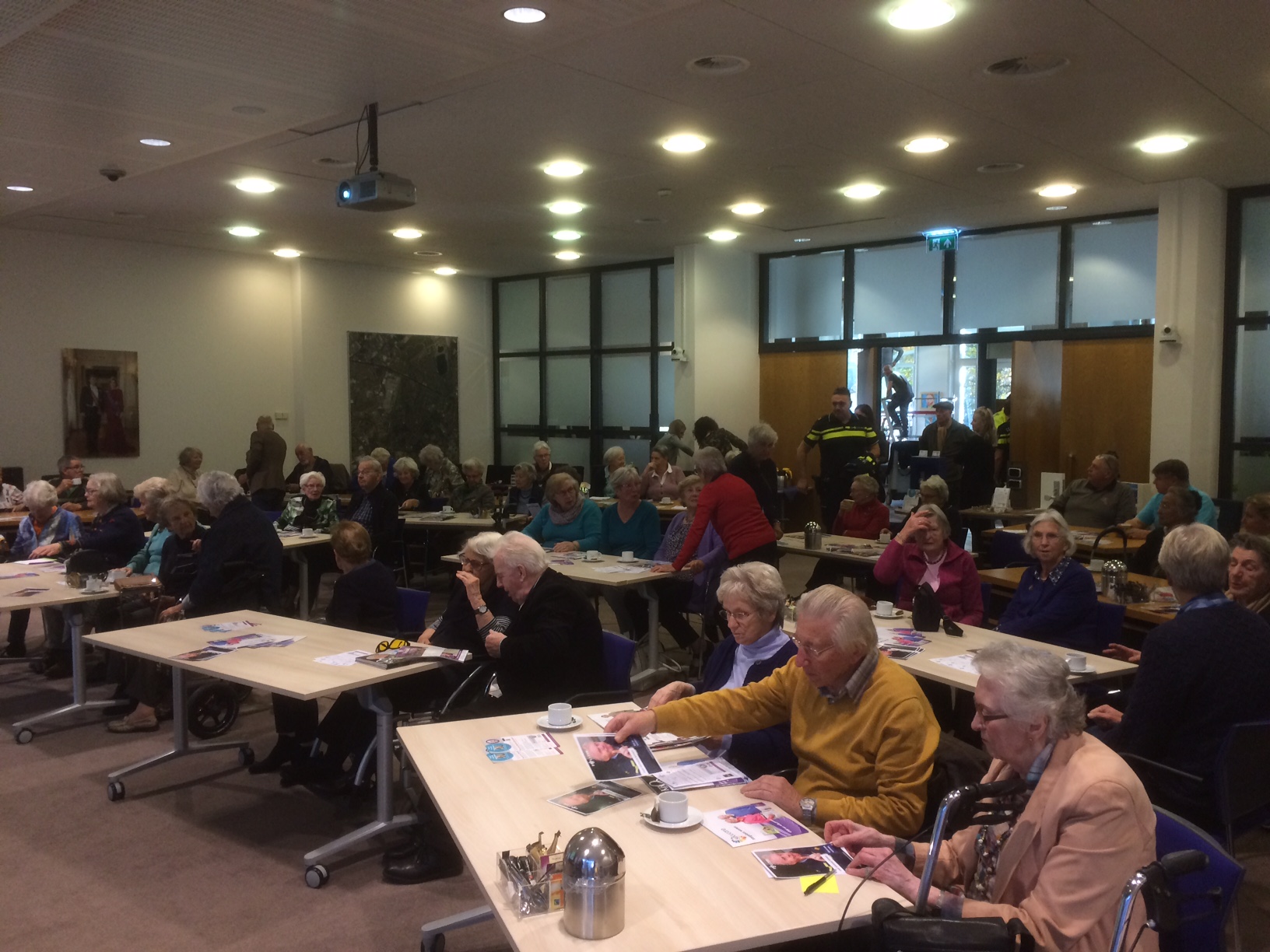 De combinatie van een leerzame voorlichting en een gezellige bingo bleek een gouden greep: met zeventig aanwezigen zat de raadzaal vol en stonden er zelfs enkele ouderen op een wachtlijst. “We hadden niet verwacht dat er zoveel mensen zouden komen, maar dat is natuurlijk wel erg leuk”, aldus Leonie Straathof (beleidsmedewerker Gemeente Oegstgeest en mede-organisator van de middag). Samen met politieagent Chris Bovenlander, die het idee voor de middag bedacht, regelde ze een slotenmaker en de Unie KBO om over preventie tegen babbeltrucs te vertellen.