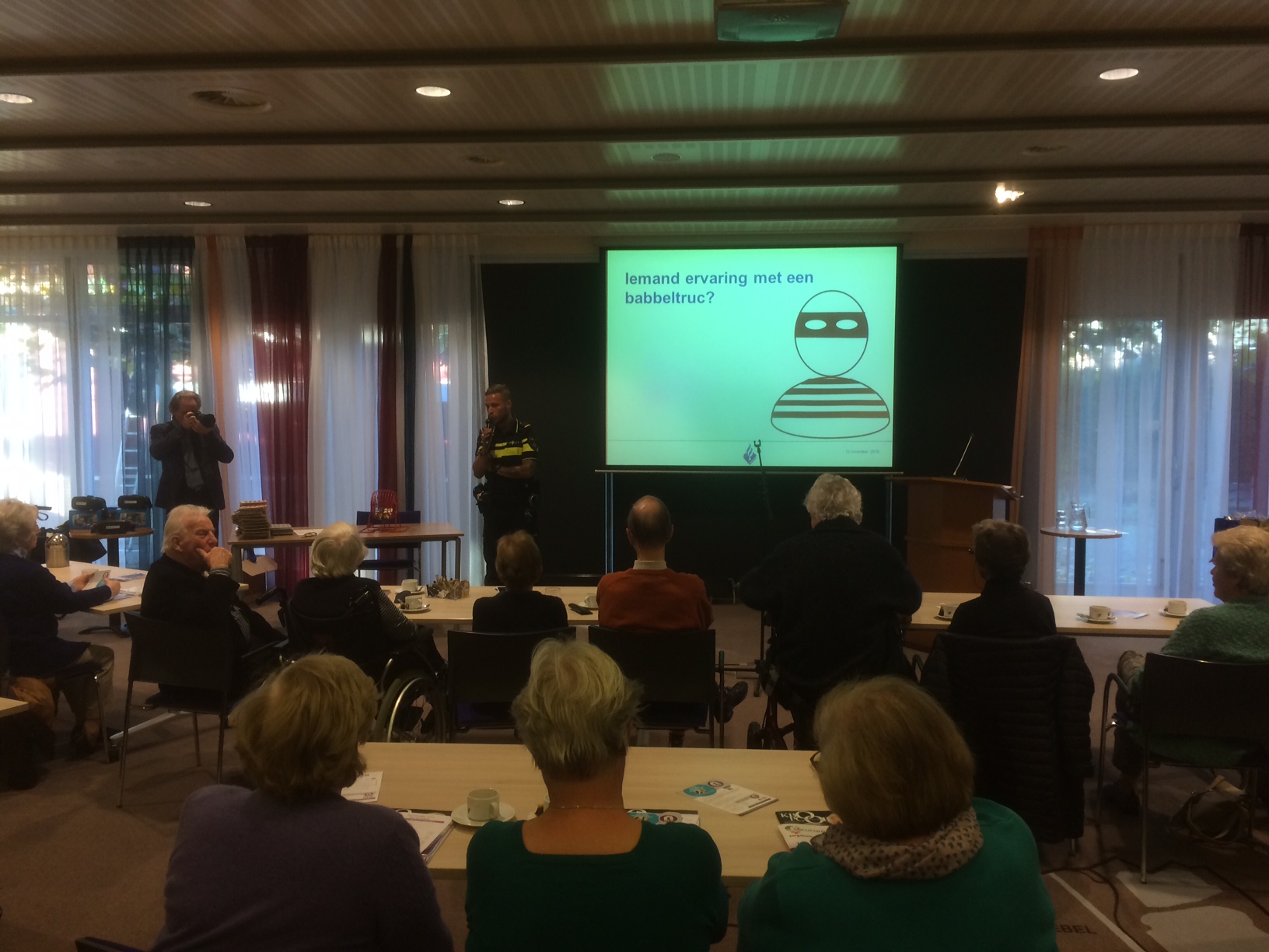 Naast voorlichting over babbeltrucs en de beveiliging van een woning, was er ook ruimte om onderling ervaringen uit te wisselen, met goede voornemens tot gevolg. “De deur niet open doen als je het niet vertrouwt, dat is heel verstandig volgens mij”, zegt een aanwezige. Vanuit de organisatie kwam ook een aantal tips, waaronder ook erg voor de hand liggende, maar daardoor niet minder relevant: “goed opletten of je iemand vertrouwt, ik denk dat je daar al een heel eind mee komt”, aldus Straathof.