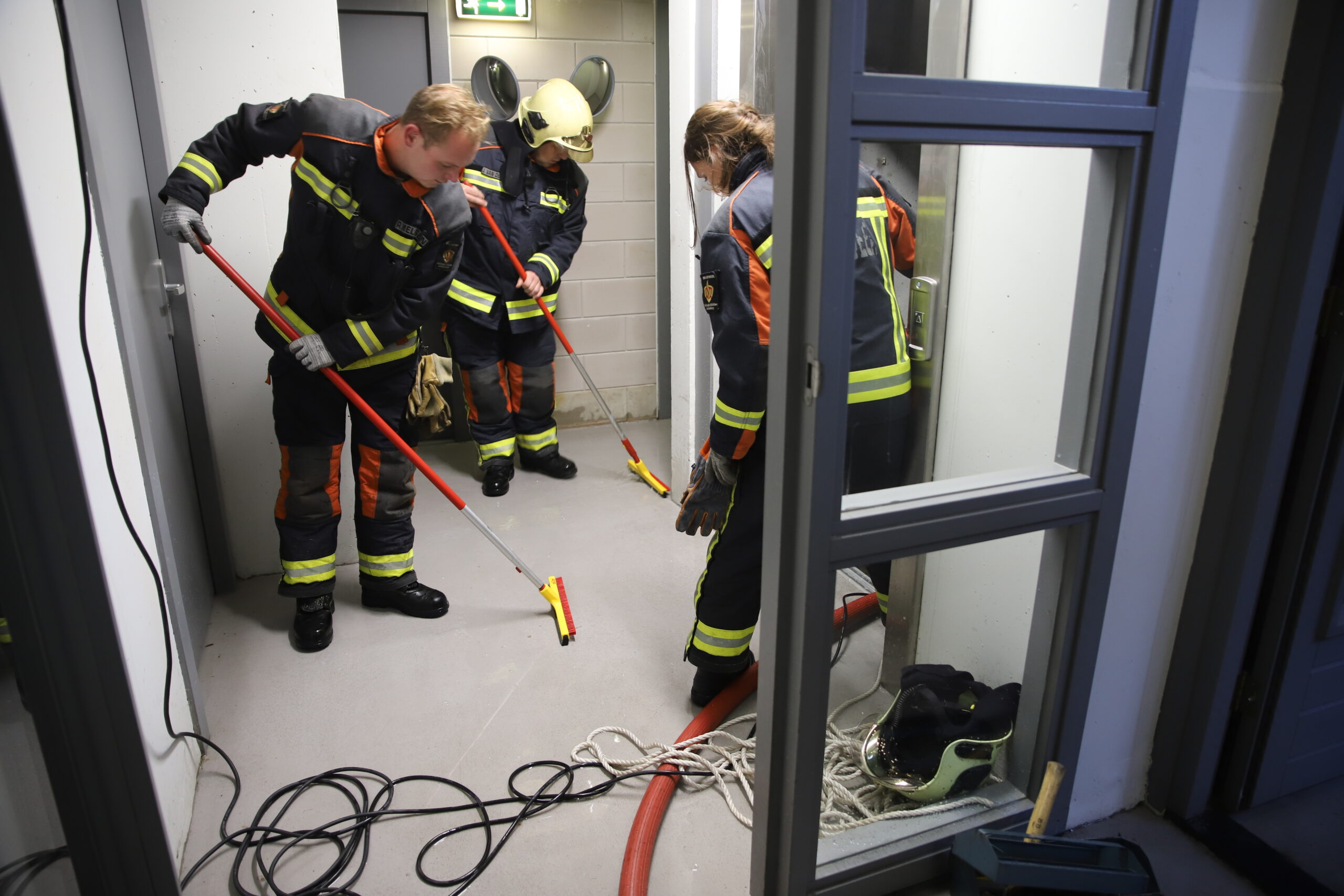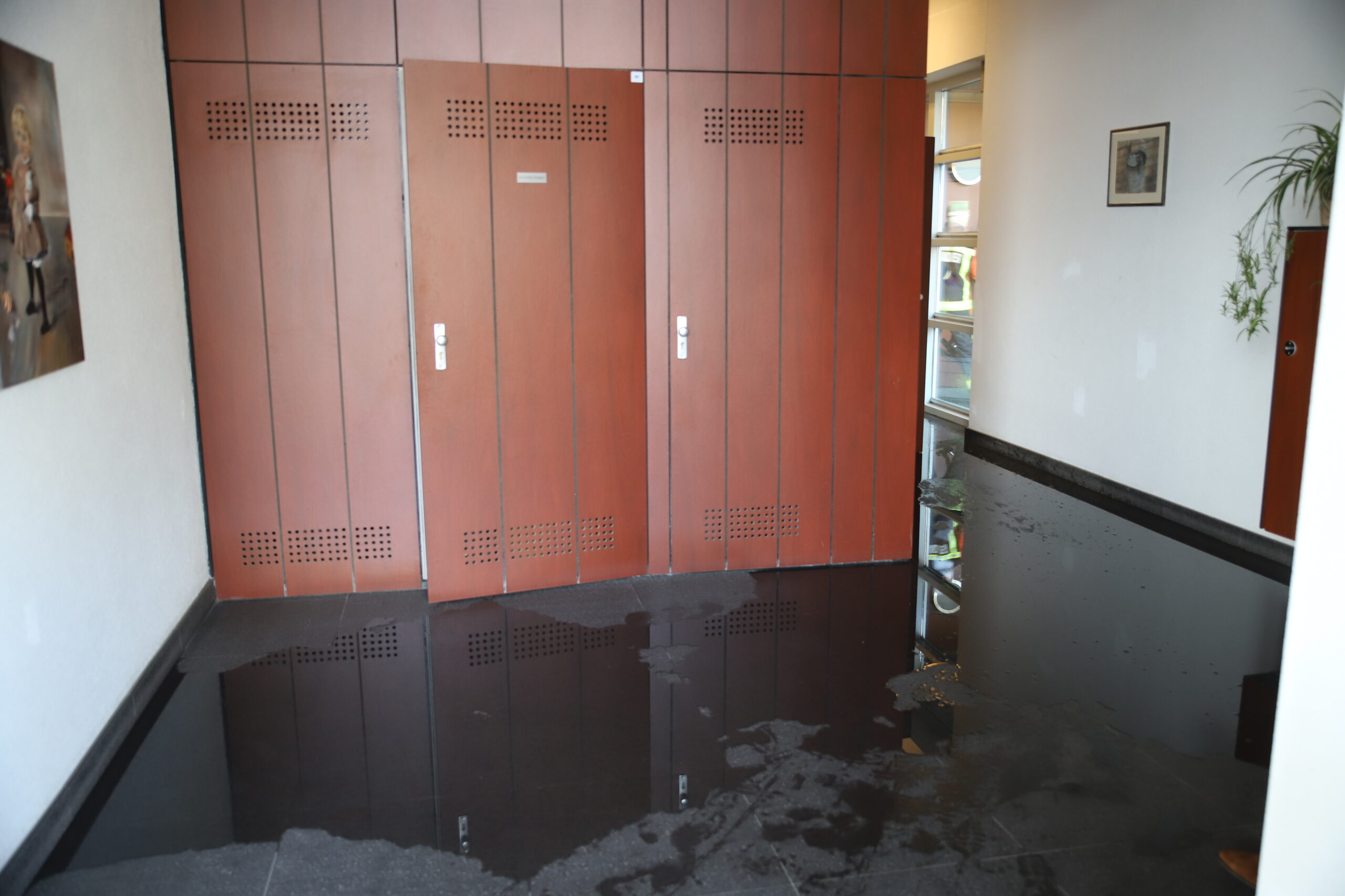 Het water liep naar de onderliggende winkel en ook de liftschacht en de kelder van het gebouw zijn volledig vol gelopen