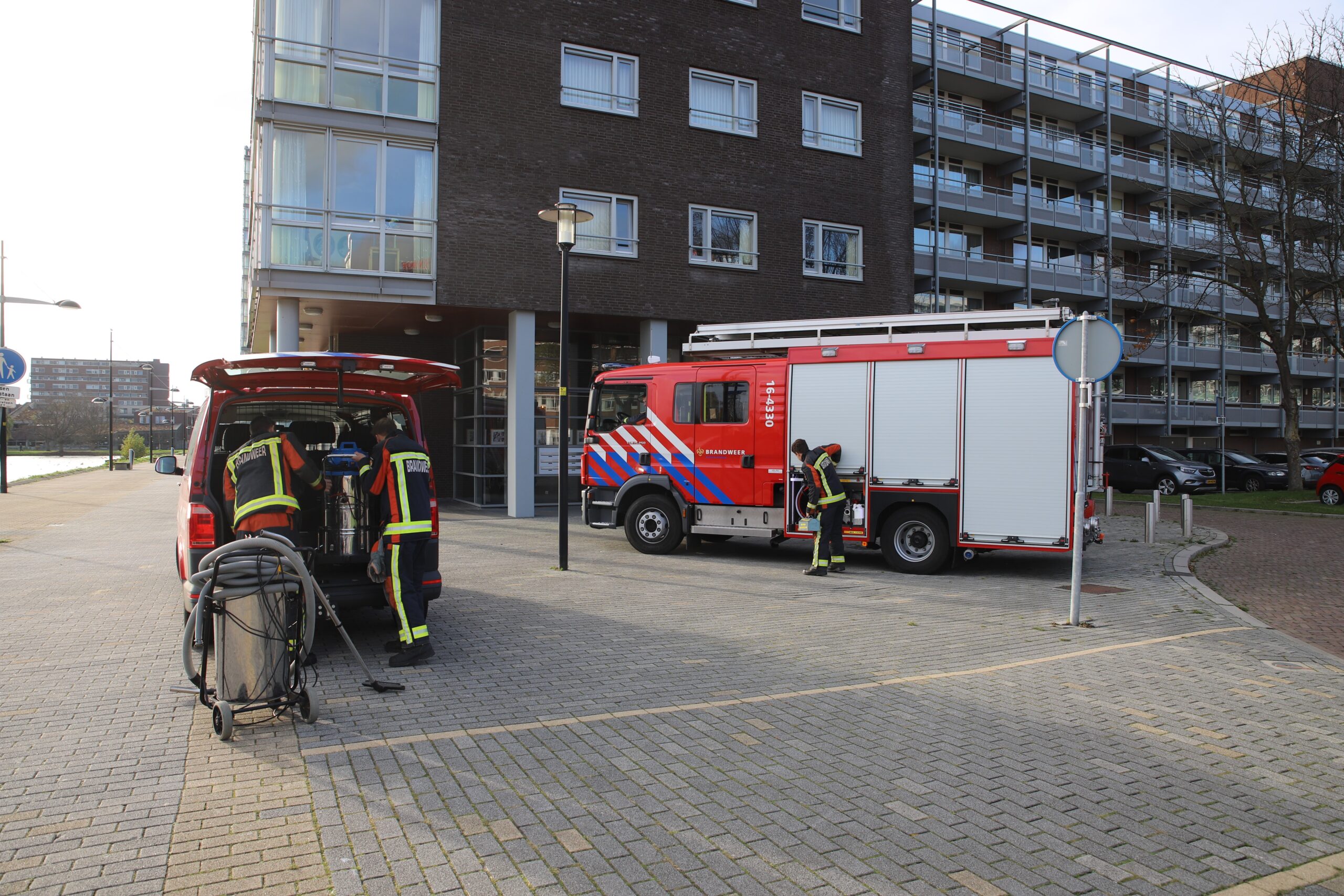 Een gebroken leiding heeft vanmiddag voor flinke wateroverlast gezorgd in een woontoren aan de Laan van Barendrecht in Leiderdorp. Het water stroomde de liftschacht in, nadat op de eerste verdieping de waterleiding het had begeven.