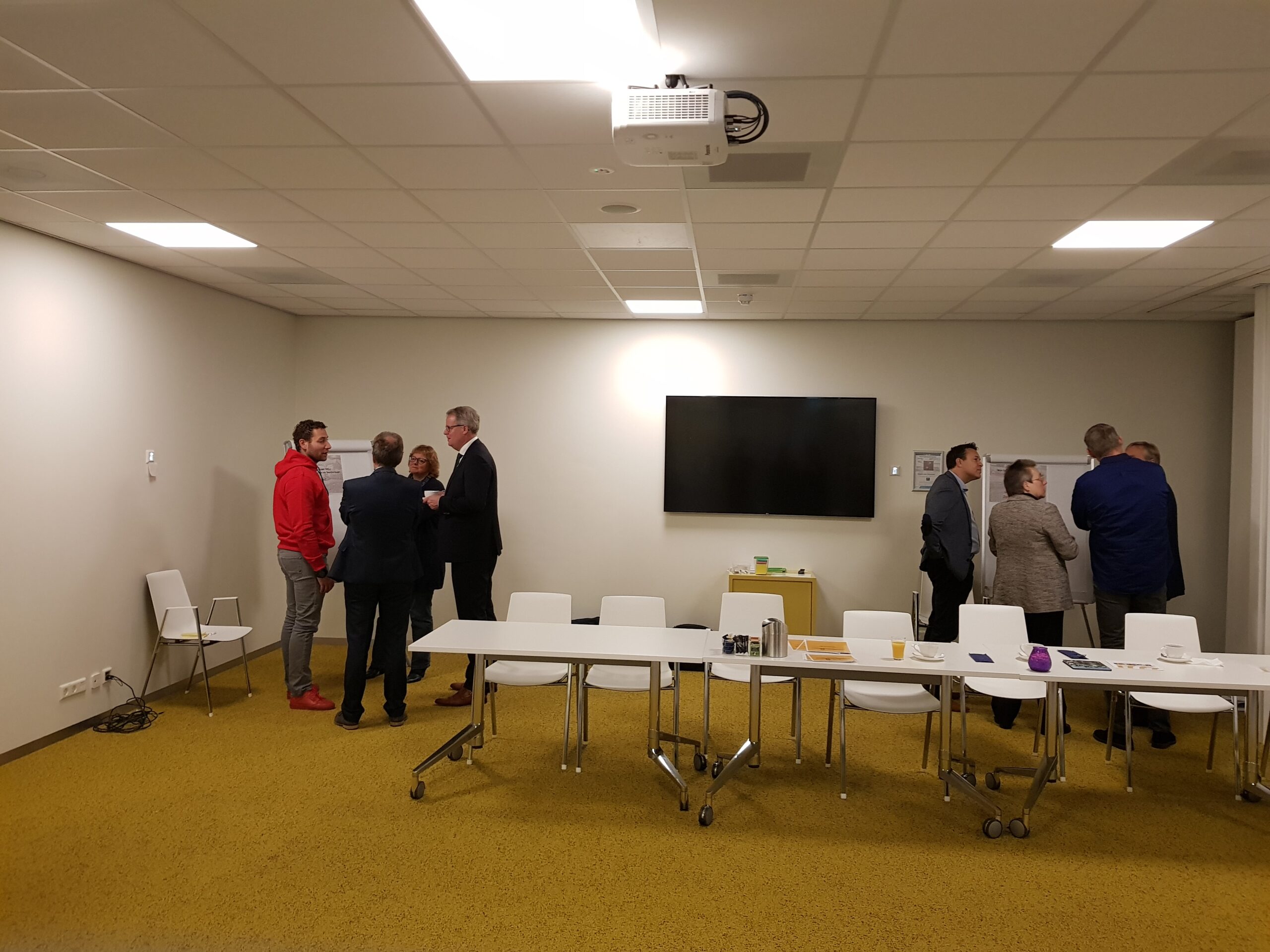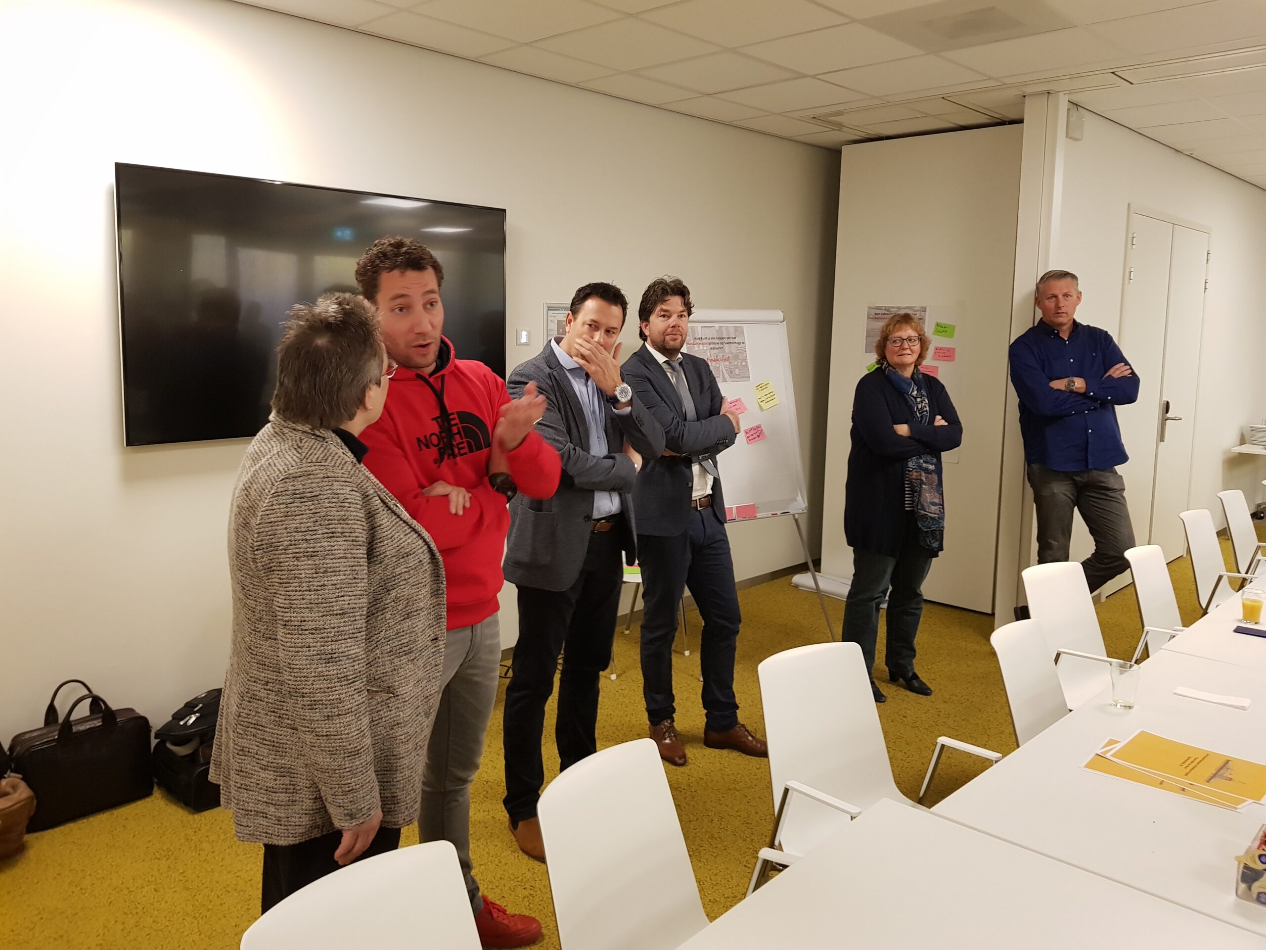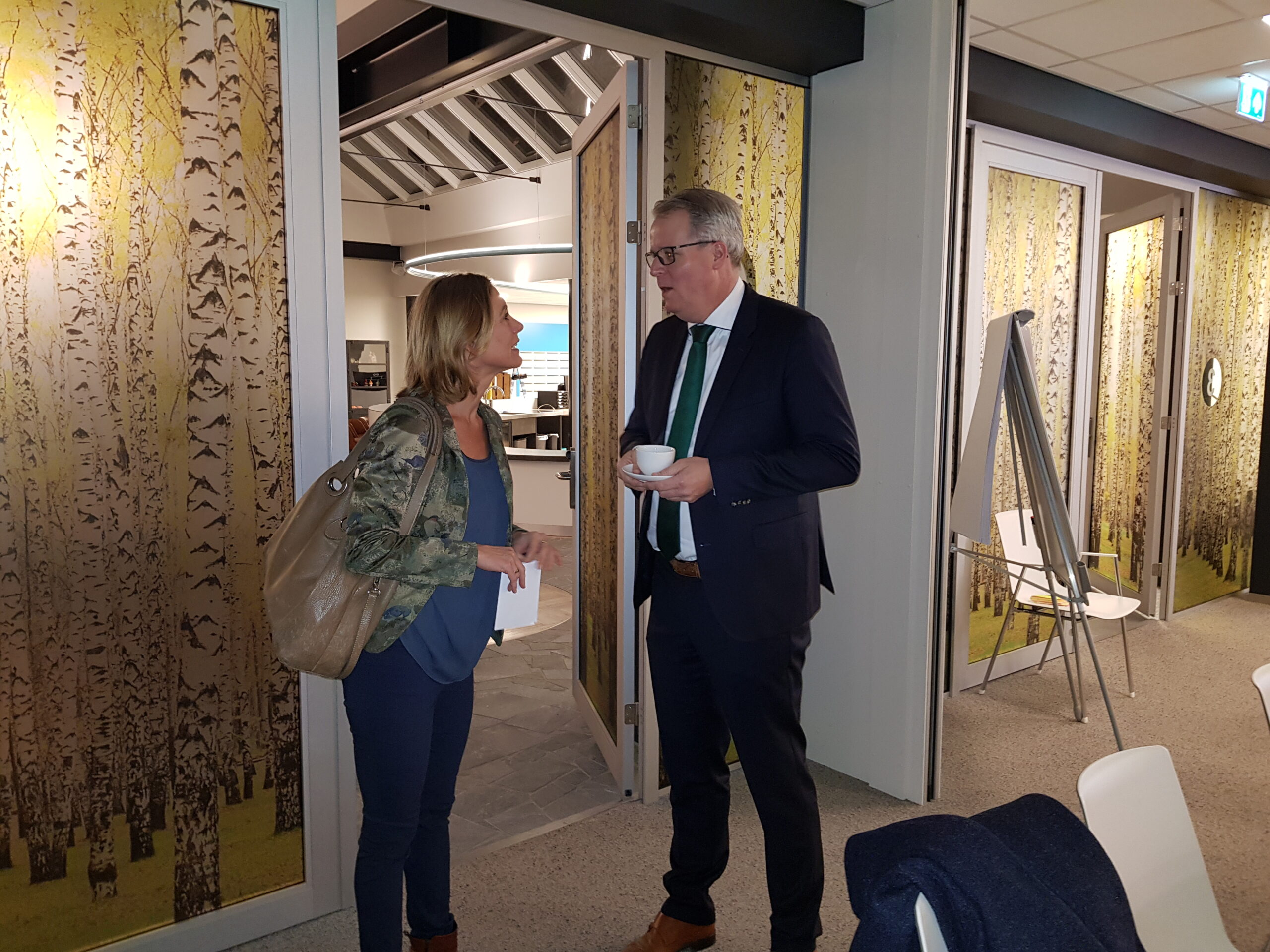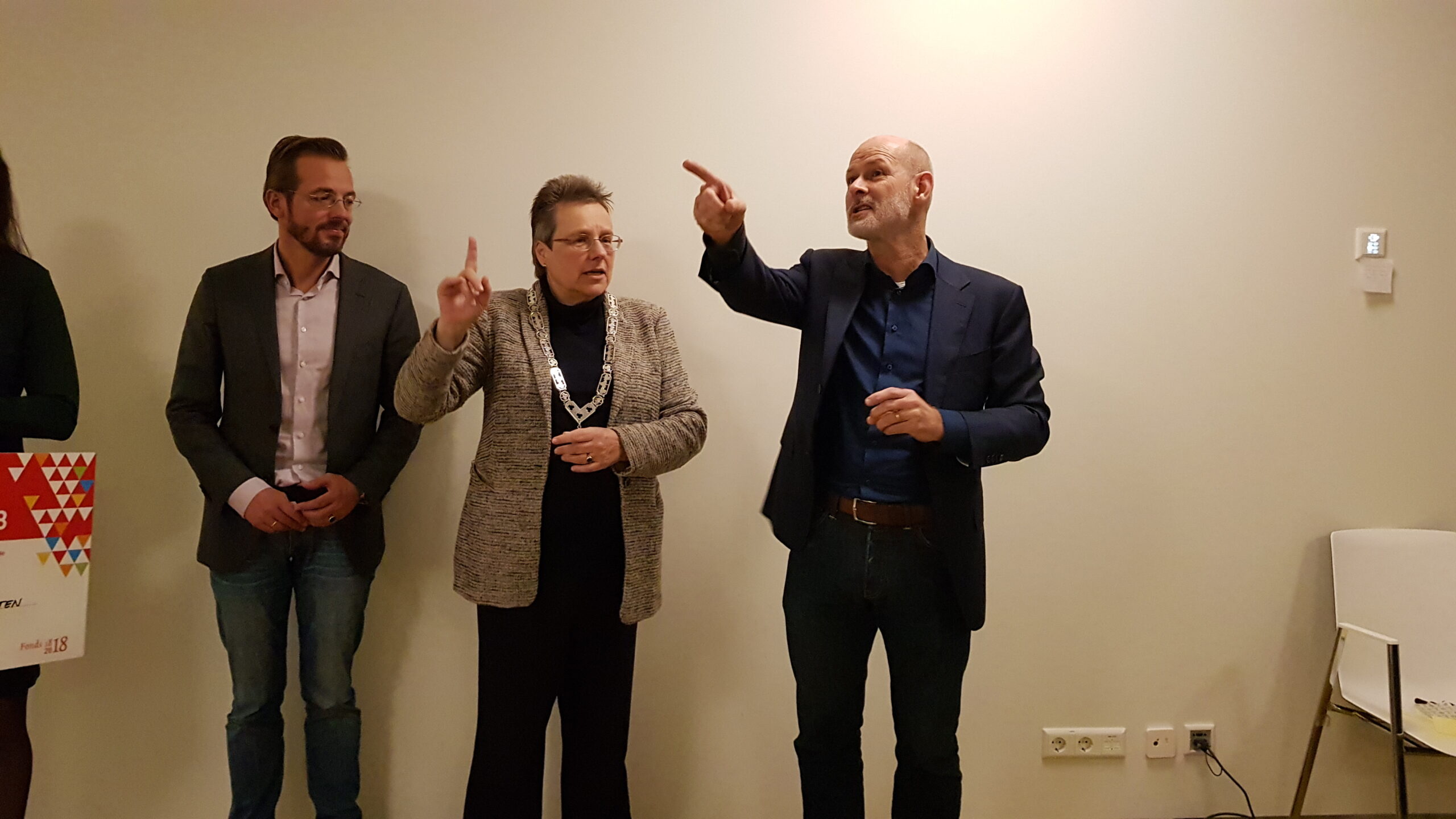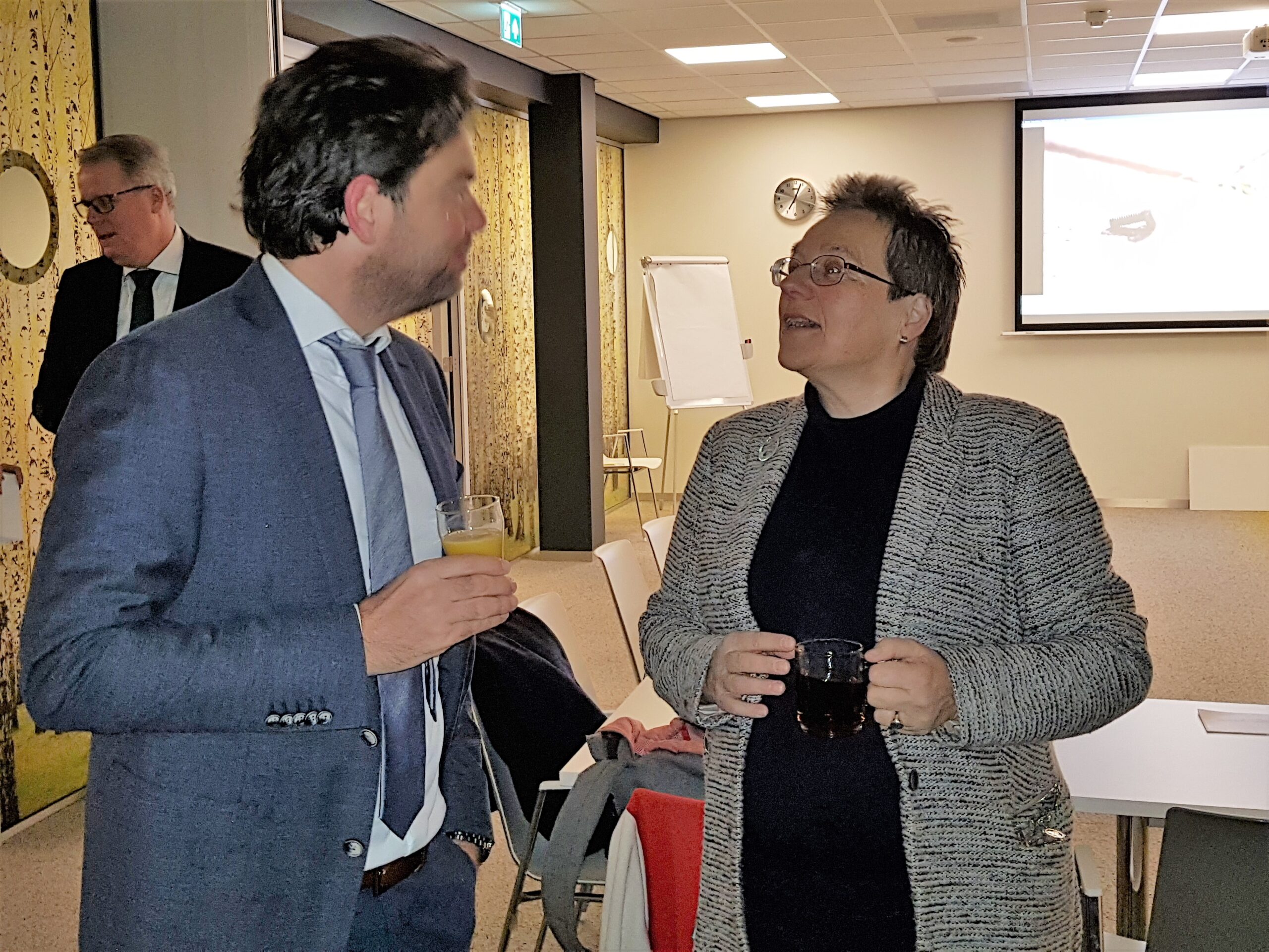 Chris de Waard ging langs bij het ontbijt en sprak met aanwezige ondernemers, burgemeester Bloemen, George de Water van de Raad van Bestuur van Gemiva, directeur Ten Bokkel Huinink van Fonds 1818, wethouder Ton de Gans en projectleider Sandra Larsen.