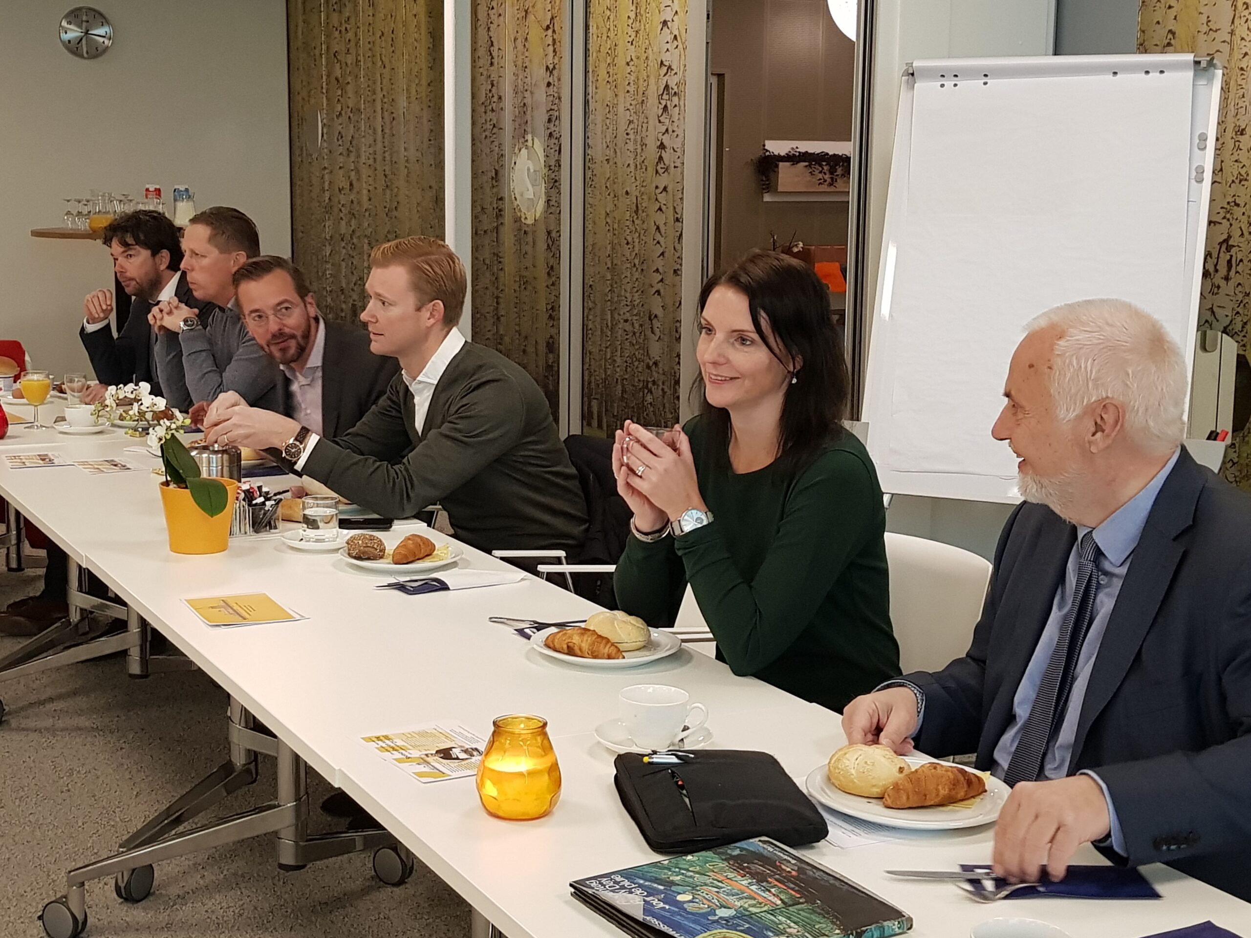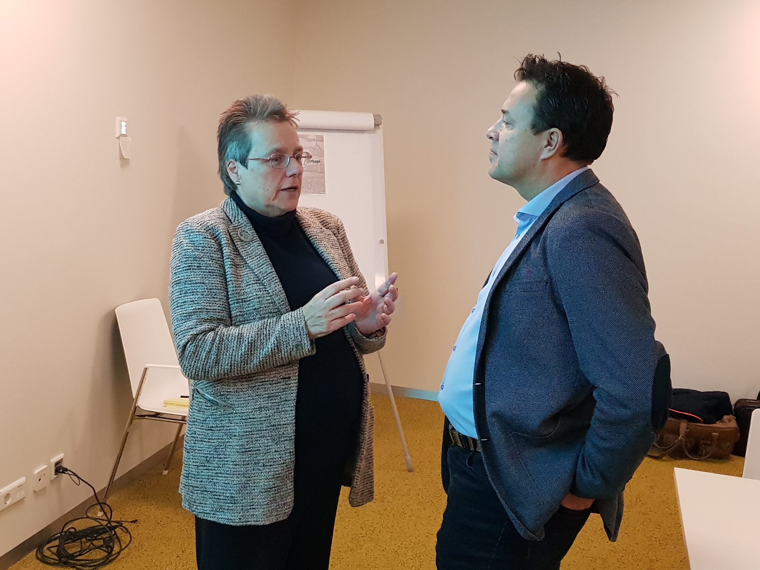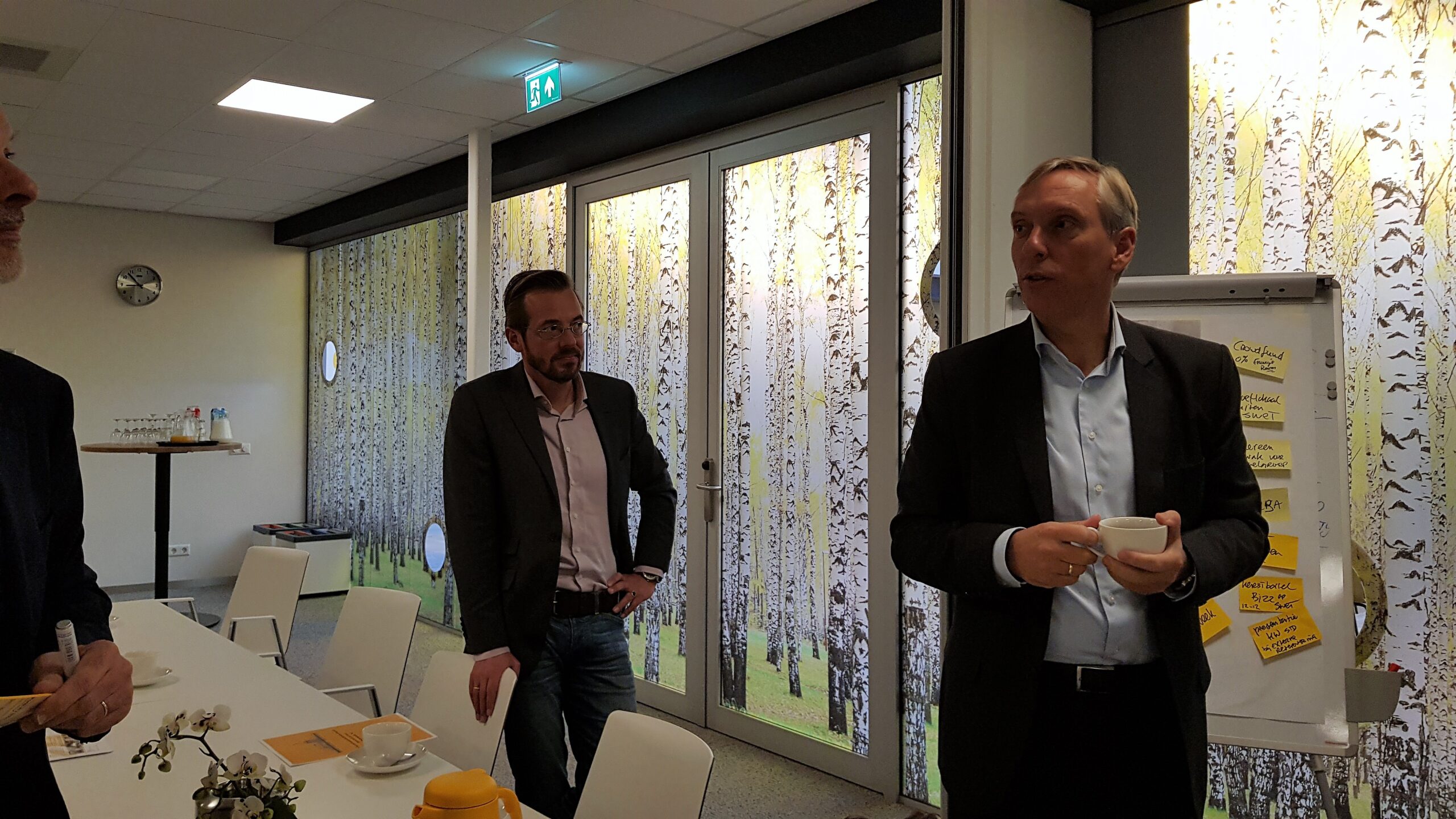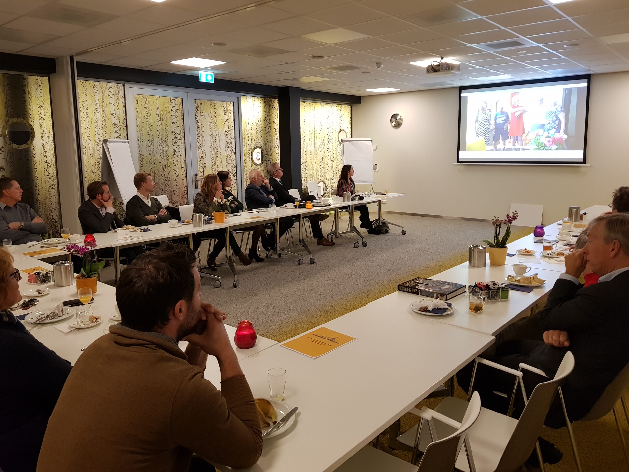 Chris de Waard ging langs bij het ontbijt en sprak met aanwezige ondernemers, burgemeester Bloemen, George de Water van de Raad van Bestuur van Gemiva, directeur Ten Bokkel Huinink van Fonds 1818, wethouder Ton de Gans en projectleider Sandra Larsen.