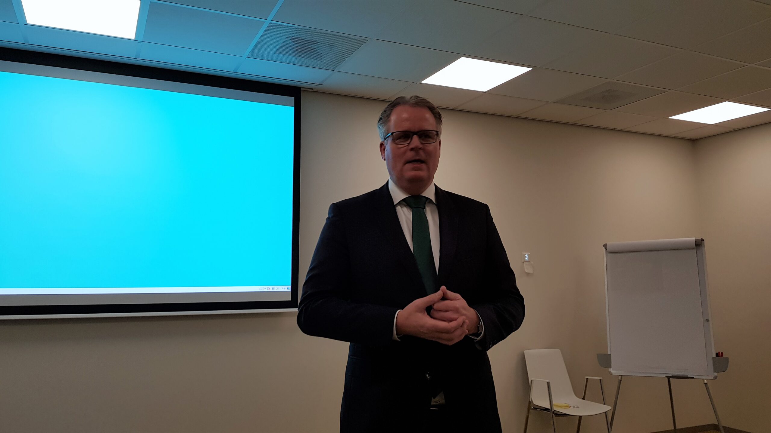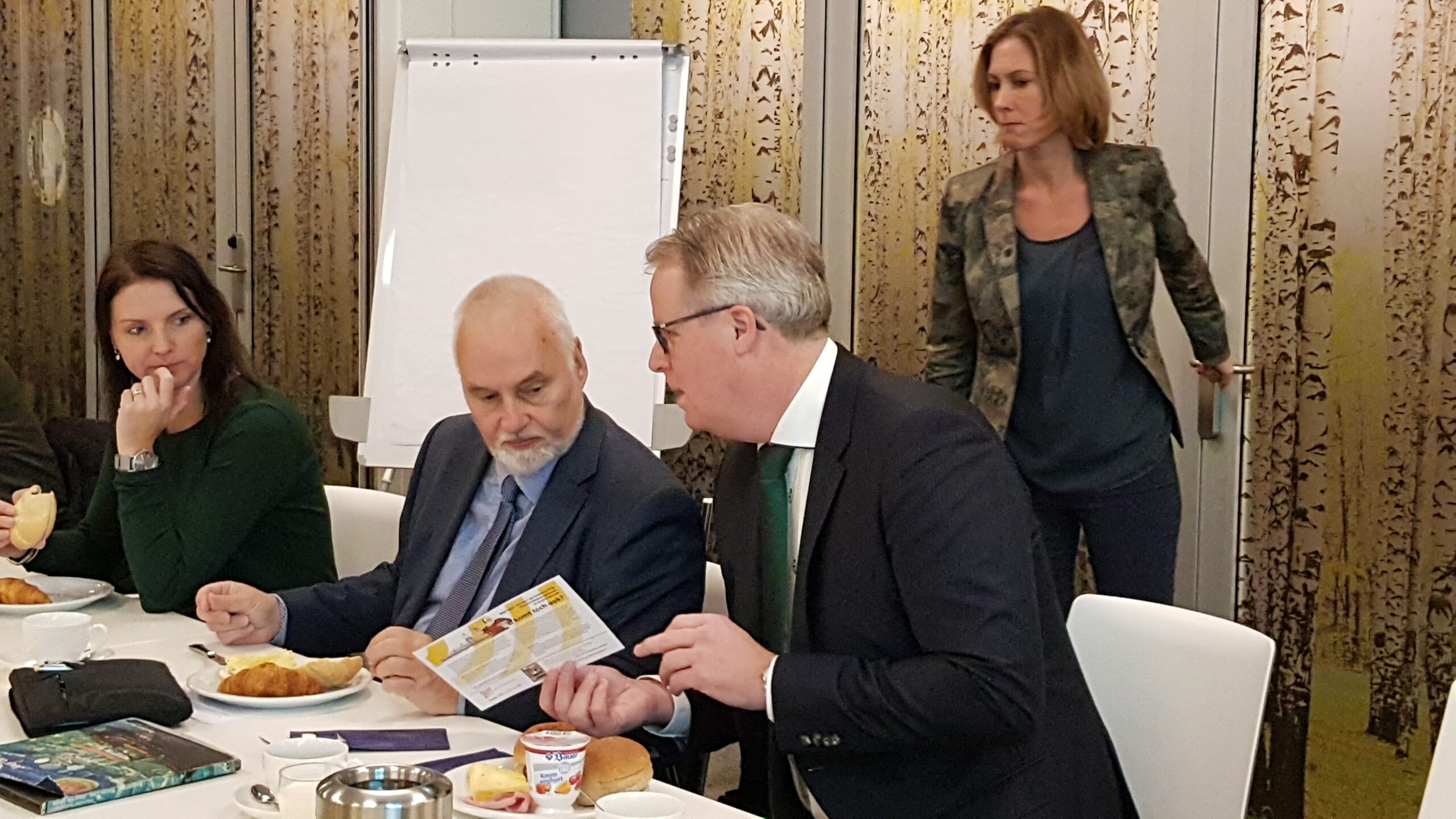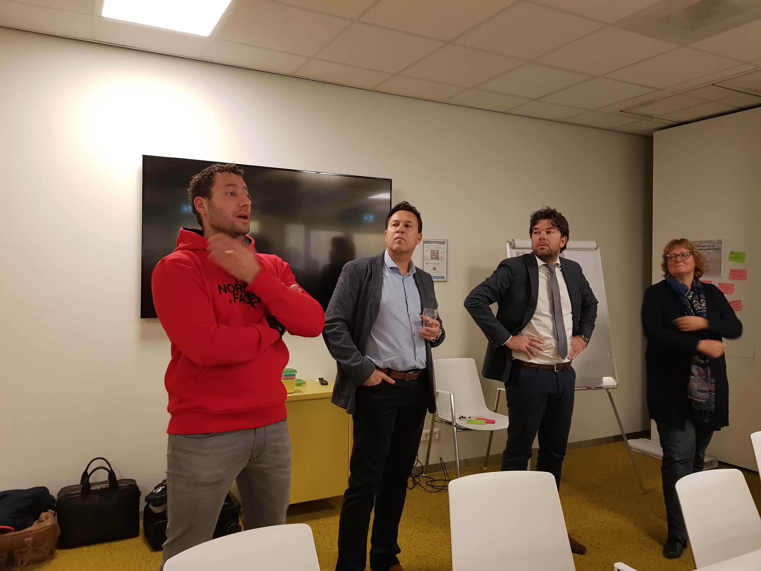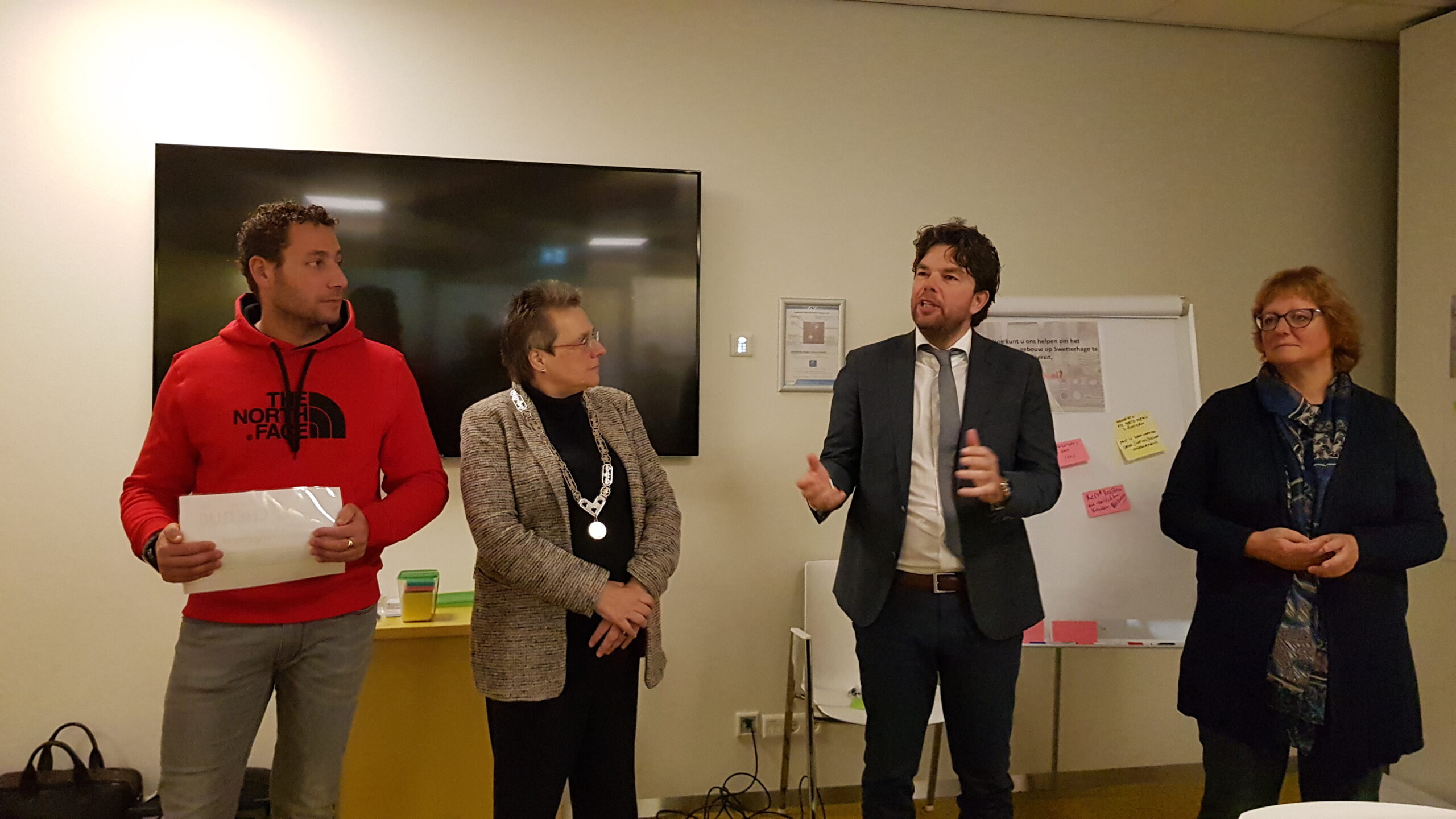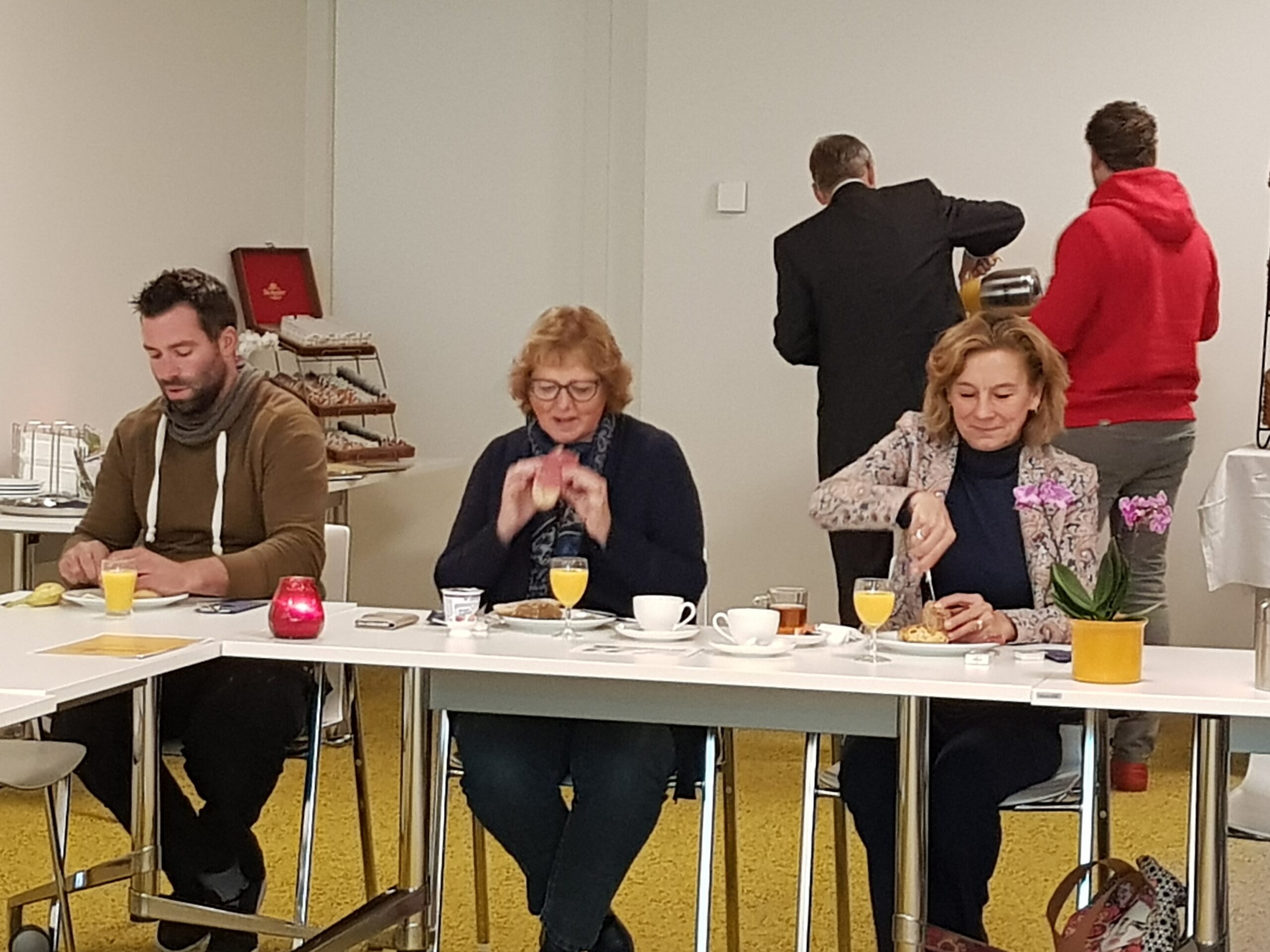 Chris de Waard ging langs bij het ontbijt en sprak met aanwezige ondernemers, burgemeester Bloemen, George de Water van de Raad van Bestuur van Gemiva, directeur Ten Bokkel Huinink van Fonds 1818, wethouder Ton de Gans en projectleider Sandra Larsen.