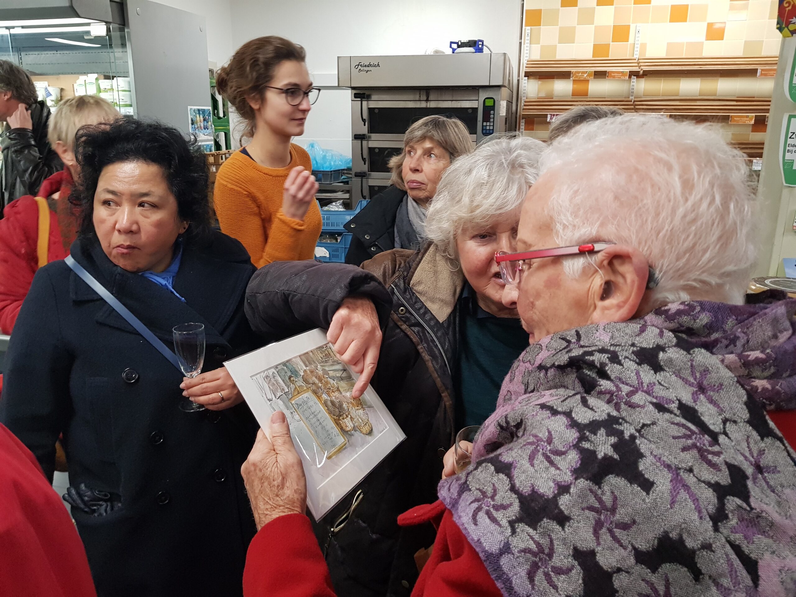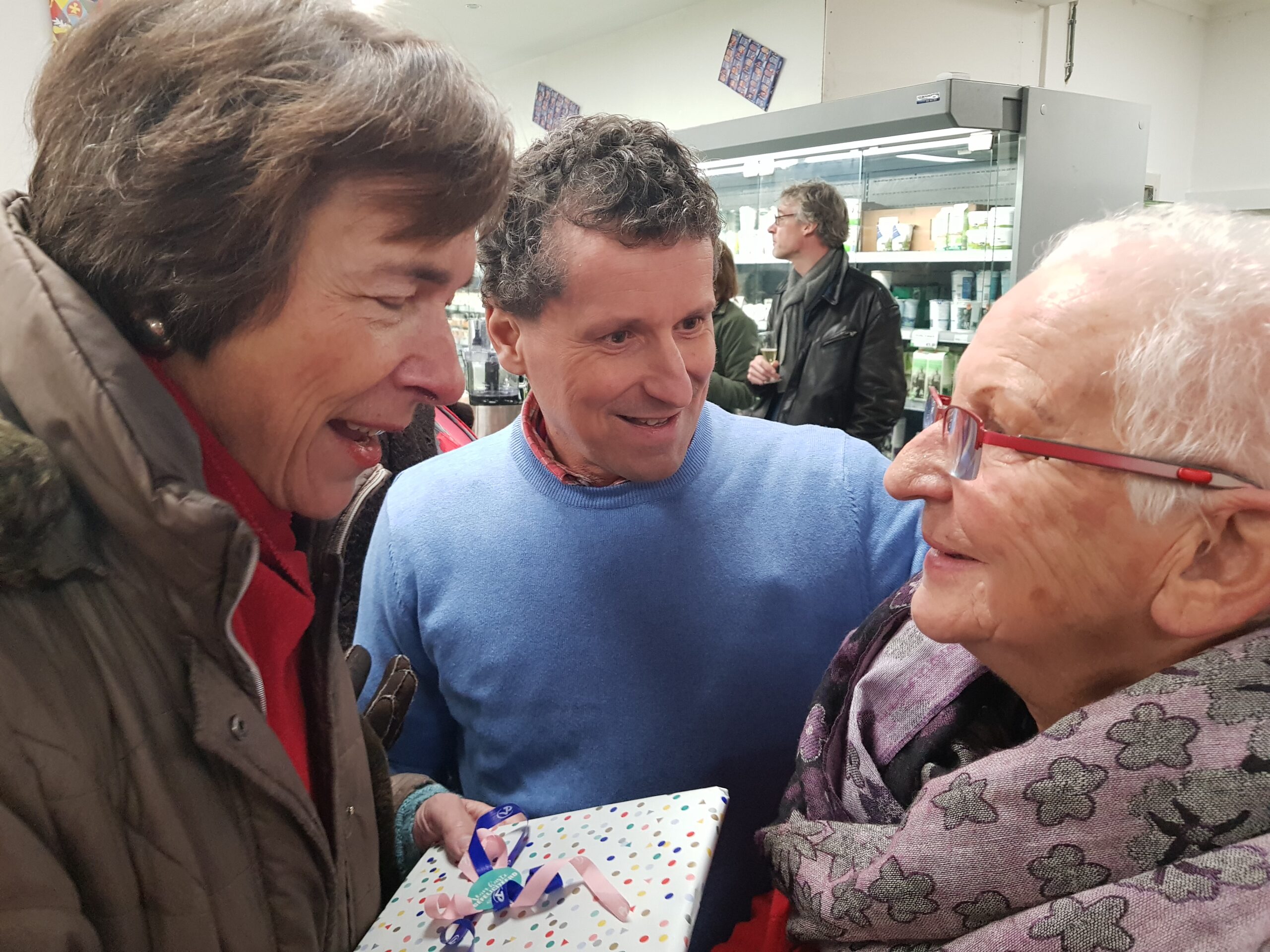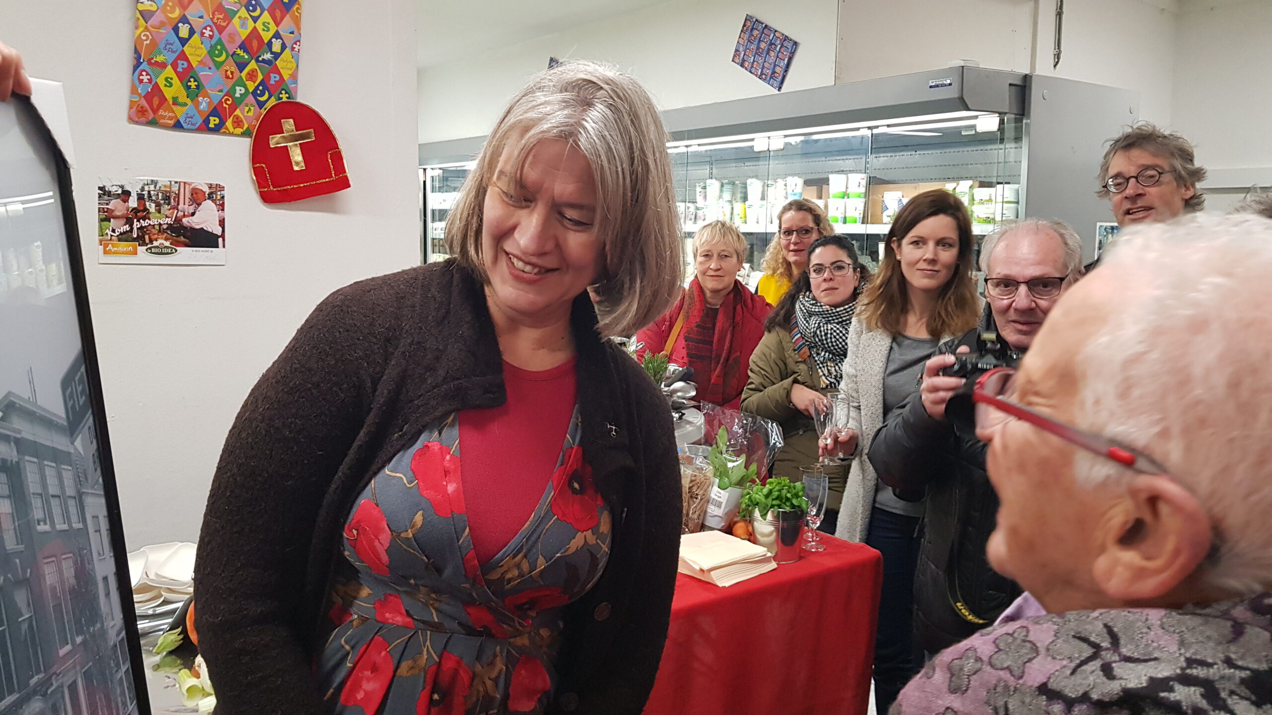 Chris de Waard ging naar het jubileum van De zaailing en sprak met wethouder Martine Leewis, eigenaar Paul van Ginkel, moeder Bep van Ginkel die de winkel is begonnen en met Joke die jarenlang in de zaak werkte.