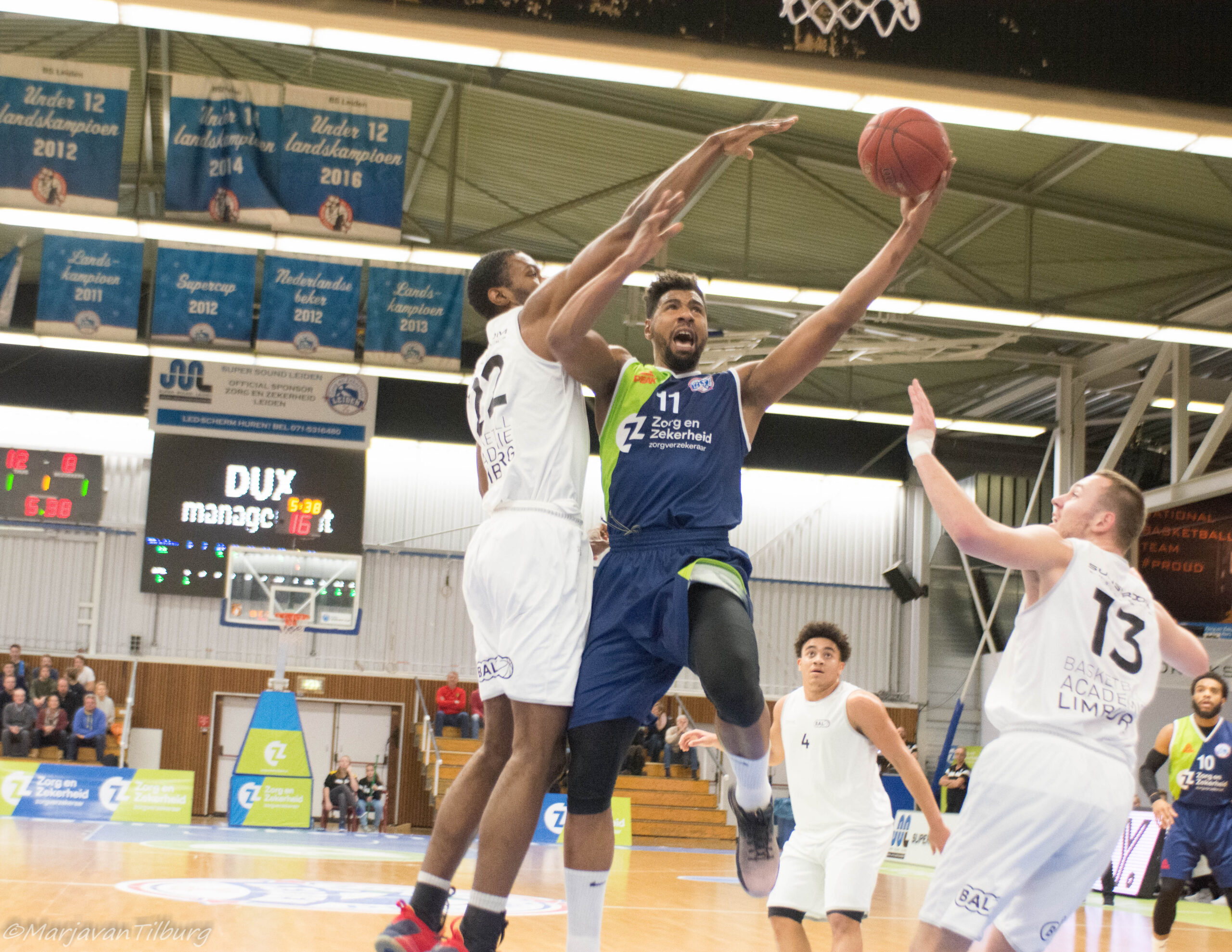 Zorg en Zekerheid Leiden heeft voor het eerst dit seizoen de grens van de honderd punten aangetikt. Dit was vooral te danken aan een zeer sterke eerste helft die met 62-37 werd afgesloten. In de tweede helft bood Basketball Academie Limburg meer tegenstand, maar Marijn Ververs zorgde met een vrije worp voor het honderdste punt: 100-73.