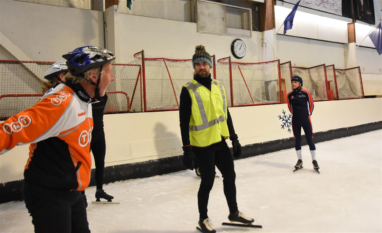 Chris de Waard in gesprek met voorzitter Jos Arts van de Schaatshal Leiden over de clinics, maar ook over de wensen die er onder de schaatsers nog leven in relatie tot de nieuwe hal.
