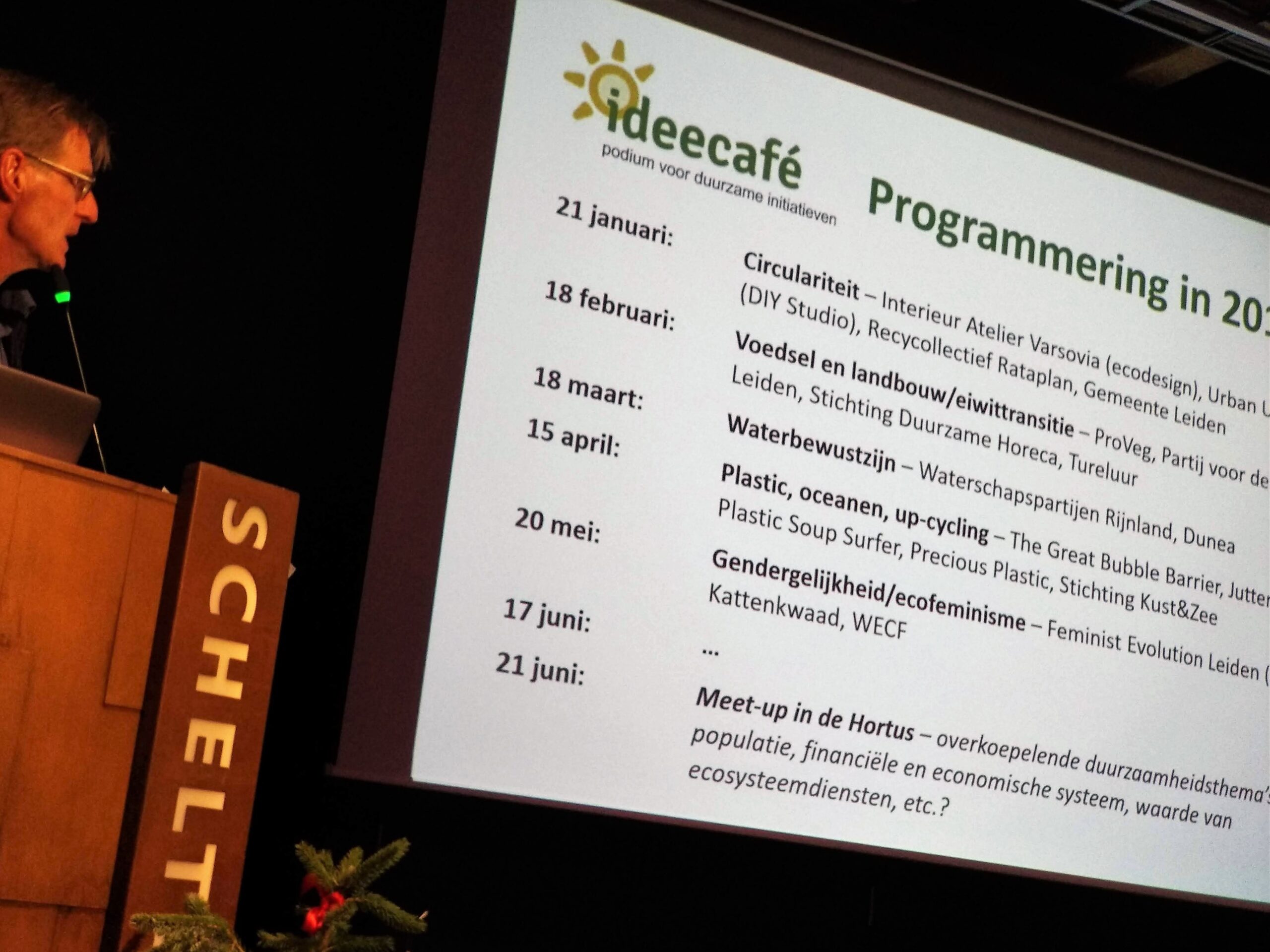 Ideecafé is ook een plaats waar informatie wordt gedeeld. Voor wie zich erdoor aangesproken voelt: op 21 december vertrekken 70 mensen naar Griekenland om 1000 vluchtelingen op te halen We gaan ze halen. Symbolisch, want de bedoeling is vooral de aandacht vast te houden voor de mensonterende omstandigheden waaronder vluchtelingen op de eilanden leven “zijn we dat gewoon gaan vinden?!”. Of een discussie met film op 14 december in De Ontsporing (Bielsenstraat 1b in Leiden) over klimaatactie: Code Rood, wat kun je doen?