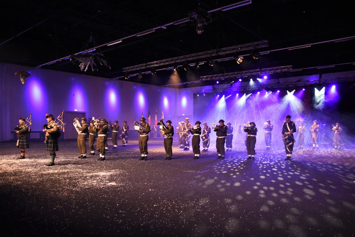 Volle tribunes met een enthousiast publiek afgelopen zaterdag in het ECC van Holiday Inn. Zowel de gehandicapten voorstelling in de middag als het avondprogramma werden goed bezocht. Naast gastheer The Band of Liberation & Pipes traden een keur aan korpsen op zoals het Dickensorkest, K&G 3, de Leidse Show and Marchingband Amigo, Pegasus Pipes & Drums en de Rijnmondband. Vanuit Engeland was het Corps and Drums Cheshire Police overgekomen. Behalve de inbreng van de korpsen waren er ook 2 dansen van een Indonesische dansgroep en traden de Irish Dancers van de Kilkenny Irish Danceschool uit Den Haag op. Grote indruk maakte het optreden van de 12 jarige violist Pouya. Gerlinde Vliegenhart was op het laatste moment uitgenodigd voor de show en bracht een geweldige vertolking van ‘Let it go’ uit Frozen. De Engelse mezzo-sopraan Emma Brown is de vaste zangeres bij The Band of Liberation en schitterde weer tijdens diverse nummers. De grote finale, werd gedirigeerd door Richard Douglas, bandmaster of The Band of The Royal Irish Regiment.