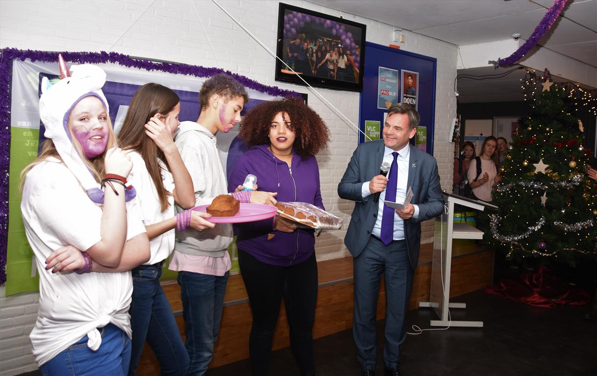 Wethouder onderwijs, Paul Dirkse kwam in de grote pauze langs samen met D66 fractievoorzitter Vahit Köroglu en de raadsleden, Amela Halilovic, Sander van Diepen en fractieassistent Laura van Dijk, ook dominee Ad Alblas was naar het Vlietland College gekomen.