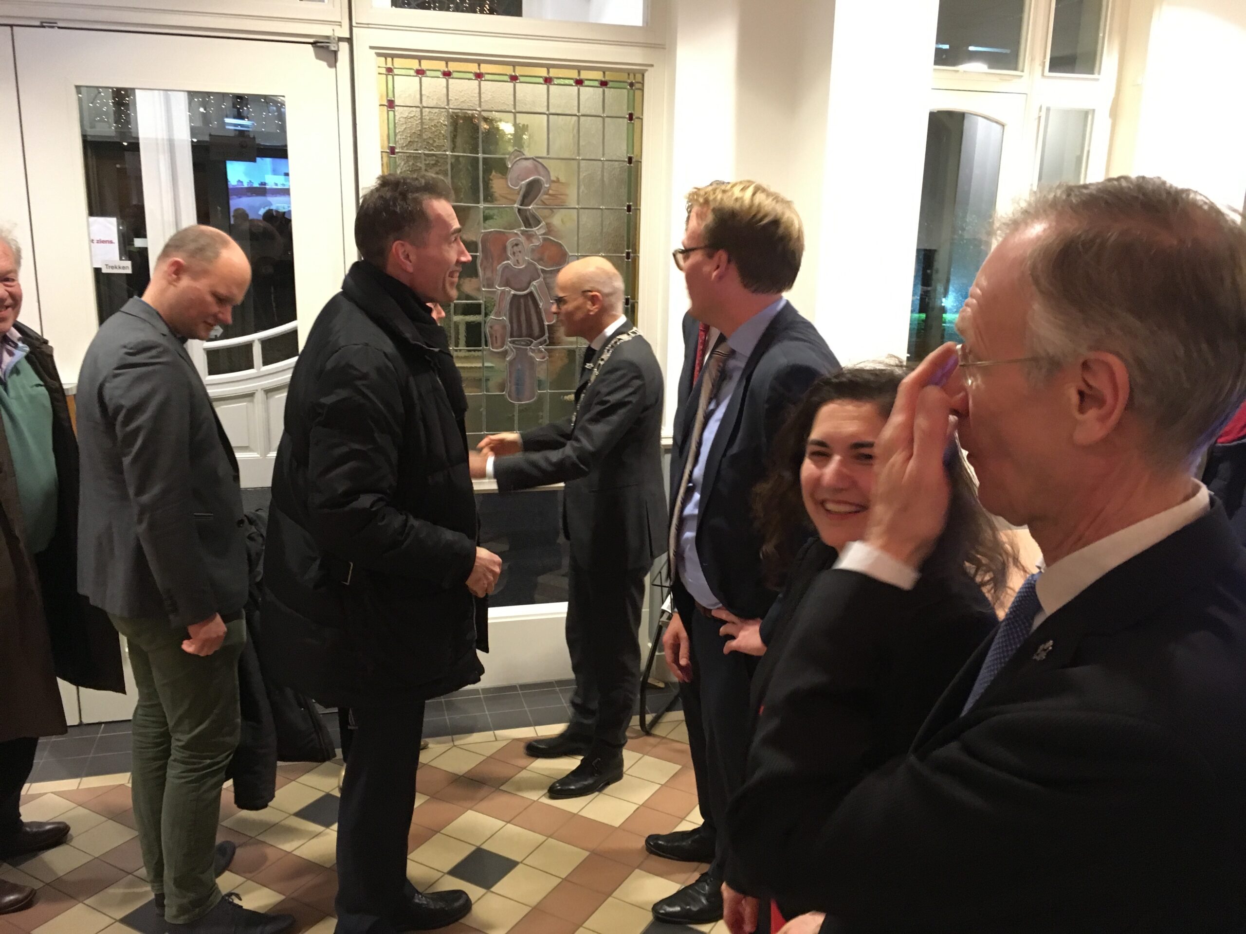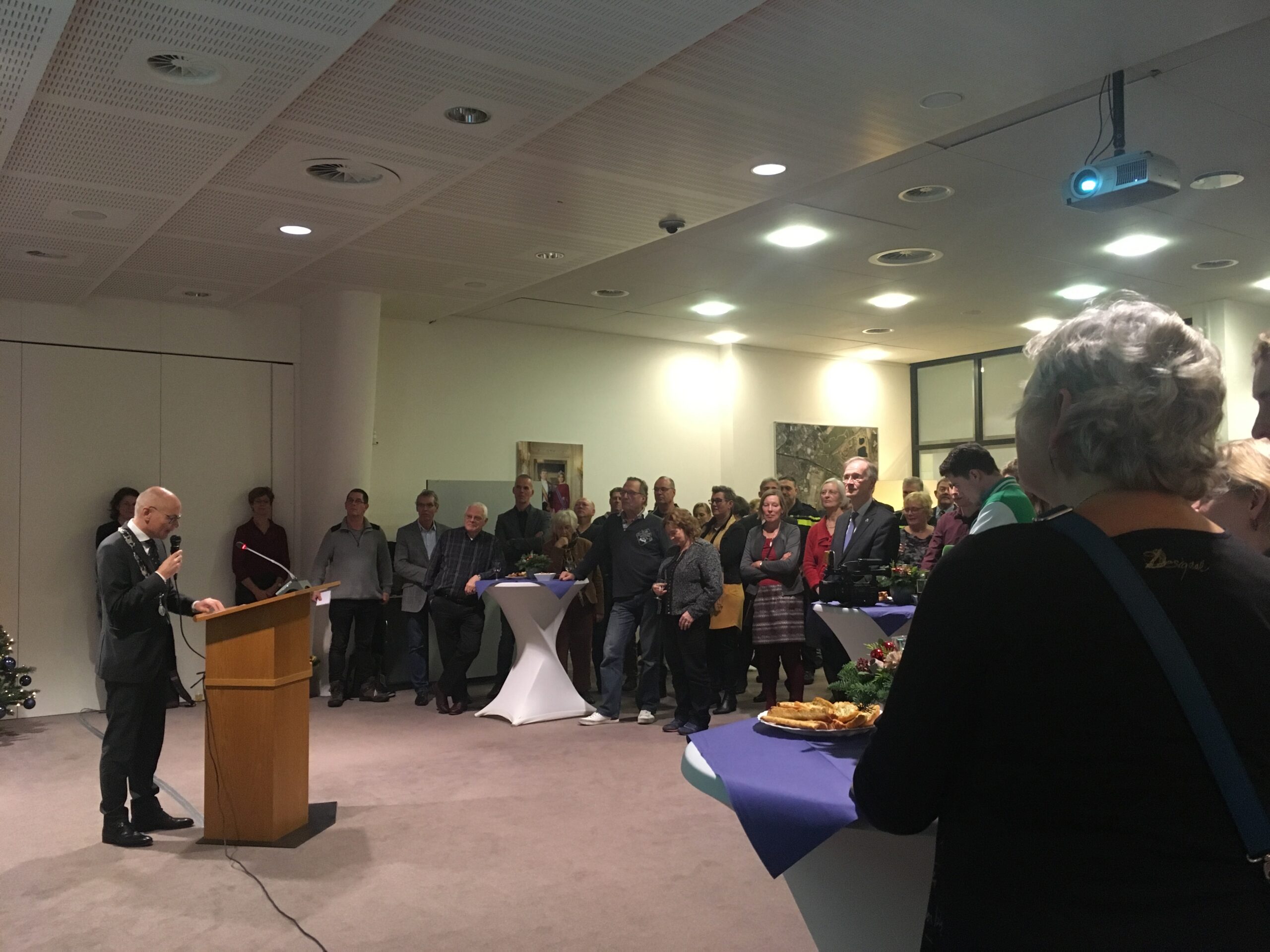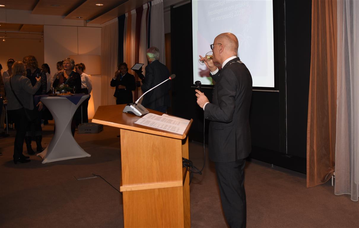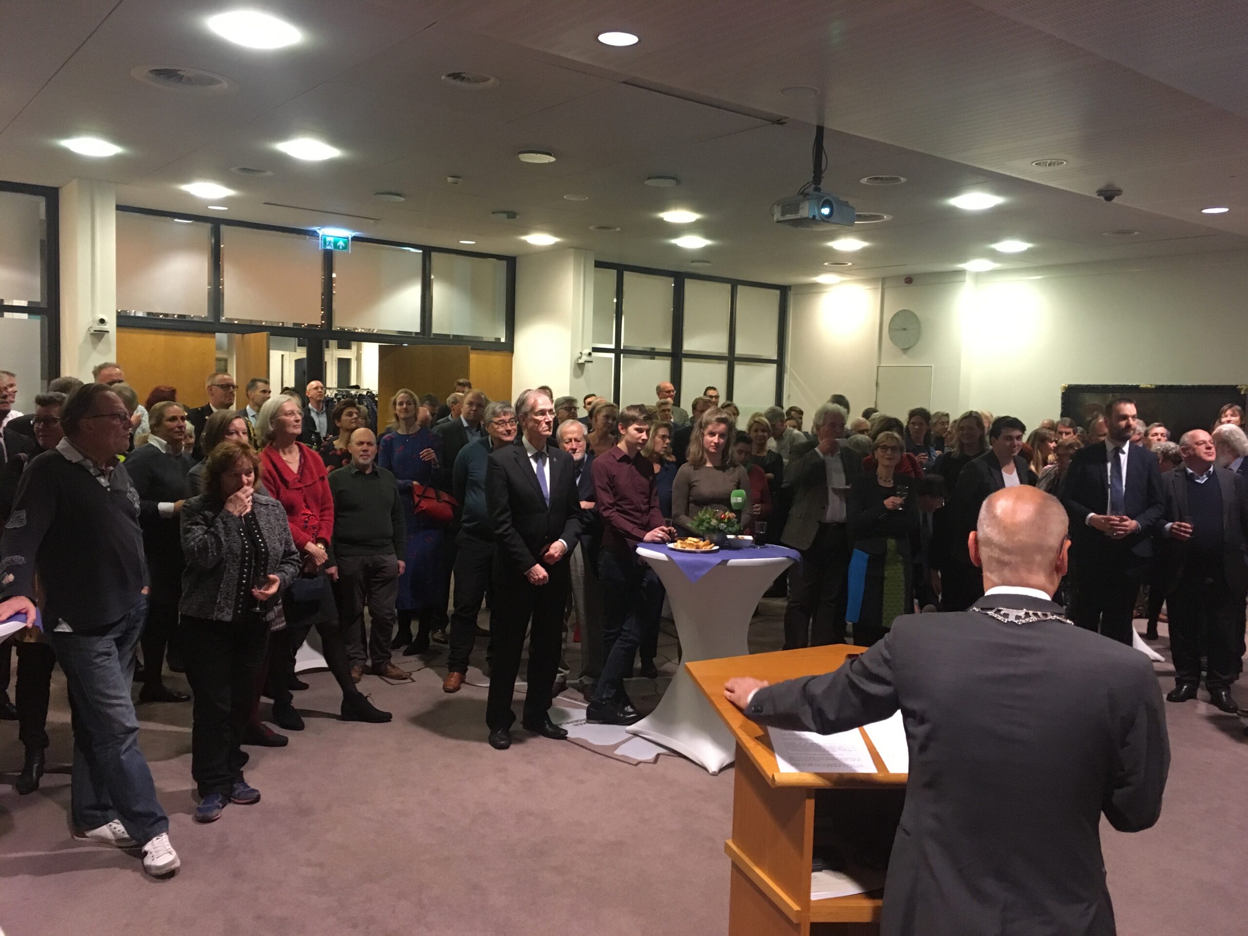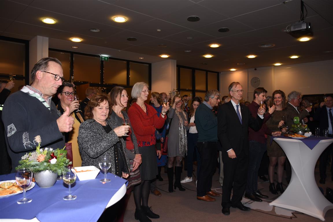 De oudejaarsbijeenkomst op het gemeentehuis is traditiegetrouw ook het moment waarop burgemeester Jaensch terugkijkt op het afgelopen jaar. “We zijn de grens van 24.000 inwoners gepasseerd”, was één van zijn observaties. “Daarnaast is de Klinkenbergerplas heropend en waren bewoners met recht kritisch op het behoud van het groen.” Daarmee doelde Jaensch op de verschillende (protest)acties rondom de kap van bomen. Aansluitend aan zijn bespiegelingen op het afgelopen jaar proostte Jaensch, samen met de aanwezige Oegstgeestenaren, op een mooi 2018.