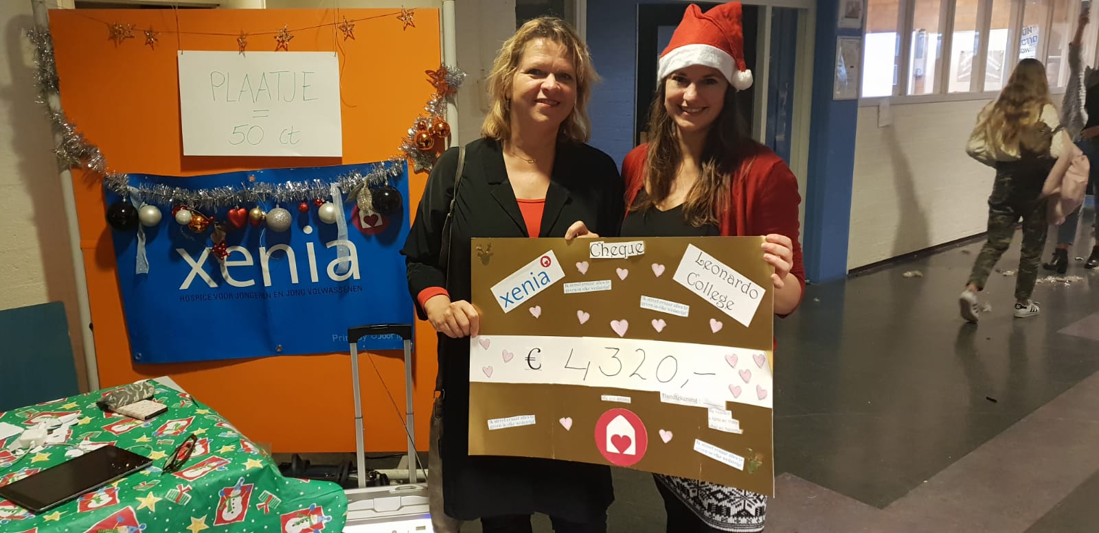 Leerlingen van het Leonardo College in Leiden hebben deze week met hun kerstactie een monsterbedrag opgehaald voor jeugdhospice Xenia. Door allerlei activiteiten te organiseren haalden de klassen met behulp van donaties 4320 euro op. Het Leonardo College zei van tevoren toe het bedrag te verdubbelen, waardoor het eindbedrag op bedrag 8640 euro uitkomt. Xenia kan deze bijdrage goed gebruiken om het huis ook volgend jaar weer open te houden.