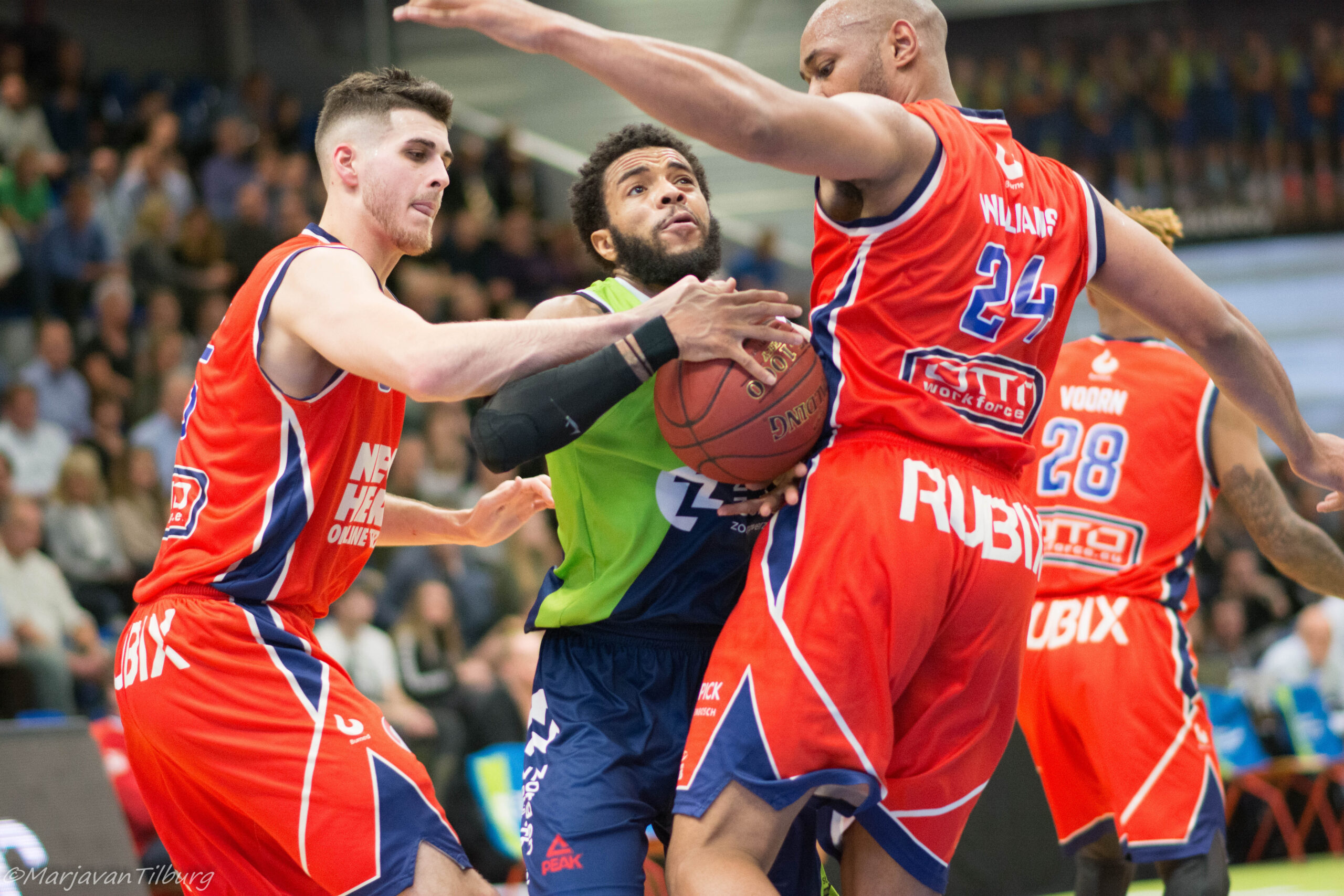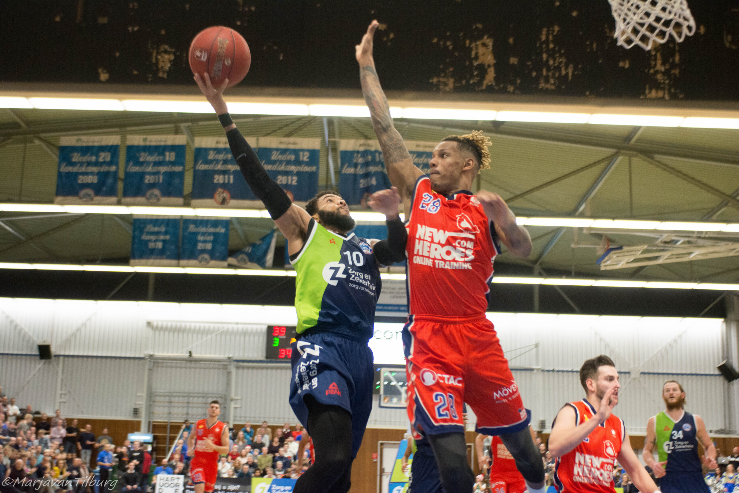 Bij New Heroes waren het alleen nog Sherrill en Henson die doorkwamen met scores. Niettemin kwamen de bezoekers wel terug tot 69-64 met nog 2’23 te spelen. Time-out Franke. Beide ploegen misten de nodige kansen, maar de intensiteit maakte het – zeker voor de neutrale kijker – een aantrekkelijke wedstrijd. Franke had inmiddels Vette weer terug in de ploeg gebracht voor Simms, die zeker niet onverdienstelijk stond te spelen. “Als coach moet je af en toe geluk hebben”, lachte Franke na afloop. En terecht, want op de rand van de 24 seconden schoot uitgerekend Vette 41 seconden voor tijd een drietje door de ring: 72-64. Dat was de definitieve knock-out voor New Heroes, al scoorde Sherrill twee seconden voor tijd nog wel 72-67.