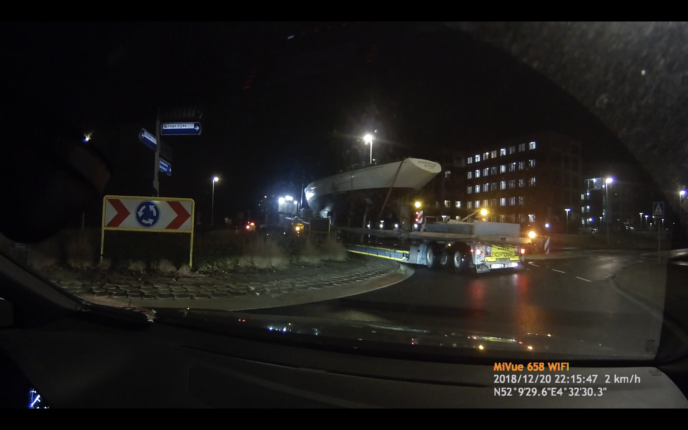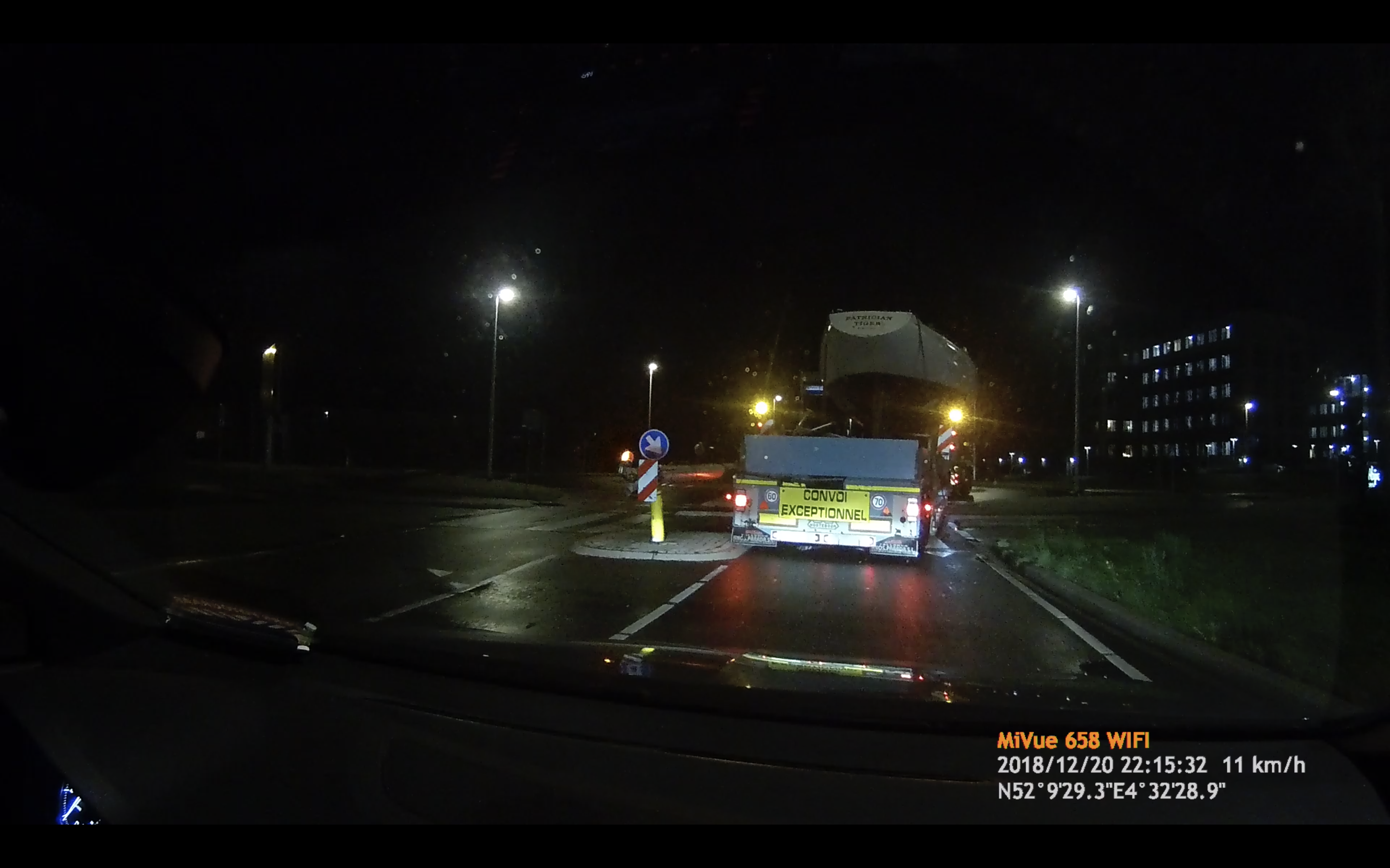 Op de Persant Snoepweg ter hoogte van het McDonalds restaurant beschadigde de vrachtwagen het asfalt bij een verkeersheuvel en ook op enkele daaropvolgende rotondes kwam de combinatie half vast te zitten waarbij het asfalt van het wegdek werd geschraapt.