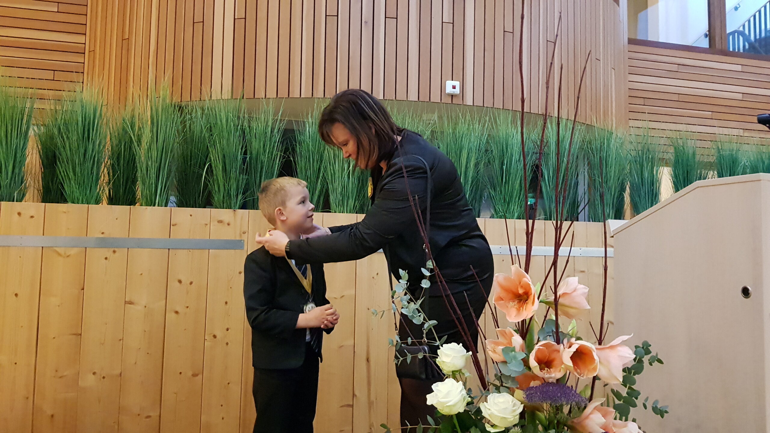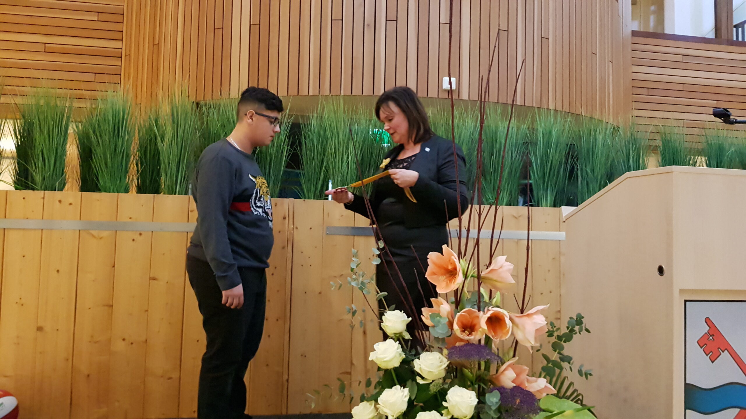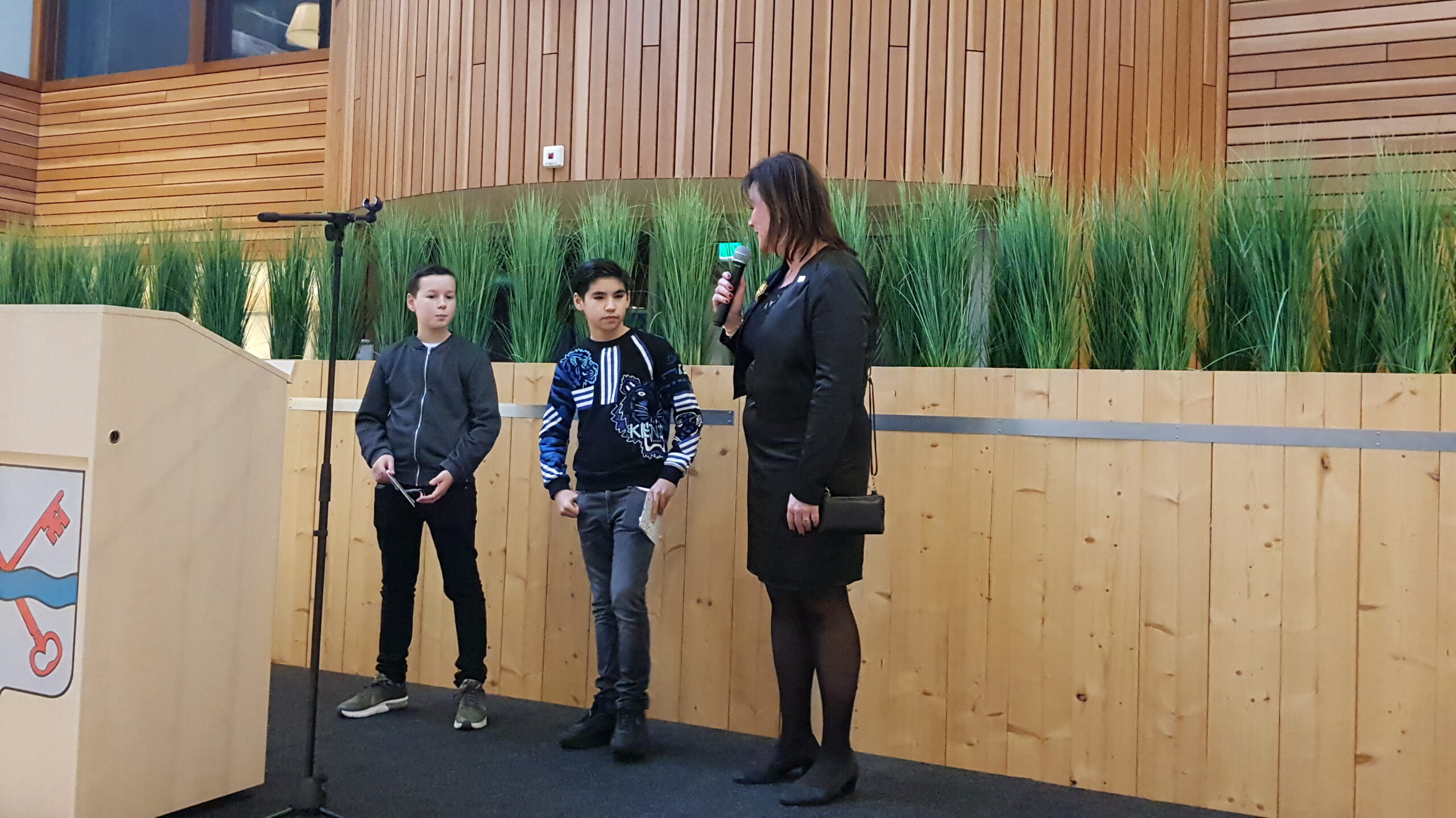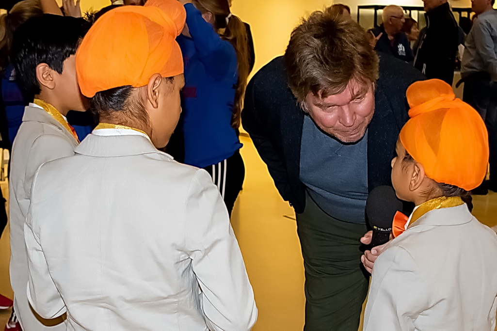 Chris de Waard sprak na de uitreiking met jongerenjuryleden Saylan en Thomas en winnaar Kerem Isis, met de (vader van de) jongste winnaar, de 7-jarige Dawid, met de drie broertjes Kriath, Mahi en Veer en tenslotte met wethouder Angelique Beekhuizen (Jeugd).