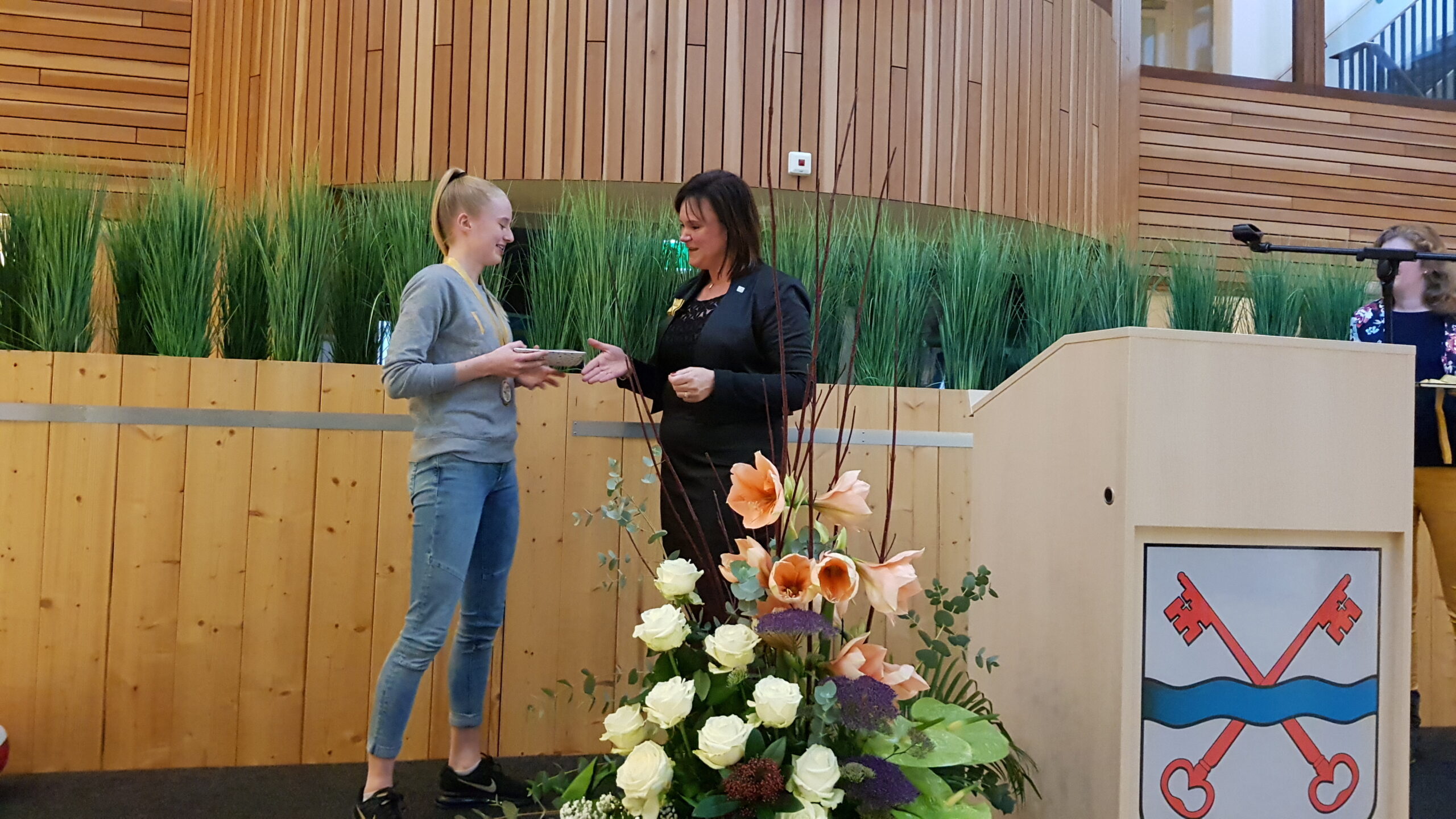 Zaterdagmiddag vonden in het gemeentehuis van Leiderdorp maar liefst drie feestelijke bijeenkomsten plaats. De middag begon om 14.00 uur met de uitreiking van de Jongerenwaardering aan Leiderdorpse jongeren die in 2018 iets bijzonders voor hun omgeving of medemens hebben gedaan. Daarna volgde de nieuwjaarsreceptie waarbij burgemeester Laila Driessen terug- en vooruitblikte en aansluitend ook nog de vrijwilligersprijzen uitreikte.