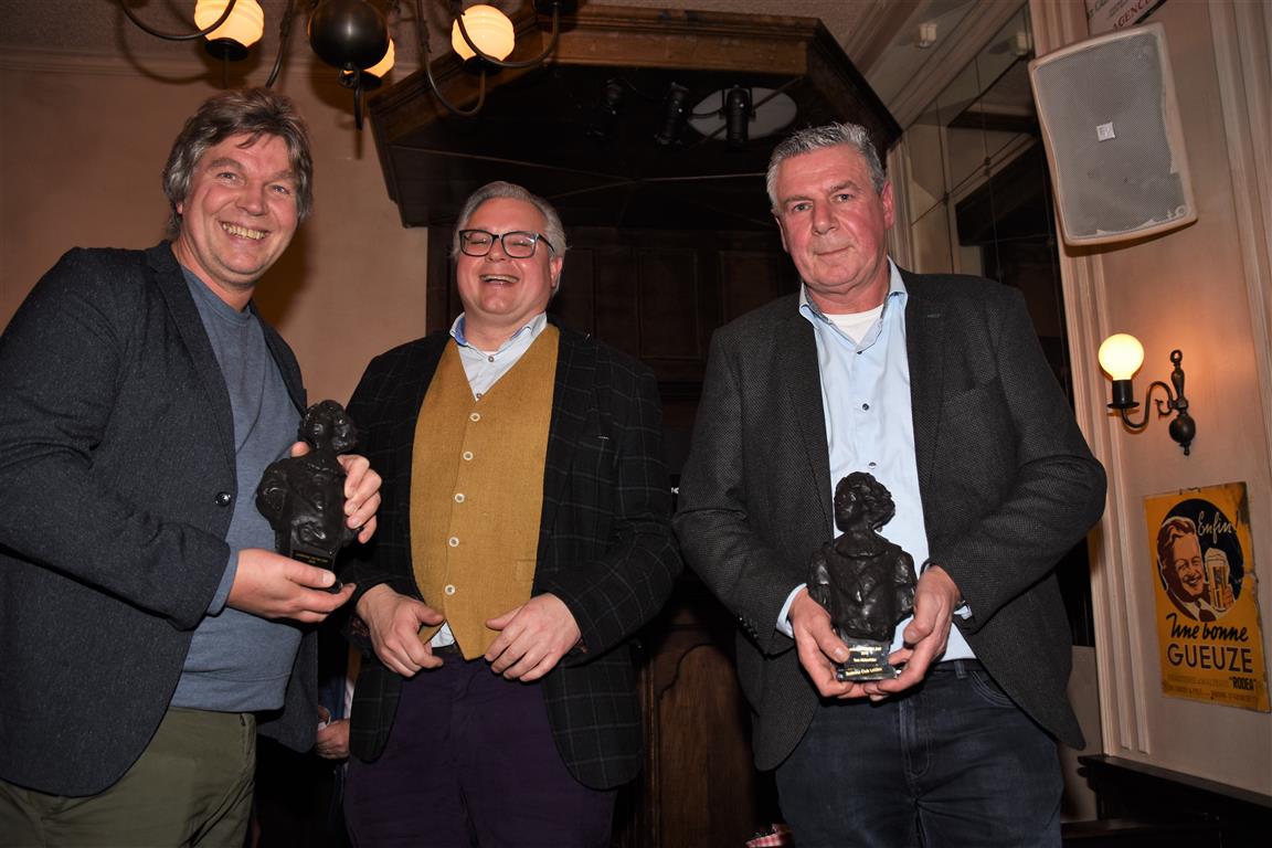 De jaarlijkse ‘Leidenaar van het Jaar’ verkiezing van de Business Club Leiden (BCL) heeft dit jaar twee winnaars opgeleverd. Tom Holswilder van Koetshuis de Burcht en Chris de Waard van Sleutelstad eindigden met precies evenveel stemmen op de eerste plaats en ontvingen gisteren het bronzen beeld van de jonge Rembrandt dat is vervaardigd door de Leidse beeldende kunstenaar Jeroen Spijker die zelf ook bij de uitreiking aanwezig was.