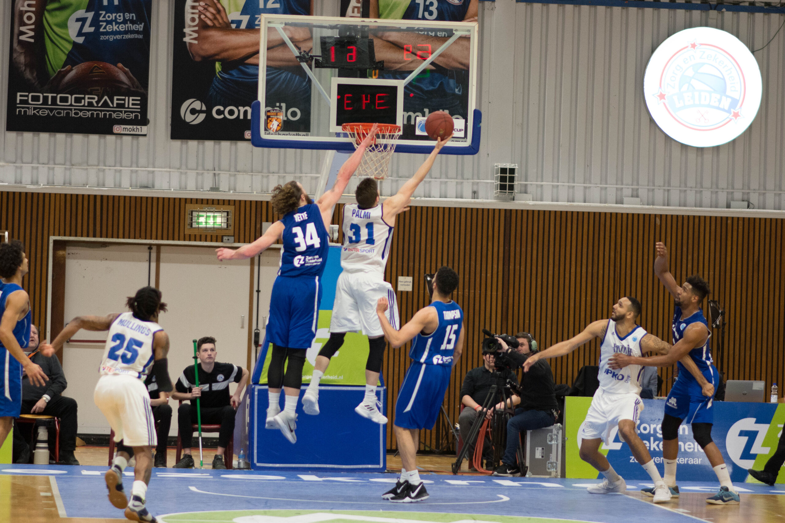 Scores Leiden: Darius Thompson 24 (6 assists), Maurice Watson 17 (11 assists), Clayton Vette 17 (11 rebounds), Mohamed Kherrazi 16 (10 rebounds), Kenneth Simms 8, Marijn Ververs 3, Sergio de Randamie 2 en Worthy de Jong 0 (9 assists).