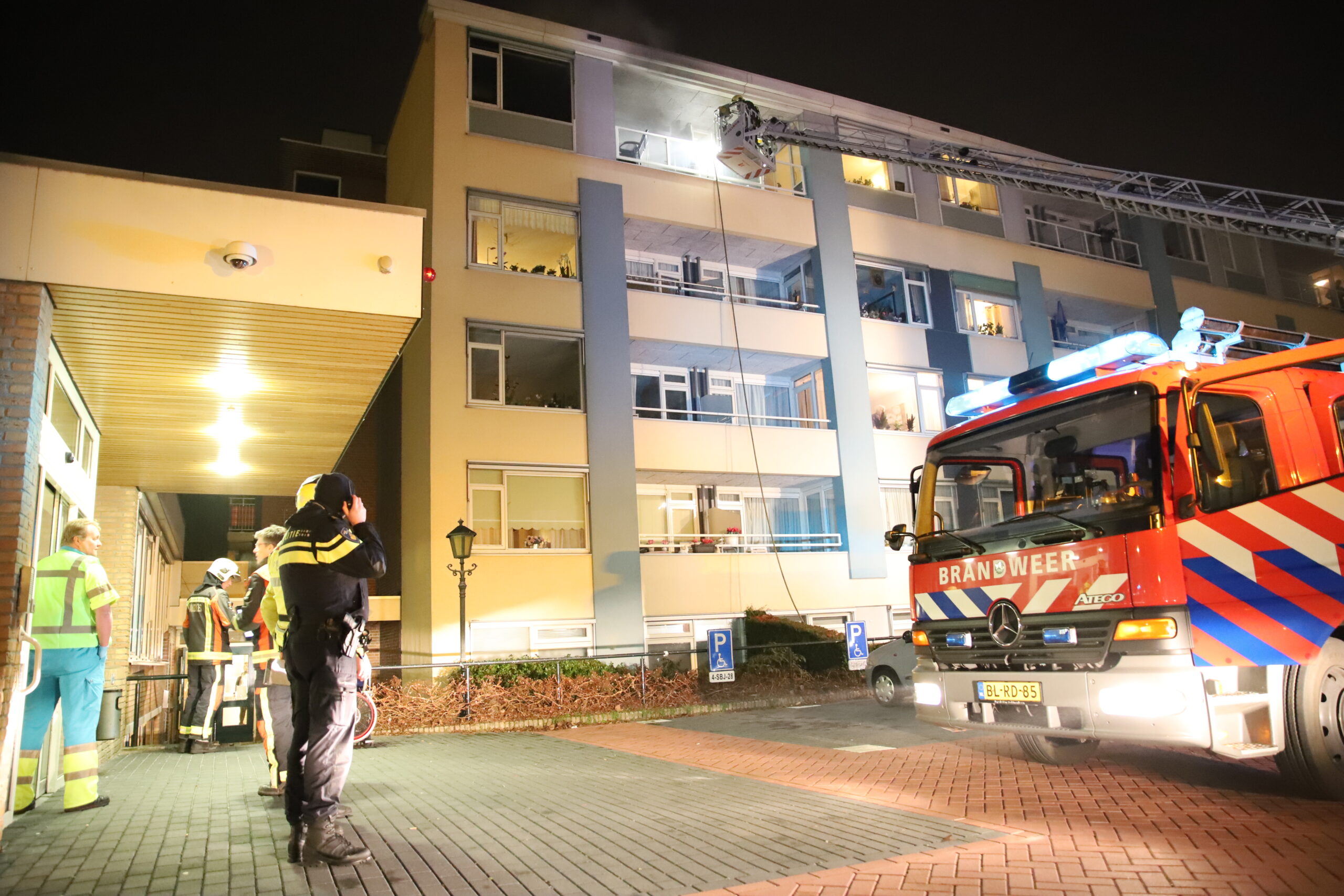 Bij de brand kwam zwarte rook uit een woning op de bovenste etage. De brandweer heeft daar met een ladderwagen met hogedrukspuit geblust. Later bleek dat hulp voor de bewoner te laat kwam.
