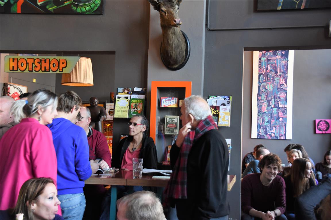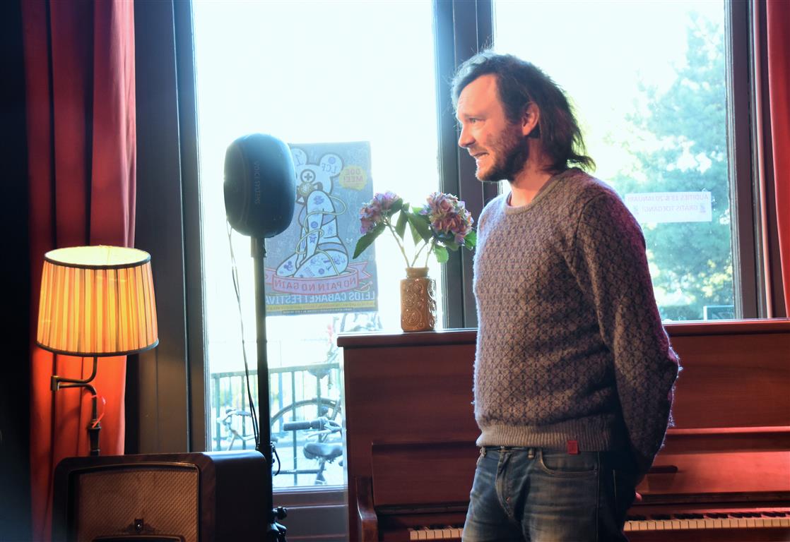 Tommy Zonneveld had daarentegen wél een duidelijk thema. Subtiel balancerend tussen confrontatie, zelfspot en lach schetste hij het beeld van iemand die “op de rand van z’n bed gaat zitten en in een vingerknip verandert je leven”. In de deuropening staan z’n nieren, die meedelen ermee op te houden en voor een poos op vakantie te gaan. Waarna een pracht relaas volgt over vijf jaar nierpatiënt zijn “ik speelde altijd mooi weer, terwijl het buiten keihard regende”. Maar met een humor waarvan je hoopt dat die hem ook door die jaren heen heeft gesleept! Jaren waarin plassen een opgave is “staan er twaalf artsen mee te kijken”, relaties lastig zo niet onmogelijk zijn “‘ik ben een binnenplasser’ en de meeste dates liepen weg”. Het tweestemmige “Ik leef in m’n hoofd” tekent een wereld die gezonde mensen niet kennen. Evenmin als de waarschuwing tot slot “Geluk, dat is vrij zijn. Maar hebben we dat wel door?”. Een mooie variant op ‘je mist iets pas als het er niet meer is’.