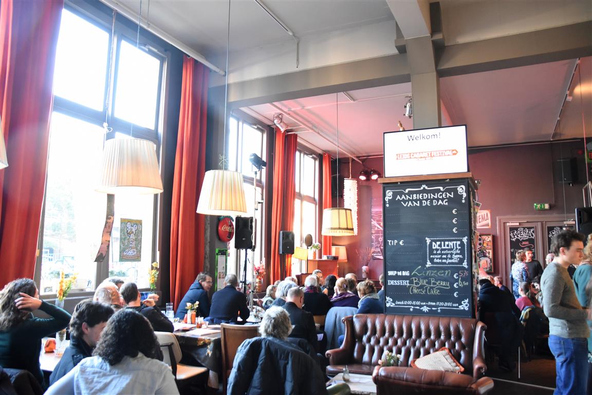 Vooraf: mocht u niet weten wat te doen met die vervelende zondagmiddagen in januari, overweeg dan volgend jaar minstens één van de (gratis bij te wonen) voorrondes van het Leids Cabaret Festival bij te wonen in De Leidse Lente. Het is gezellig druk, lekker informeel, warm, met een presentator als Martijn Kardol krijg je er zelfs een extra voorstelling bij. Kortom, echt iets voor theater- en cabaretliefhebbers die zo’n zondagmiddag stuk te slaan hebben. Het is wel een hele zit: van 13.30 uur tot tegen zessen. Anderzijds zijn er ook zat pauzes en drank en voedsel.