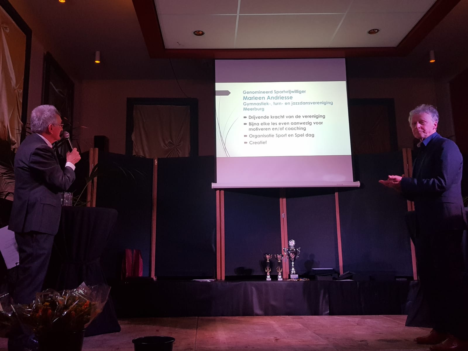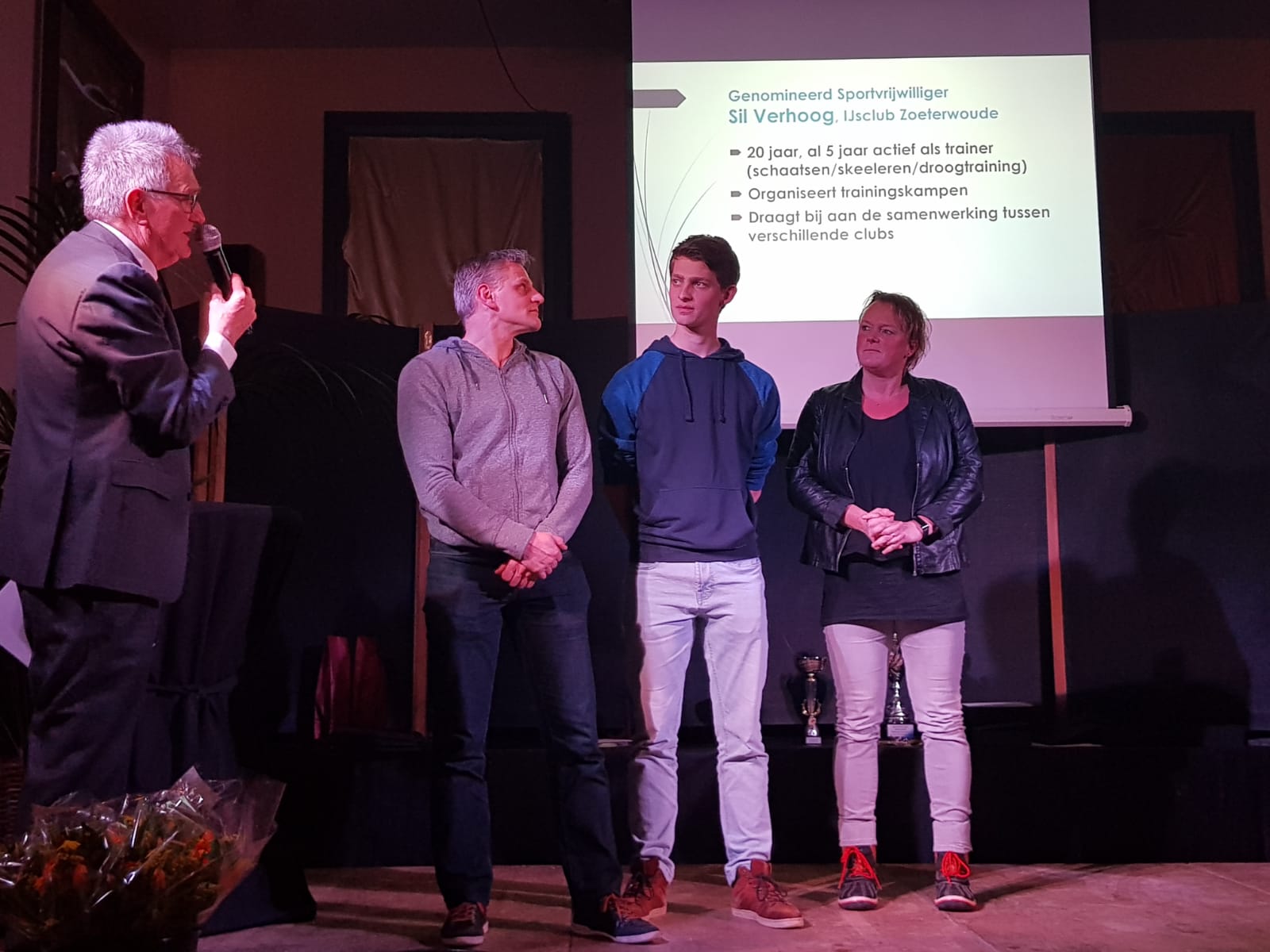 Sportwethouder Ruud Bouter van Progressief Zoeterwoude reikt de prijzen uit. Genomineerd zijn Marleen Andriesse (Gymnastiek-, turn- en jazzdansvereniging Meerburg), Edwin van Nierop (Voetbalvereniging SJZ) en Sil Verhoog (IJsclub Zoeterwoude). Edwin van Nierop wordt sportvrijwilliger van het jaar en Sil Verhoog wordt uitgeroepen tot Jonge Sportvrijwilliger van het jaar.