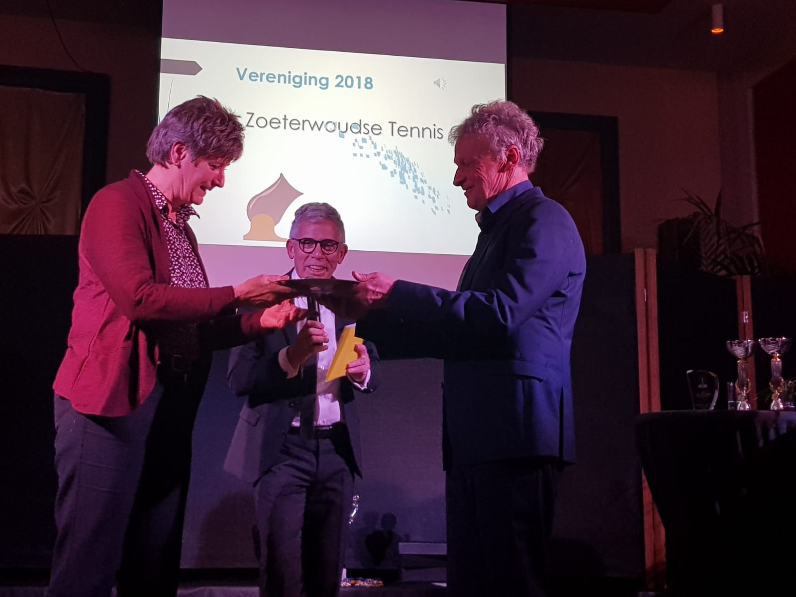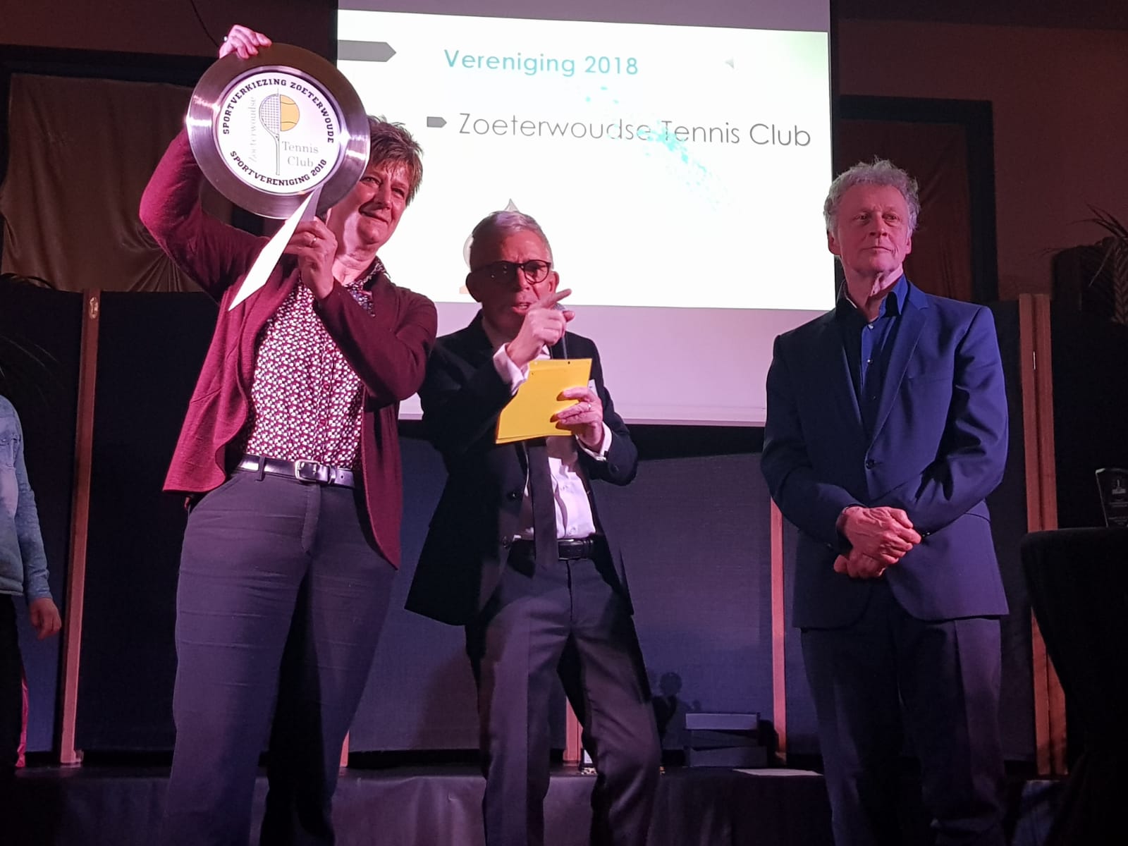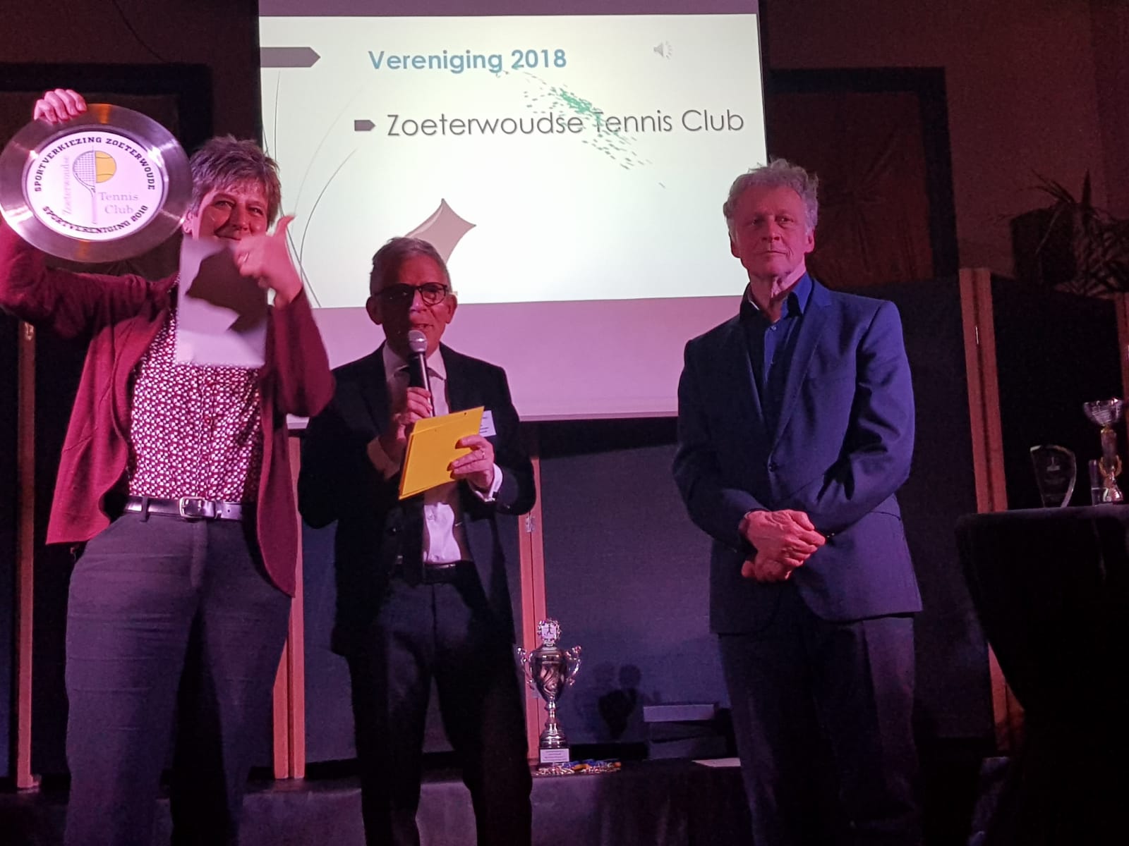 Genomineerd waren de Zoeterwoudse Tennis Club en SJZ Voetbal. ZTC wint en krijgt de prijs, een zilveren schaal, uit handen van sportwethouder Bouter.