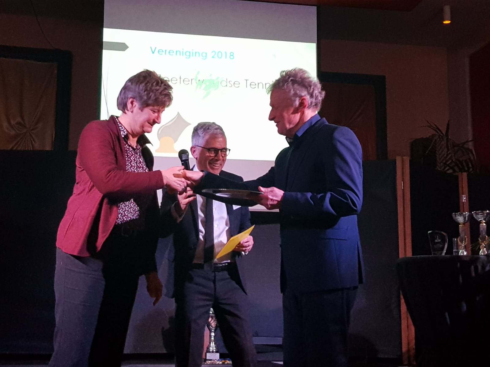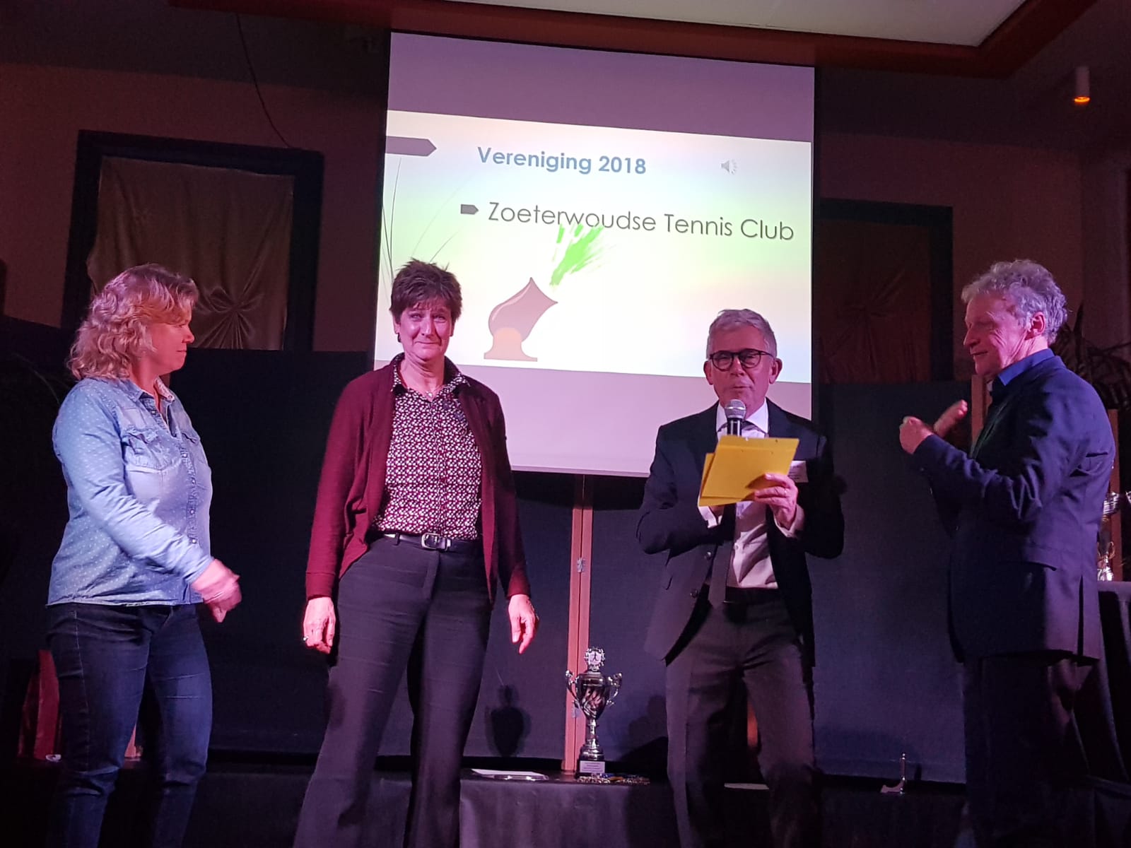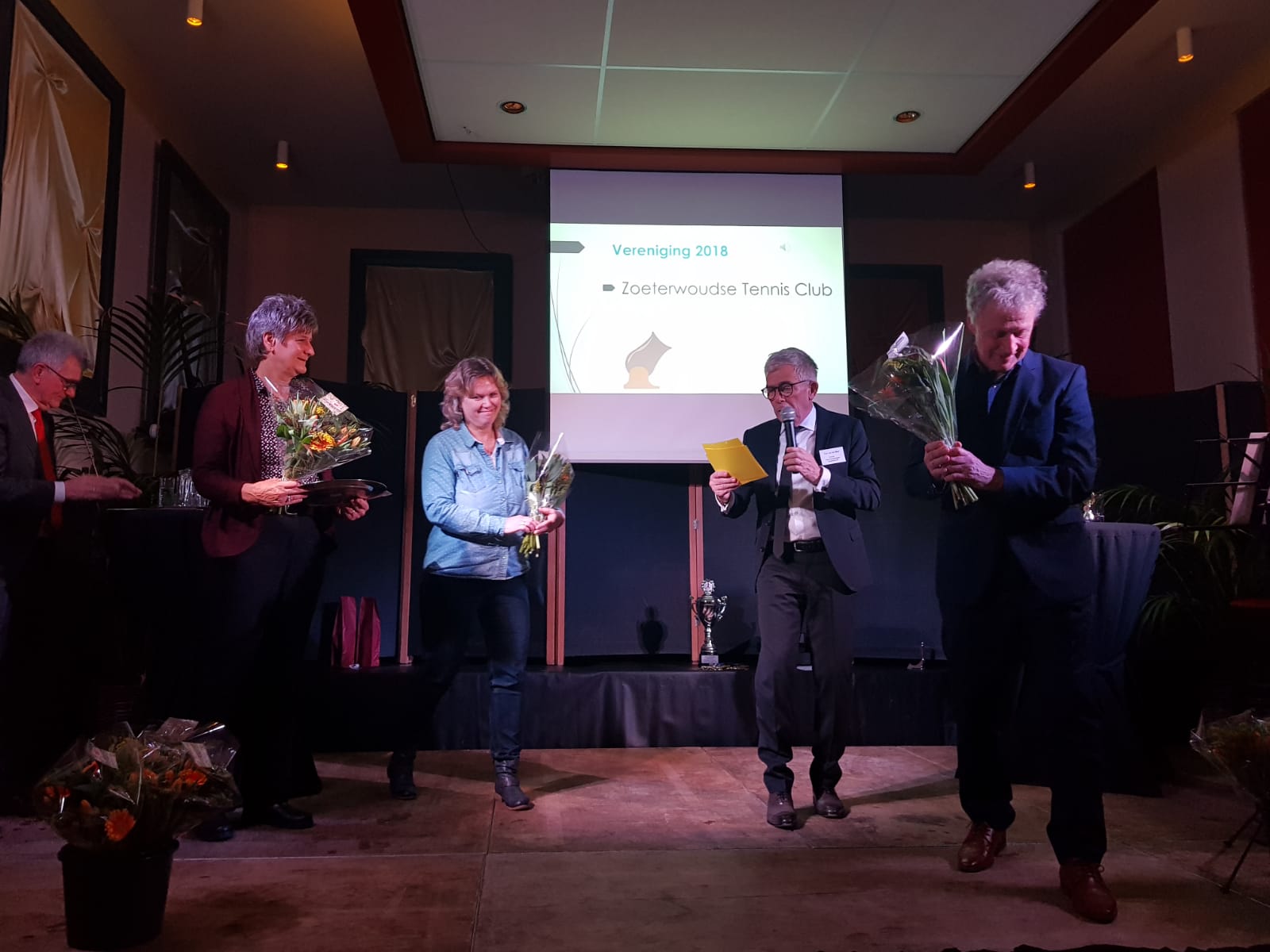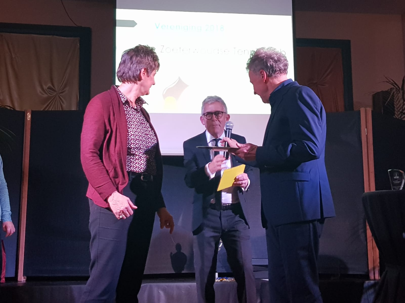 Genomineerd waren de Zoeterwoudse Tennis Club en SJZ Voetbal. ZTC wint en krijgt de prijs, een zilveren schaal, uit handen van sportwethouder Bouter.