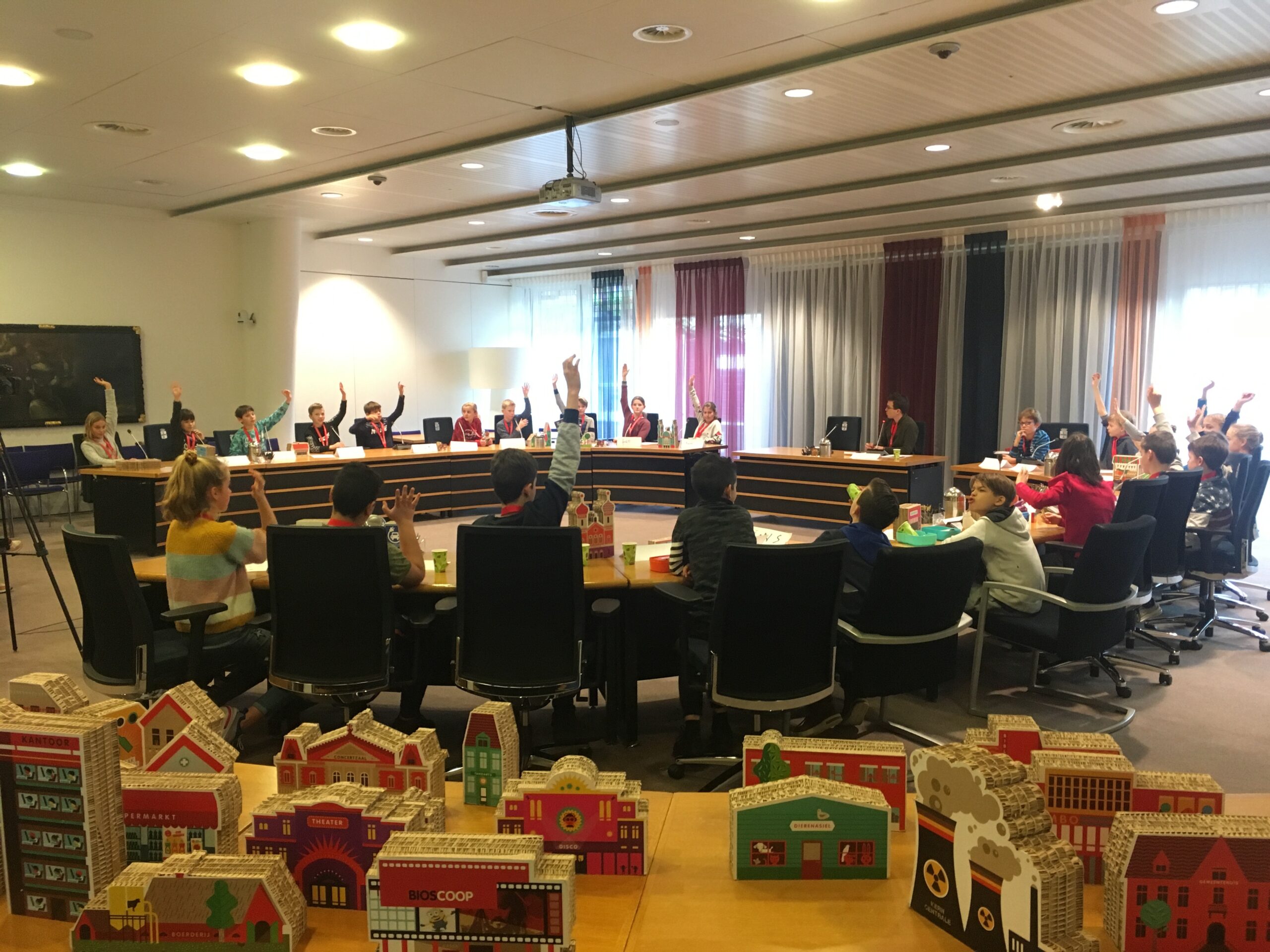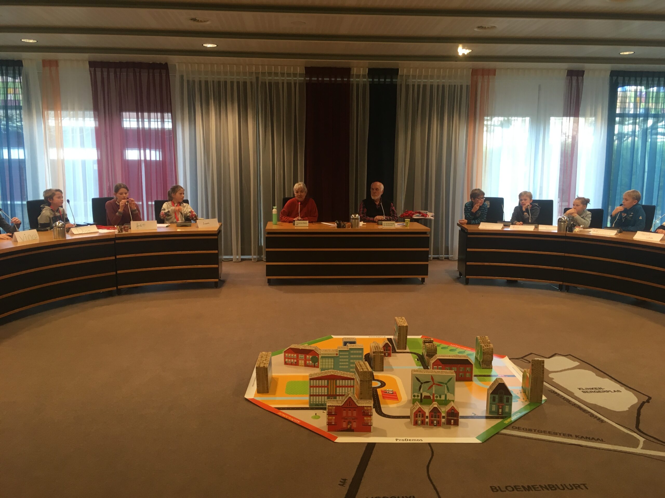 Afgelopen week was het als eerste de beurt aan vijfentwintig leerlingen van basisschool De Vogels, die het bestuur van de fictieve stad Democracity overnamen. Het spel van ProDemos wordt dit jaar, na een succesvolle pilot in 2018, door alle groepen 7 en 8 uit het dorp gespeeld. “Op deze manier maken leerlingen al op jonge leeftijd kennis met het politieke speelveld”, legt de gemeente uit. “En bij elke bijeenkomst zijn er twee raadsleden aanwezig om de kinderen te vertellen over hun rol in de gemeenteraad.“
