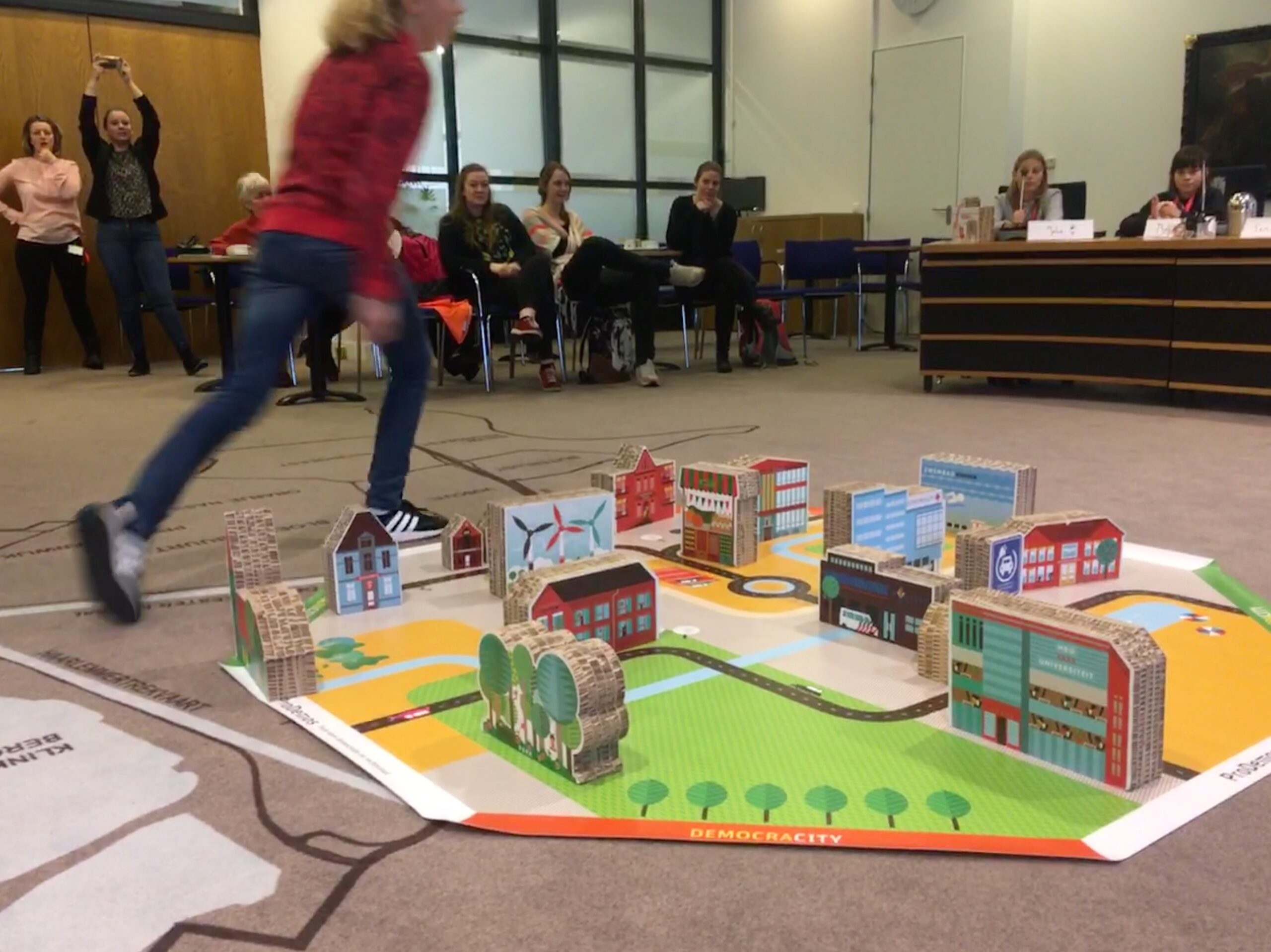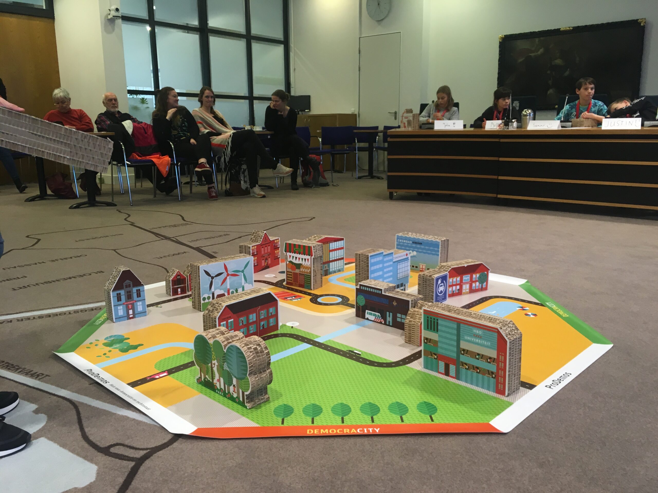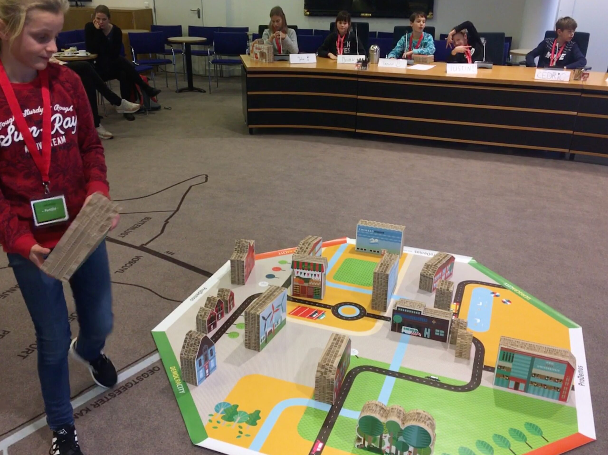 Tijdens het spel neemt Van der Well de rol aan van burgemeester van Democracity. Op de plattegrond van de stad in het midden van de raadzaal wordt gedurende het spel een stad gebouwd. “Toen ik net met dit werk begon, verwachtte ik dat de kinderen meteen zouden kiezen voor het pretpark, het voetbalstadion en de speeltuin”, kijkt Van der Well terug. “Maar dat valt wel mee. Je ziet veel keuzes voor ziekenhuizen, scholen en natuur. Dus leerlingen op de basisschool zijn al heel erg bezig met beslissingen maken die goed zijn voor de samenleving als geheel.”