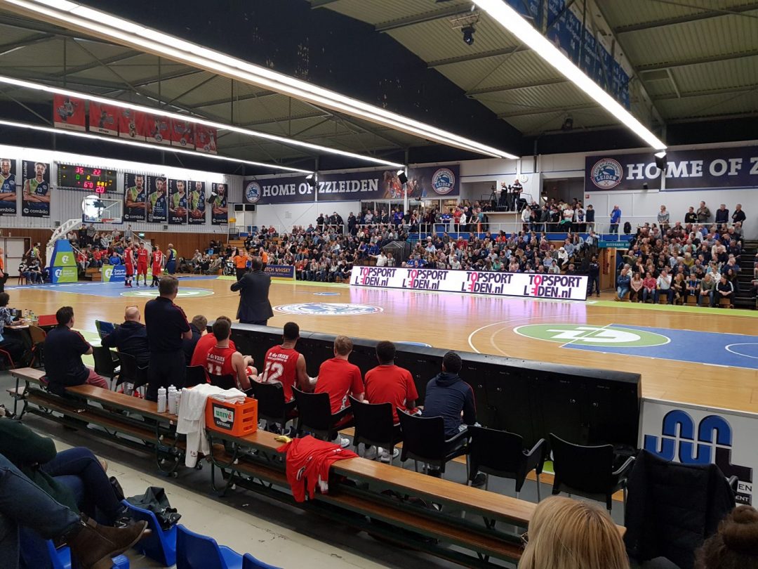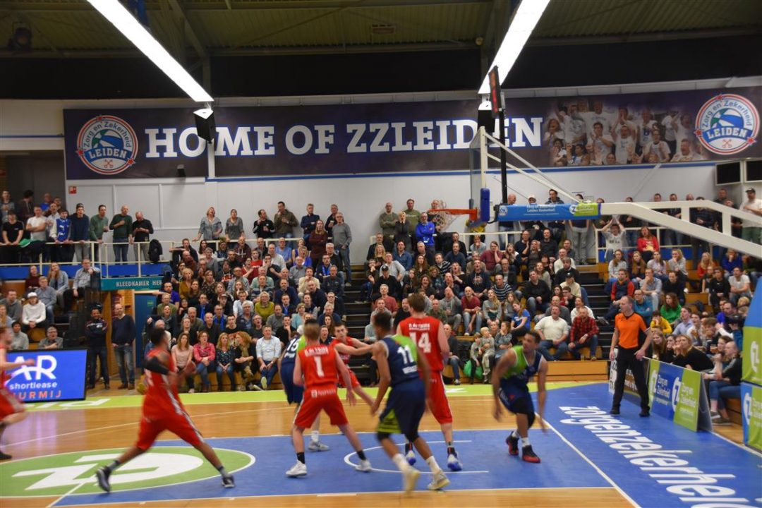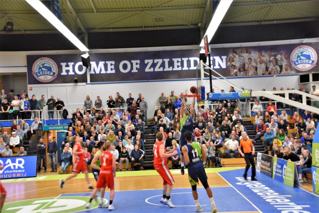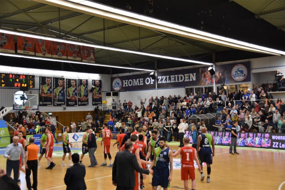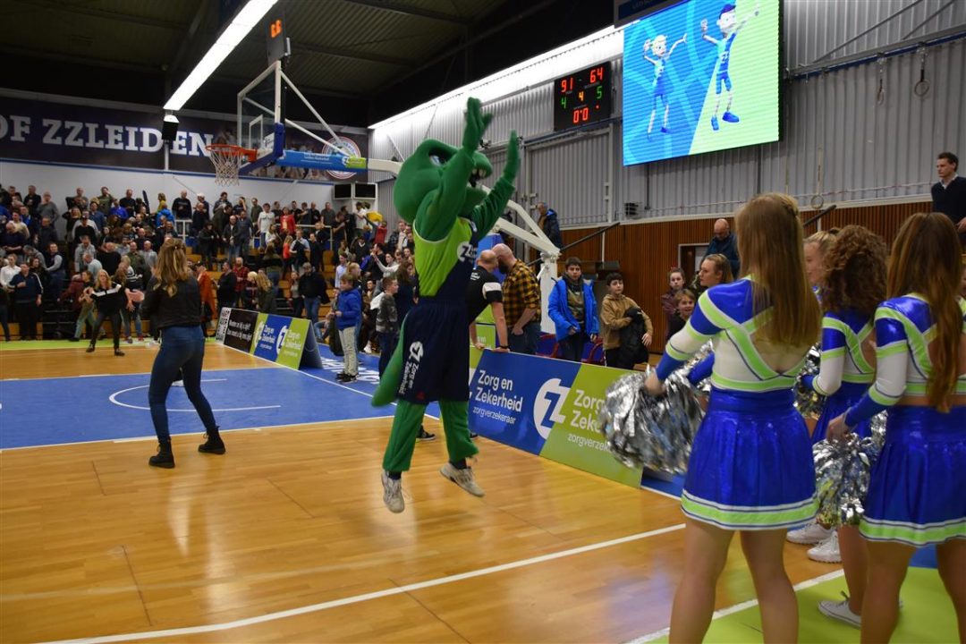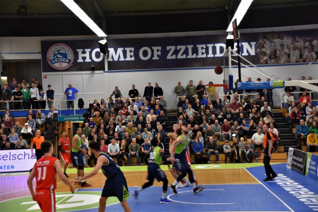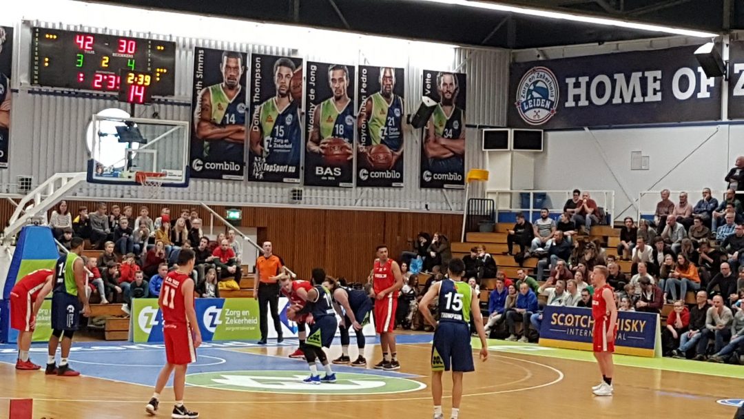 Zorg en Zekerheid Leiden heeft een eenvoudige zege geboekt tegen Aris Leeuwarden. De Friezen namen zaterdagavond eerst een 2-8 voorspong, maar daarna was de Leidse ploeg wakker geschud. Al snel kwam Zorg en Zekerheid Leiden langszij. Via een ruststand van 51-32 werd het 91-64 en daarmee werd de veertiende competitiezege op rij geboekt.