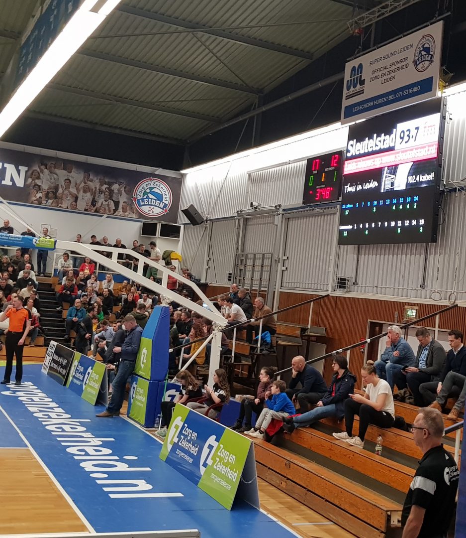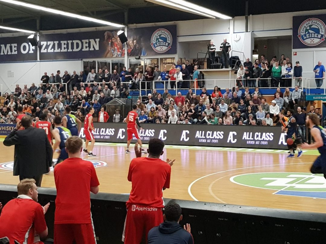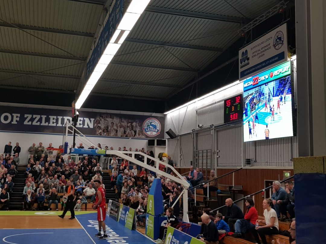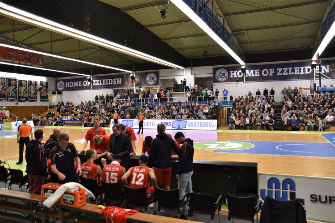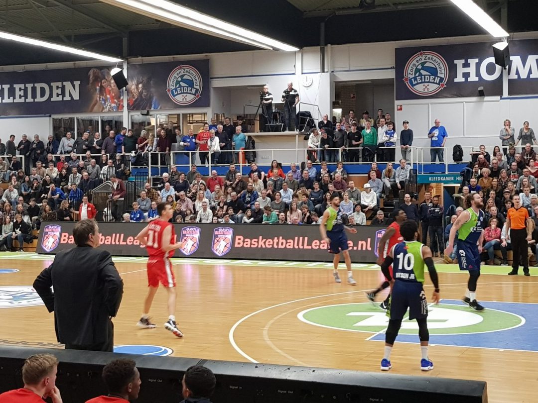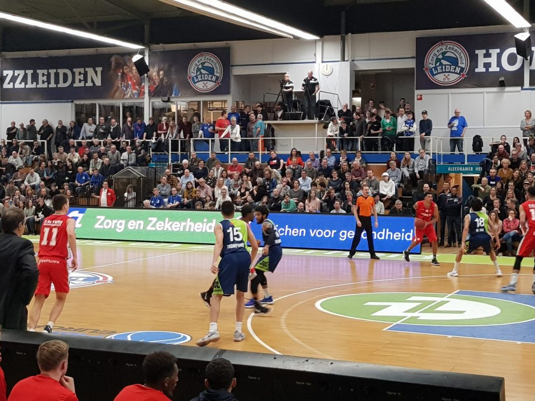 Zorg en Zekerheid Leiden heeft een eenvoudige zege geboekt tegen Aris Leeuwarden. De Friezen namen zaterdagavond eerst een 2-8 voorspong, maar daarna was de Leidse ploeg wakker geschud. Al snel kwam Zorg en Zekerheid Leiden langszij. Via een ruststand van 51-32 werd het 91-64 en daarmee werd de veertiende competitiezege op rij geboekt.