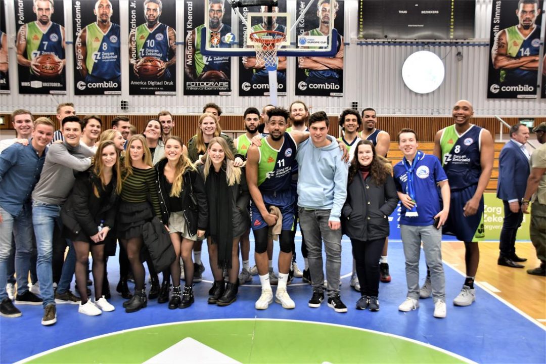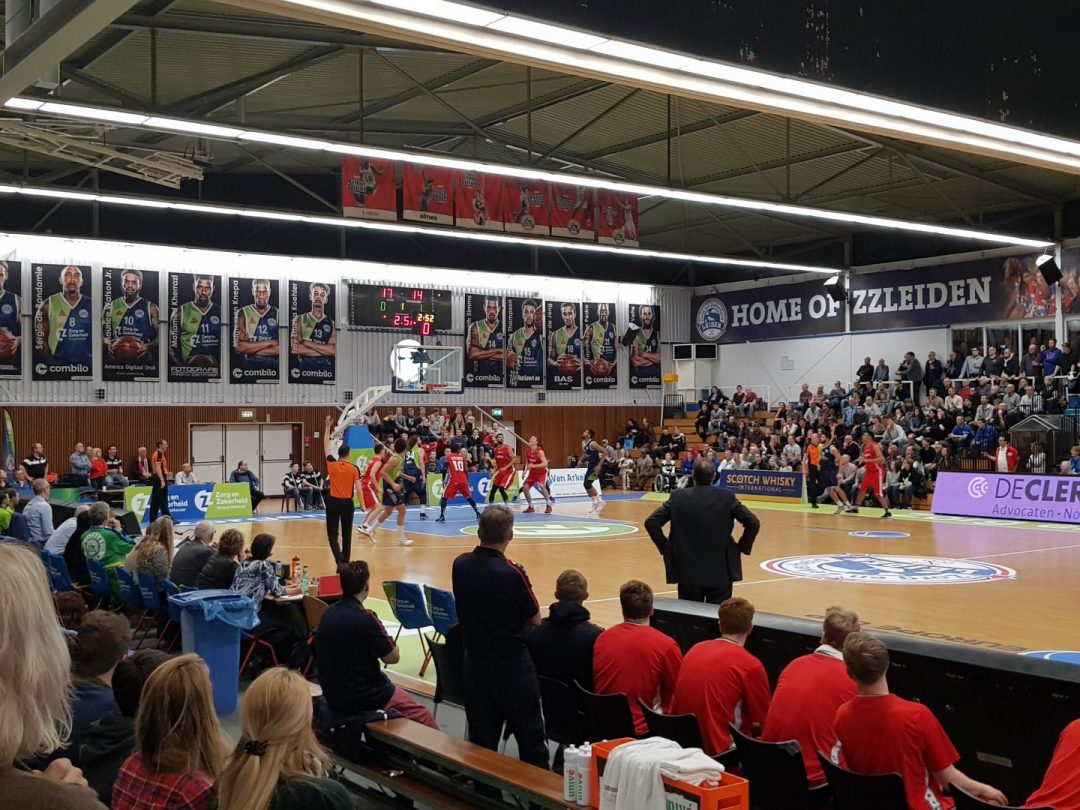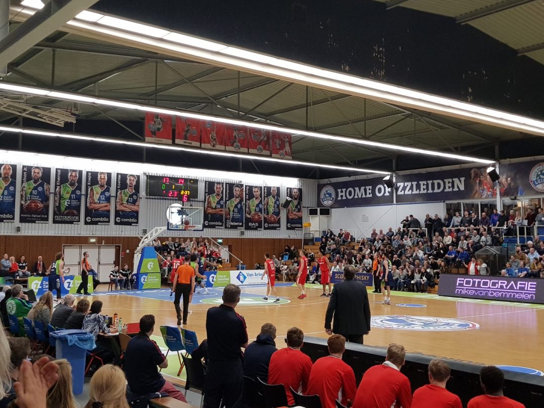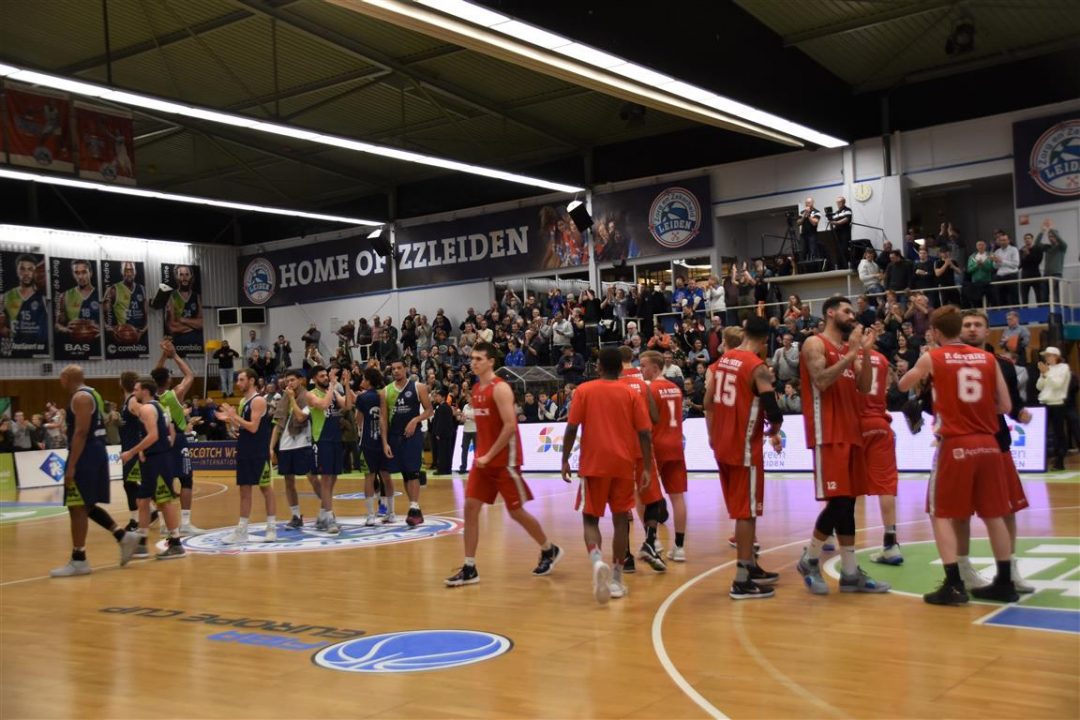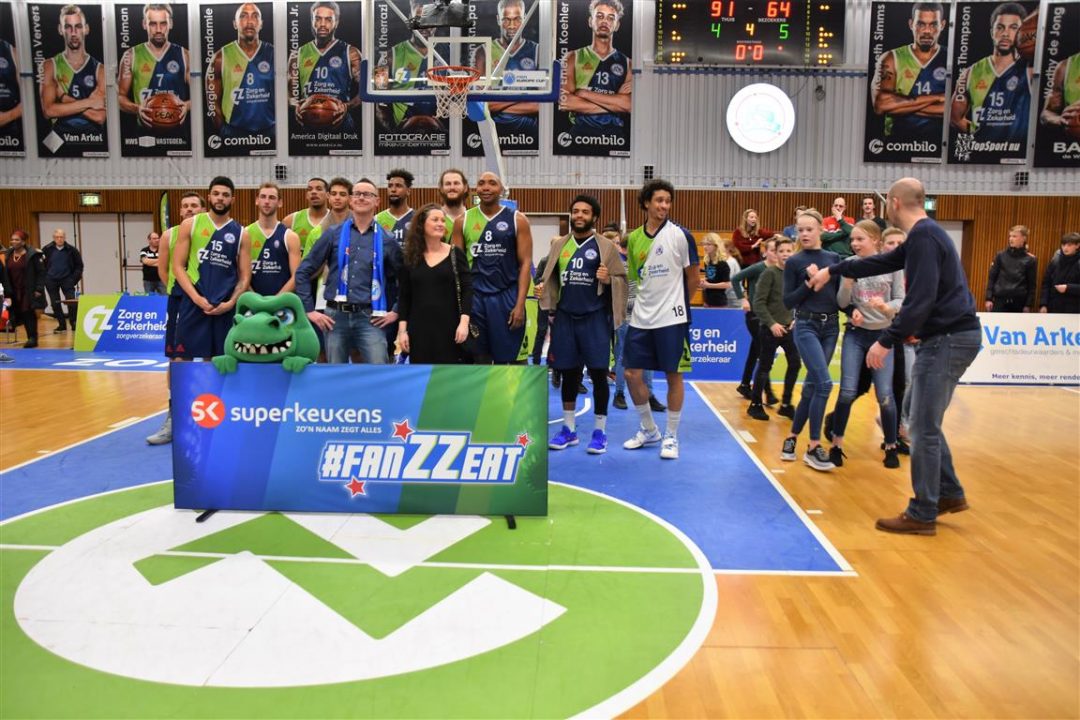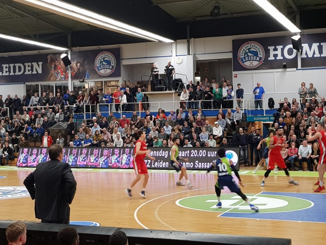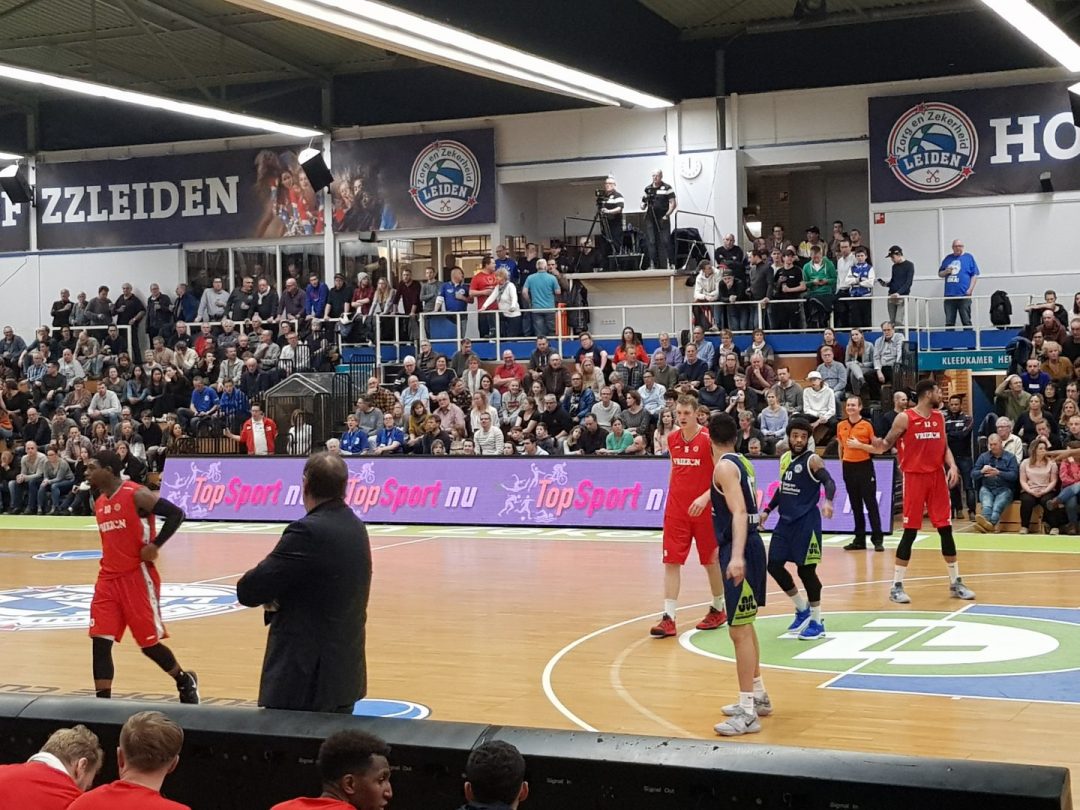 Zorg en Zekerheid Leiden heeft een eenvoudige zege geboekt tegen Aris Leeuwarden. De Friezen namen zaterdagavond eerst een 2-8 voorspong, maar daarna was de Leidse ploeg wakker geschud. Al snel kwam Zorg en Zekerheid Leiden langszij. Via een ruststand van 51-32 werd het 91-64 en daarmee werd de veertiende competitiezege op rij geboekt.
