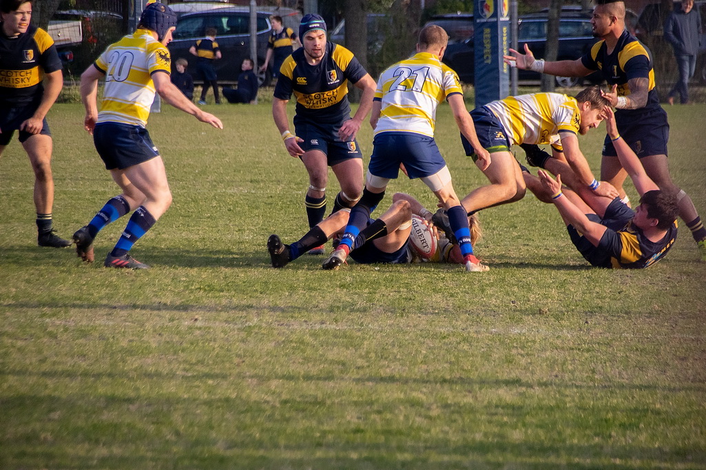 In de tweede helft lijkt DIOK op dezelfde voet door te gaan. Jordan Kersten opent binnen een minuut de score, Greeve converteert weer en captain Ross Bennie-Coulson scoort uit een penalty. 38-5 voor DIOK. Maar dan laat ’t Gooi zien dat ze niet voor niets bovenaan staan. Het roer wordt omgegooid en er worden drie trys achter elkaar gescoord waardoor het met 38-26 nog even spannend leek te worden.