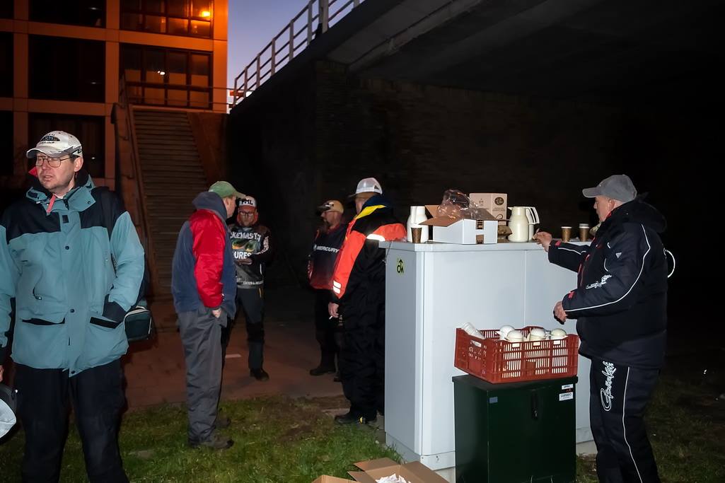 DeNieuweVispas begon ’s morgensvroeg onder de Zijlbrug in Leiderdorp. Reanne van Kleef sprak daar vlak voor de start met deelnemers Stephan en Willem-Jan en organisatoren Danny Sin en Klaas Hoogduin. Om 08.00 uur stipt vlogen de boten uit de startblokken. Na afloop van de wedstrijd verzamelden de ruim zeventig vissers zich in het gebouw van de Leidse Hengelaarsbond voor een ‘captains meal’ en werden de prijzen uitgereikt. Winnaars Dennis Veugelers en Djuri Hauwert vertelden over hun zeer succesvolle visdag.