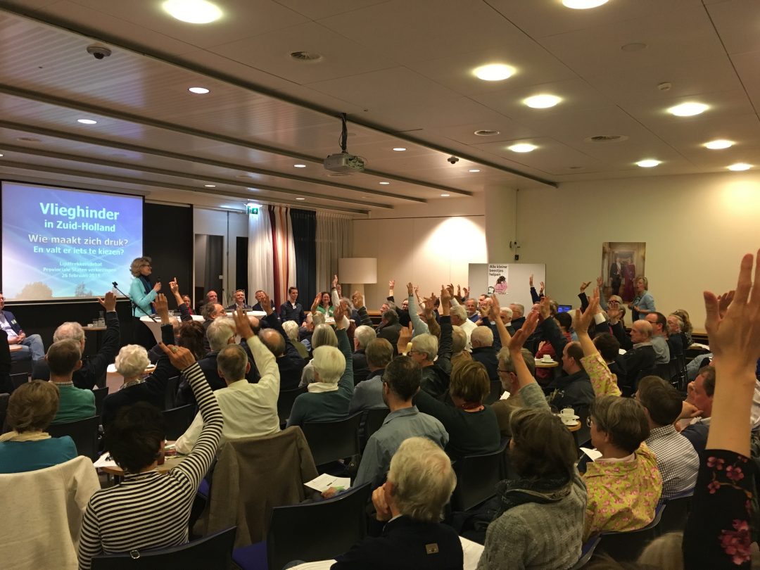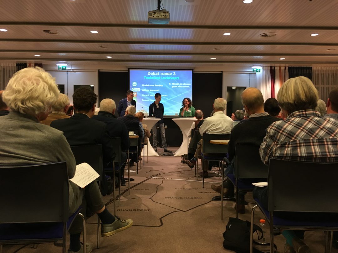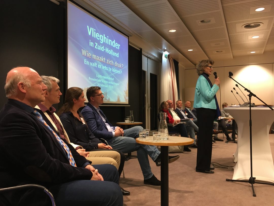 Het debat werd afgelopen dinsdag georganiseerd door een aantal bewonersgroepen dat zich hard maakt tegen laag overkomende vliegtuigen. “Het gaat daarbij alleen geluid, maar ook de uitstoot”, zei Marjan Snijder van Oegstgeest zonder Vlieghinder tegen de ruim honderd aanwezigen in het gemeentehuis in Oegstgeest. “Accepteren we de overlast van toenemend vliegverkeer? Kunnen we in deze regio eigenlijk nog wel veilig en gezond wonen?” Ze deed daarbij een oproep aan de vertegenwoordigers van de provinciale politieke partijen om zich niet alleen uit te spreken over Rotterdam The Hague Airport, maar ook over Schiphol.
