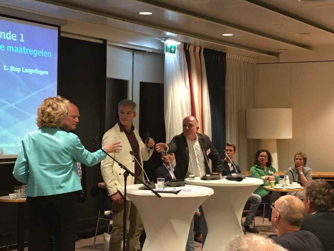 Over de inhoud van de boodschap die de provincie moet gaan laten horen, verschillende partijen nog wel van mening. Vooral de VVD laat daarbij een afwijkend geluid horen. “Nachtvluchten zijn noodzakelijk. Ze zijn belangrijk voor de economie, maar ook voor het vliegen naar verre bestemmingen. Ik kan het niet mooier maken”, verkondigde Herbert Zilverentant (kandidaat VVD) het geluid dat eigenlijk niemand in de zaal wilde horen. Lijsttrekker van GroenLinks Berend Potjer pareerde de economische argumenten van zijn buurman door zich achter de aanwezige bewoners te scharen. “Economie is er voor mensen, mensen zijn er niet voor economie.”